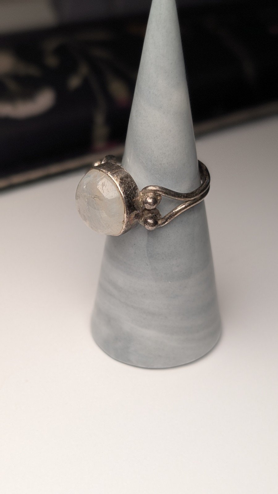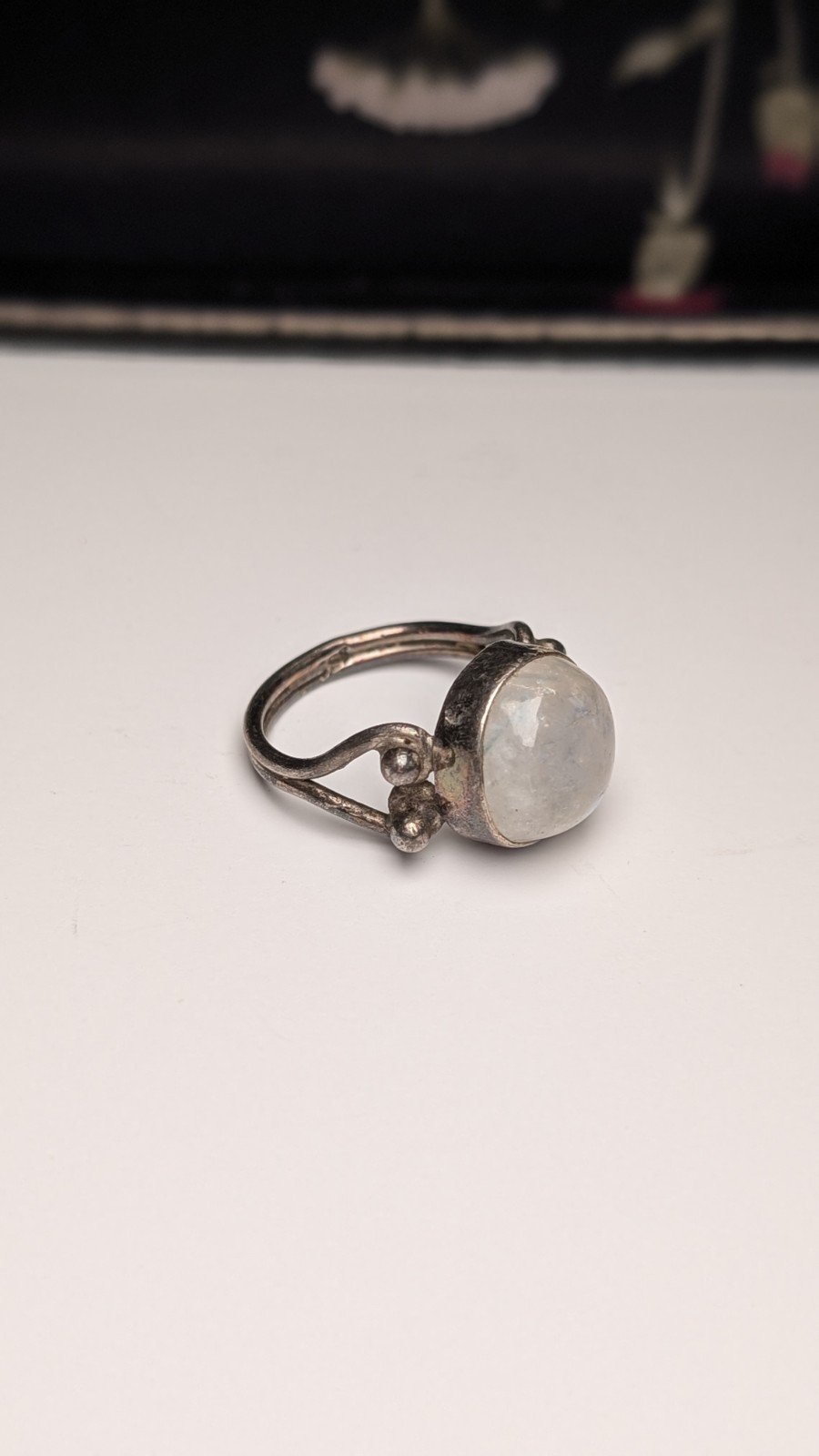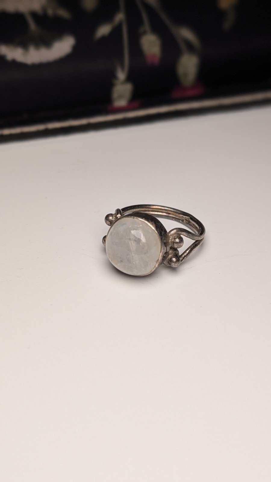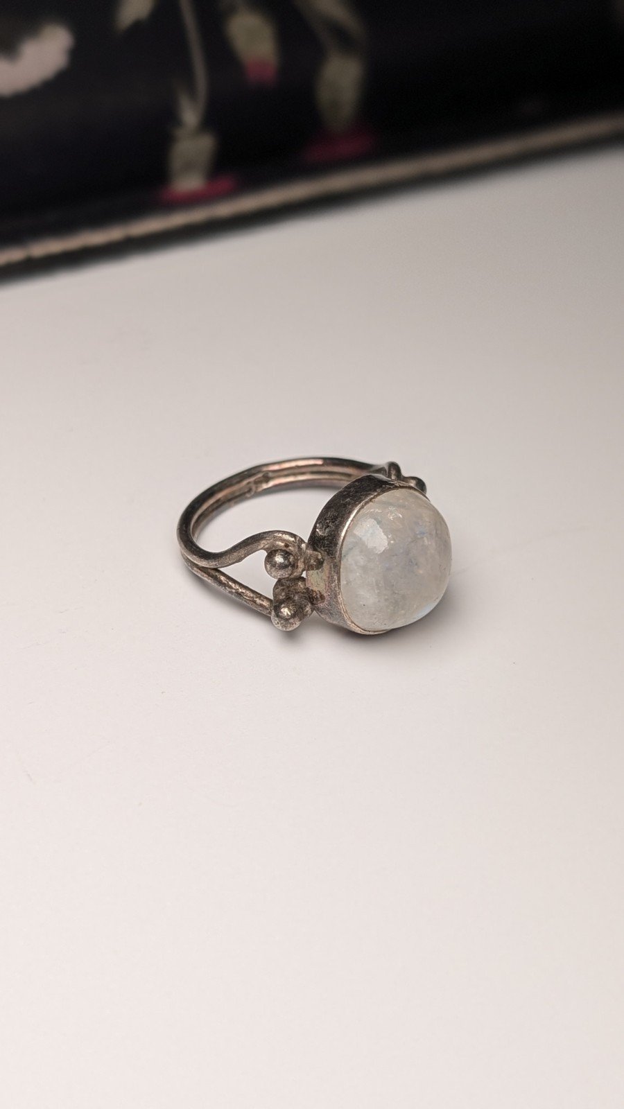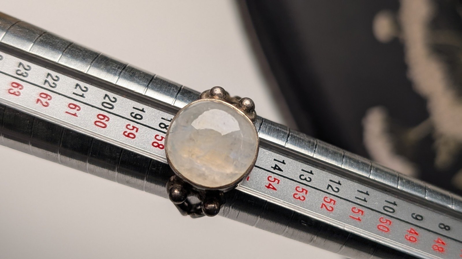 Vintage Sterling Silver Circle Clear/Blue Moonstone Gemstone Ring | Size P | 925
