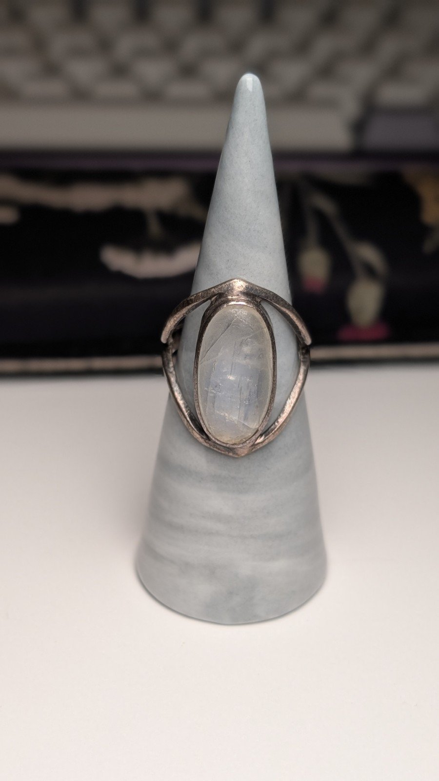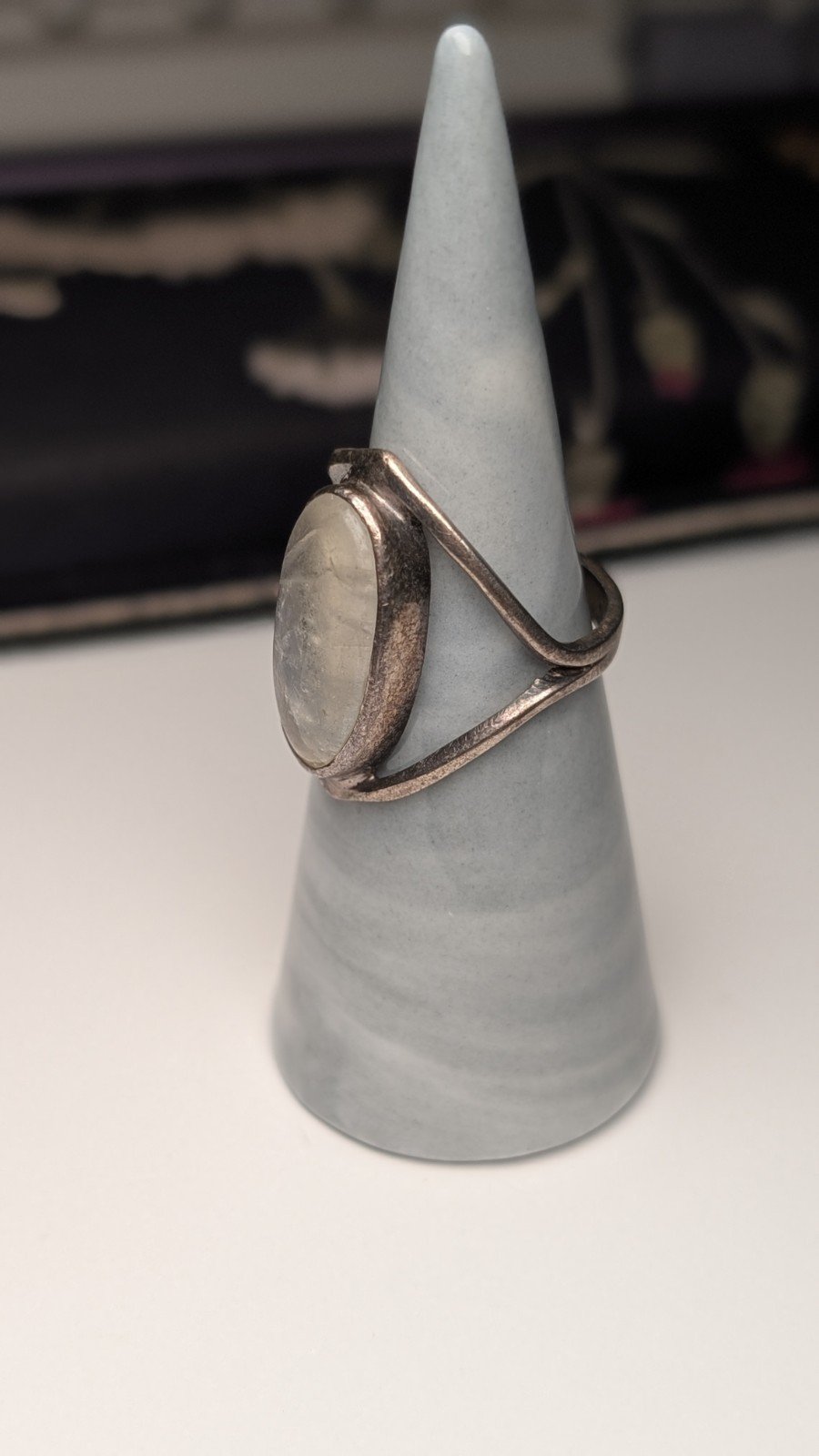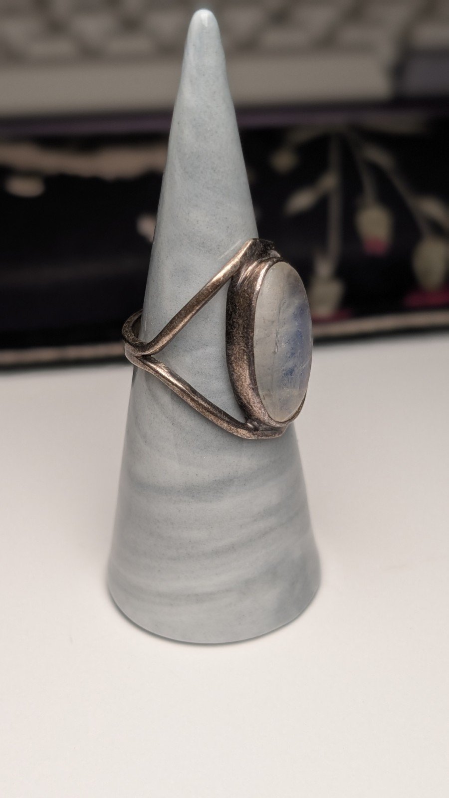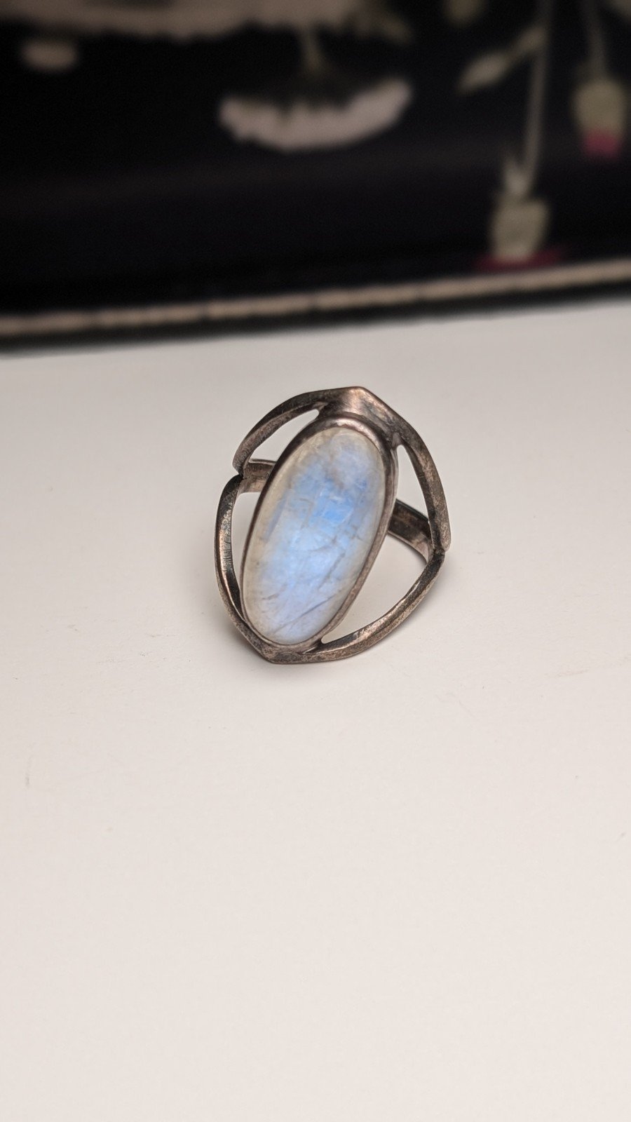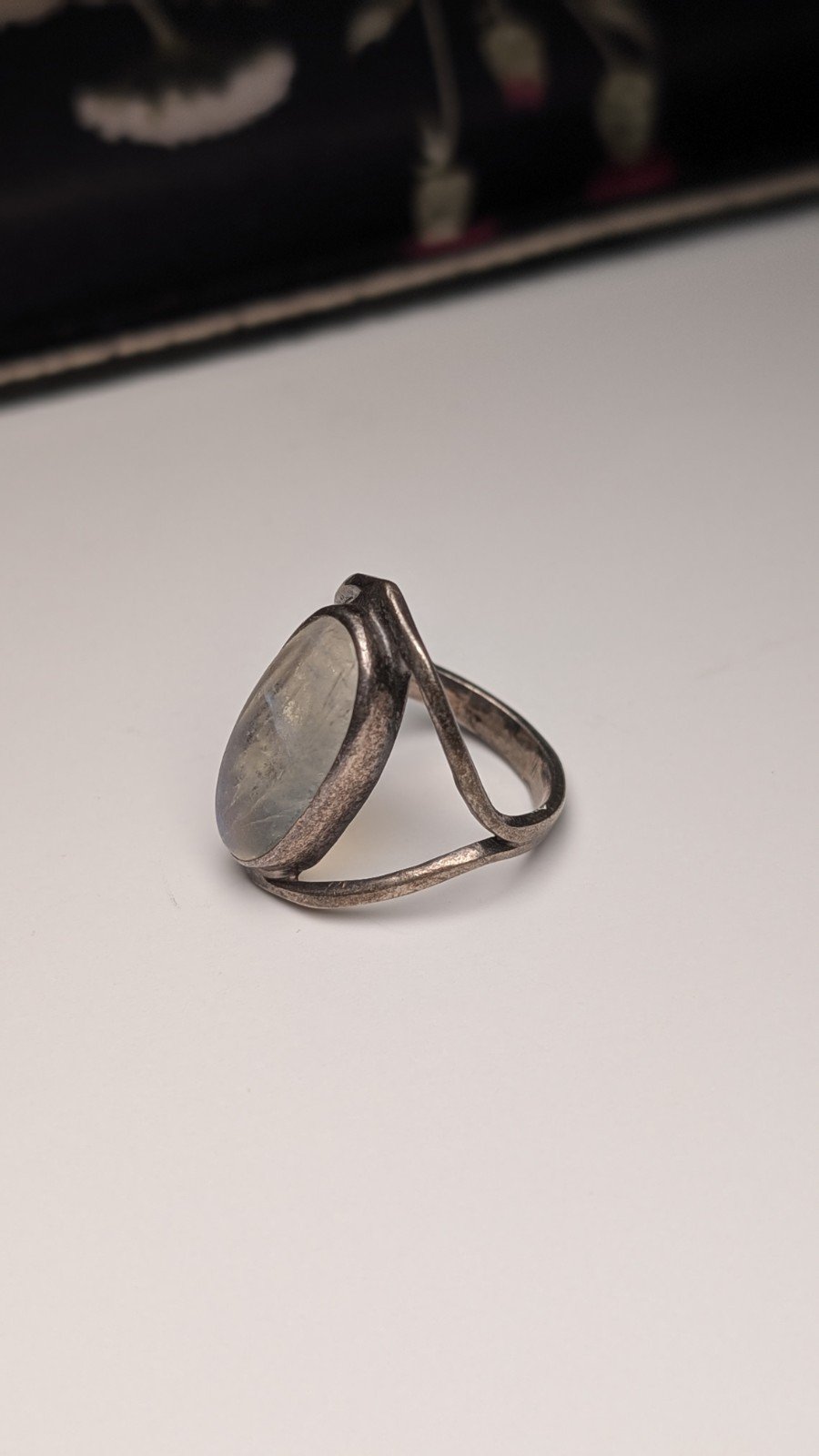 Vintage Sterling Silver Clear/Blue Moonstone Ring | Size O 1/2 | 925 Silver