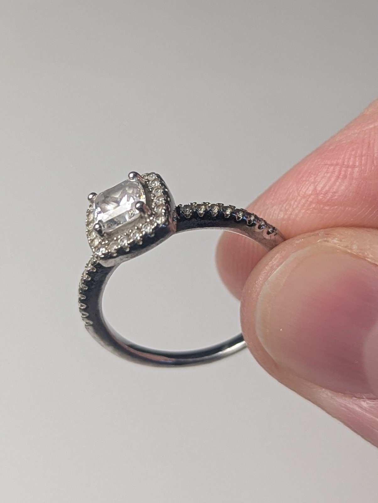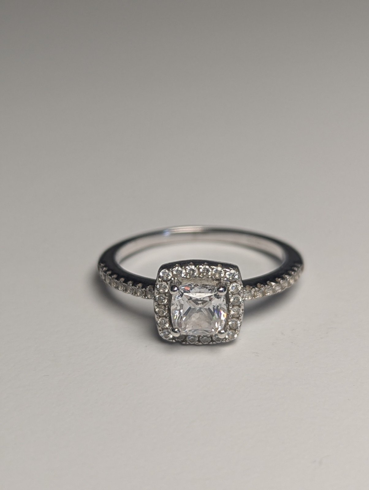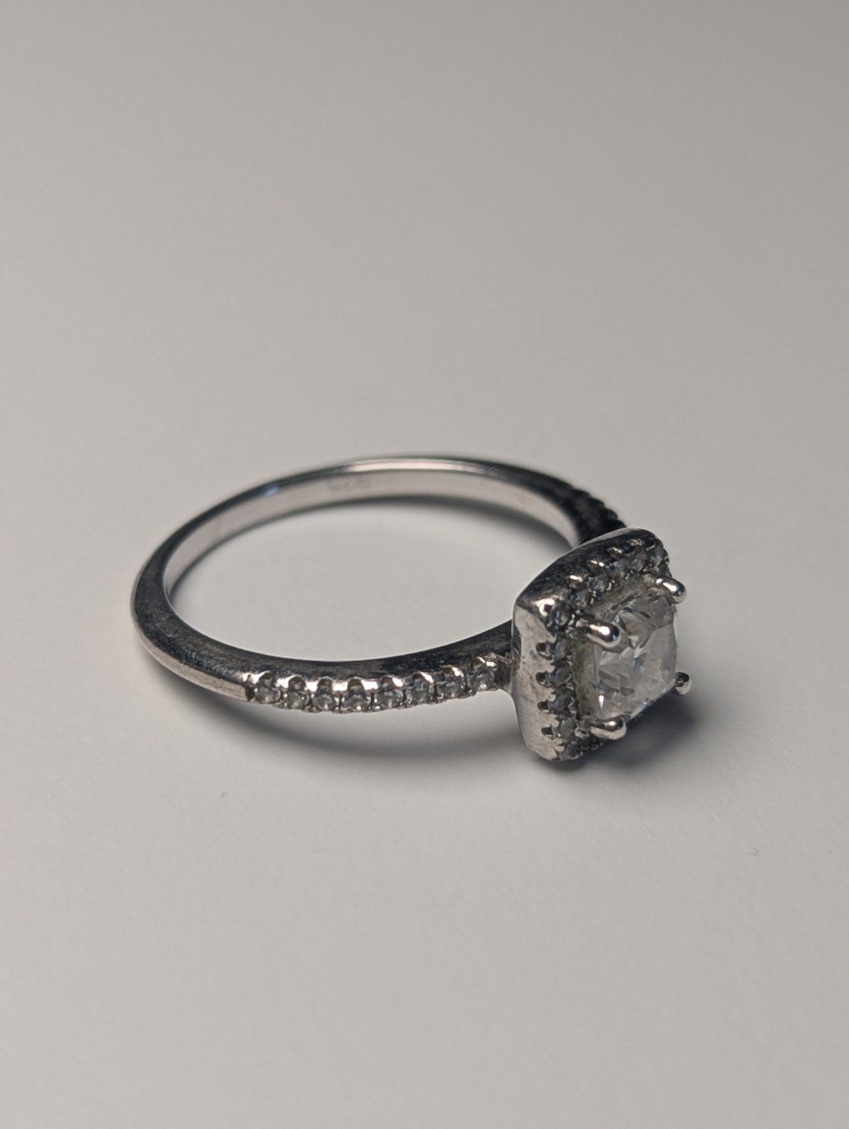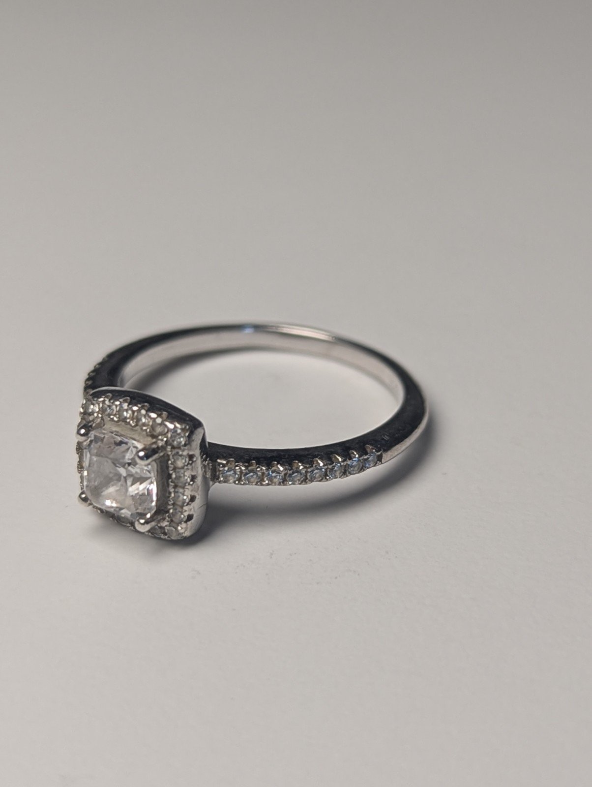 Vintage Sterling Silver Clear DQCZ Gemstone Cluster Ring | Size N | 925 Silver