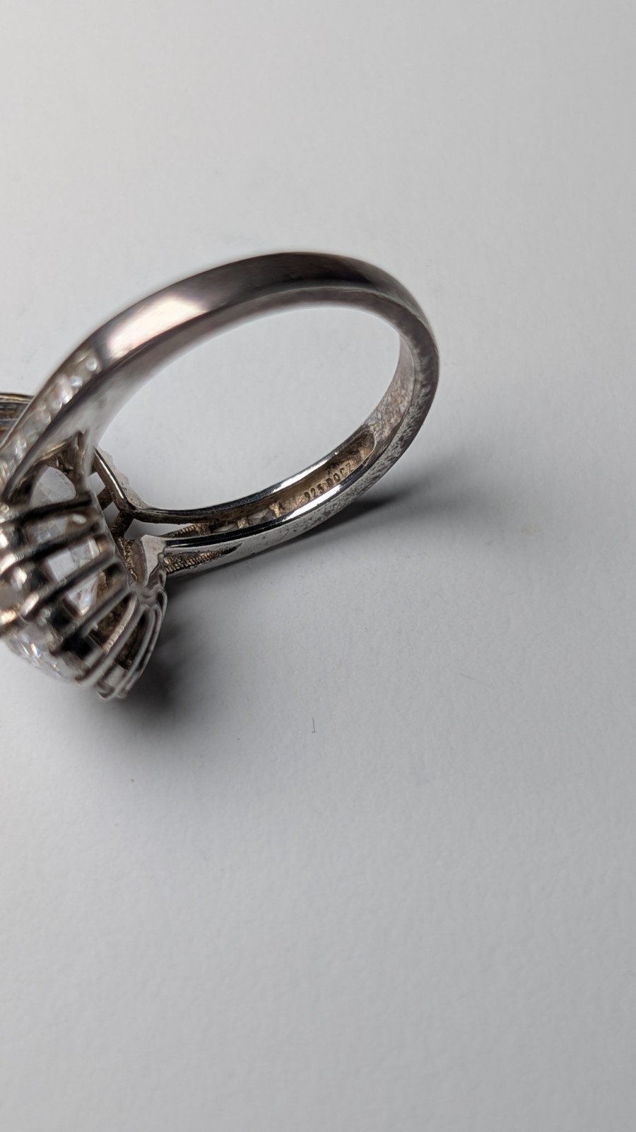 Vintage Sterling Silver Clear DQCZ Halo Statement Ring | Size M 1/2 | 925 Silver