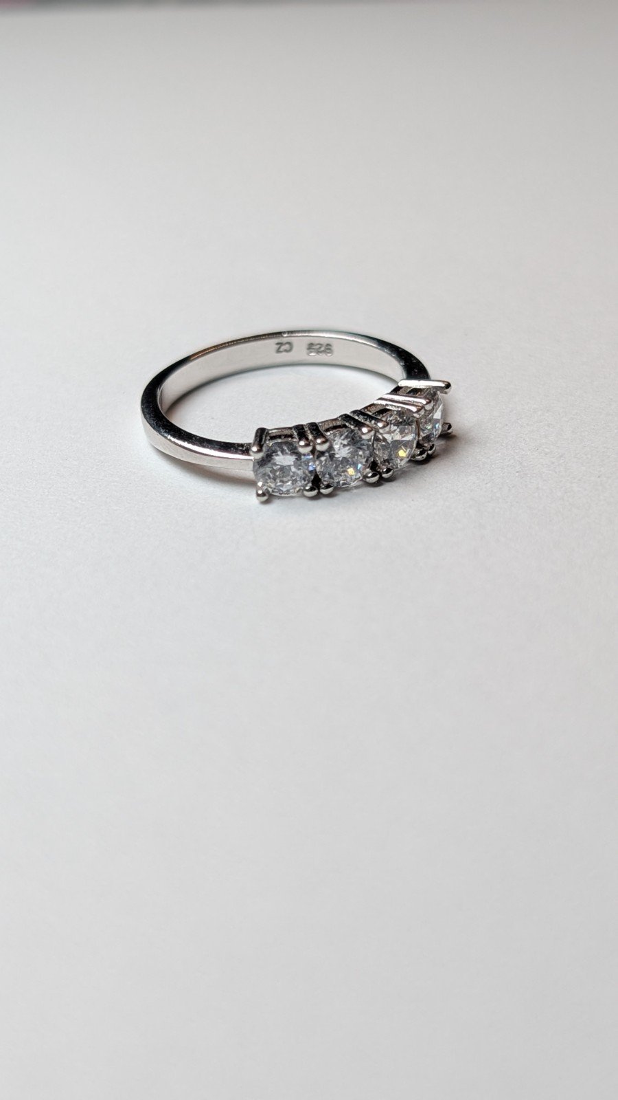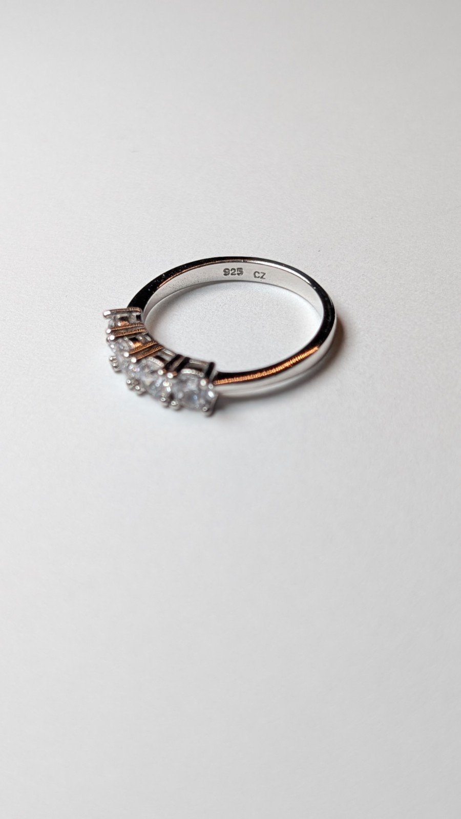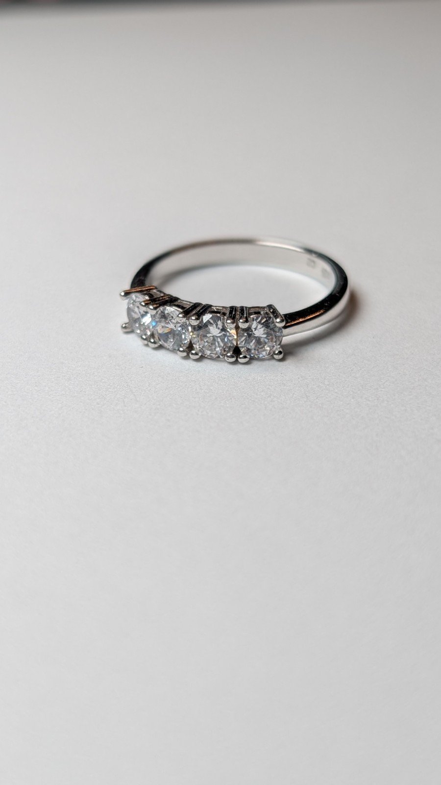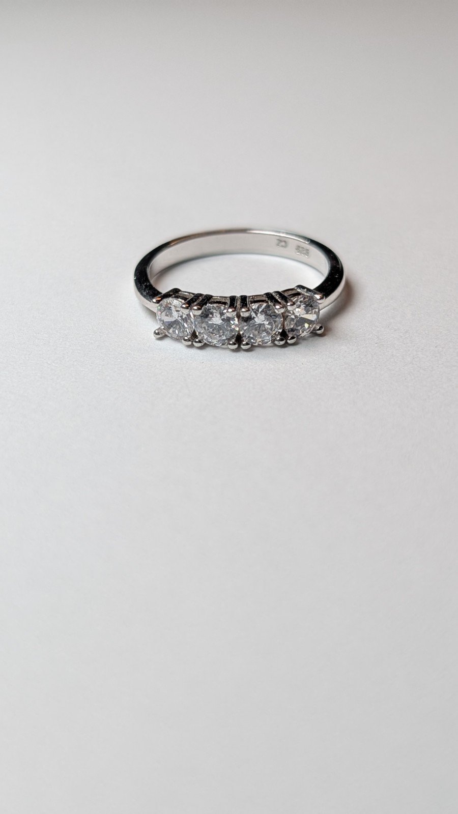 This Vintage Sterling Silver Clear Gemstone 4 Stone Ring in size P 1/2 is a classic and elegant piece of jewellery for women.