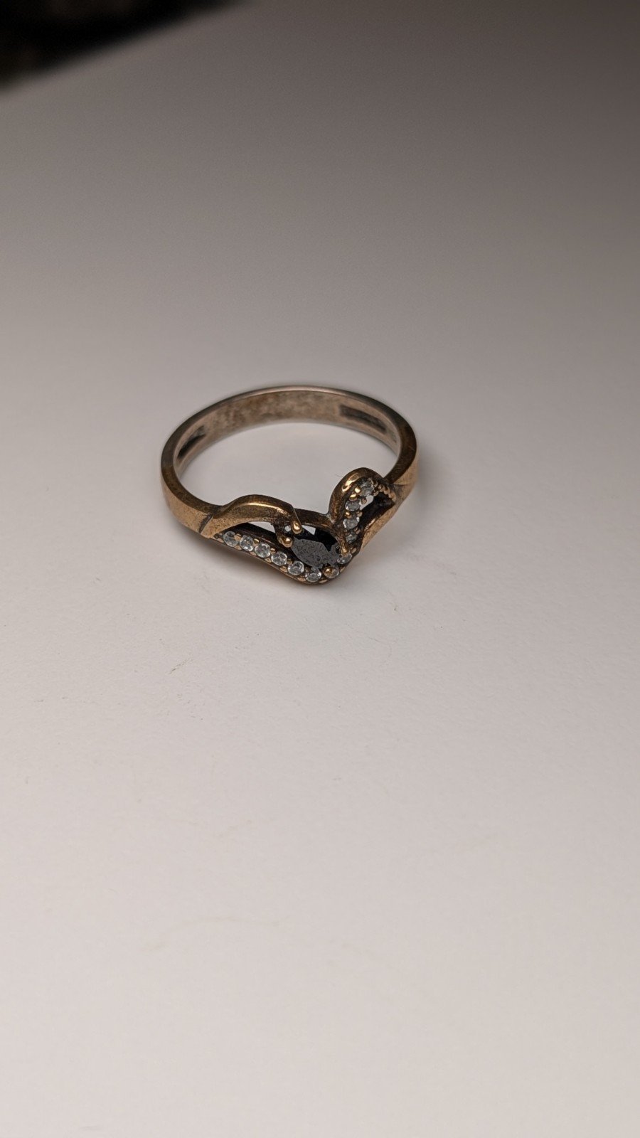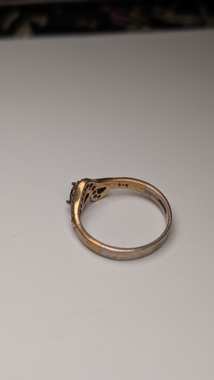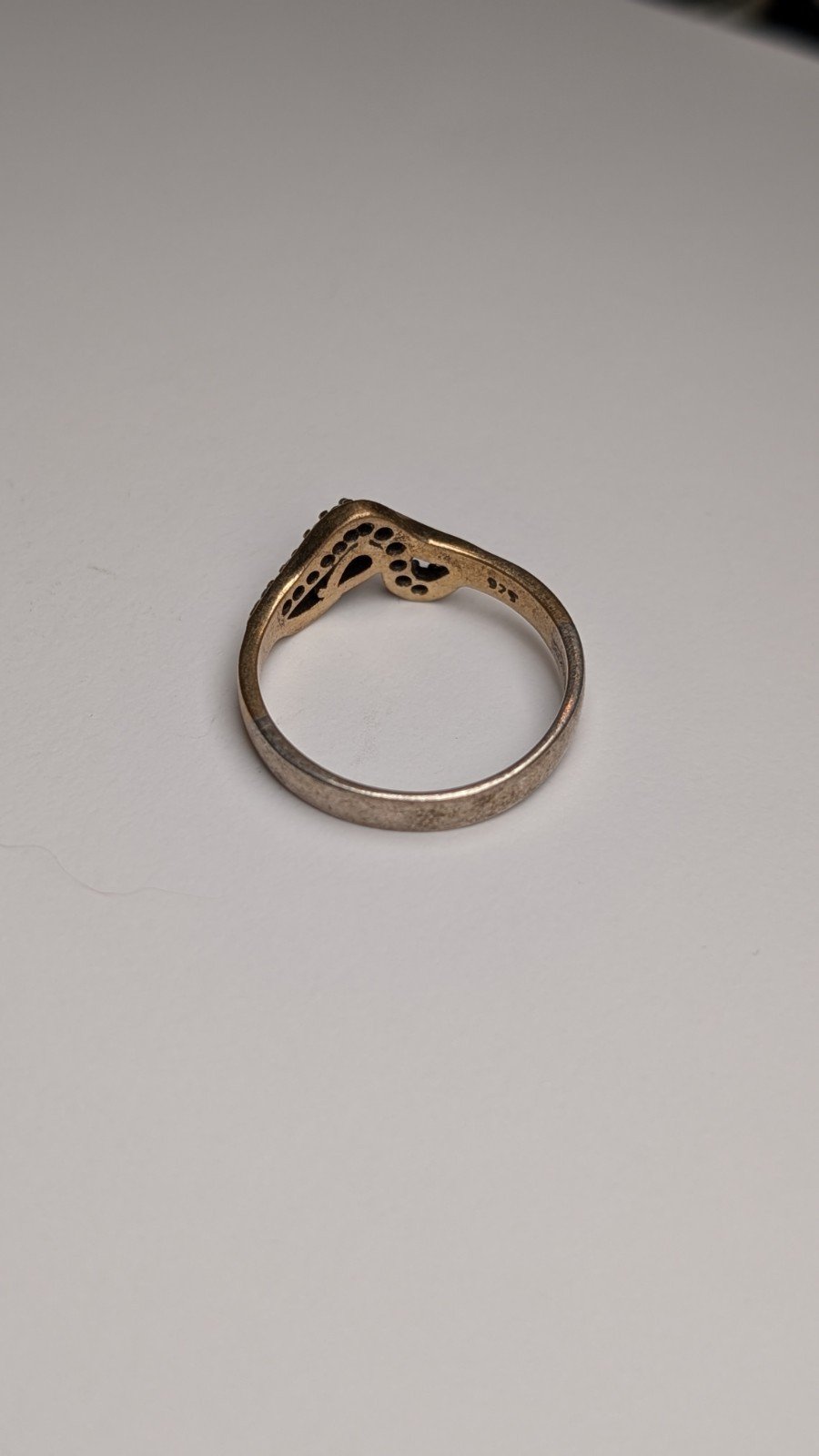 The ring is hallmarked and showcases a classic vintage look.