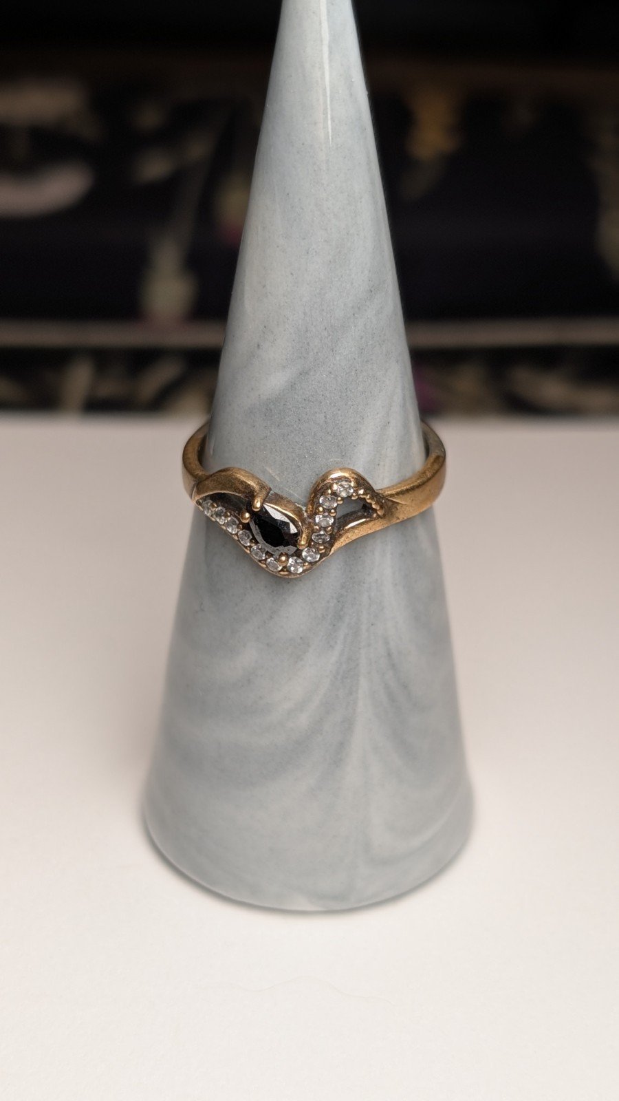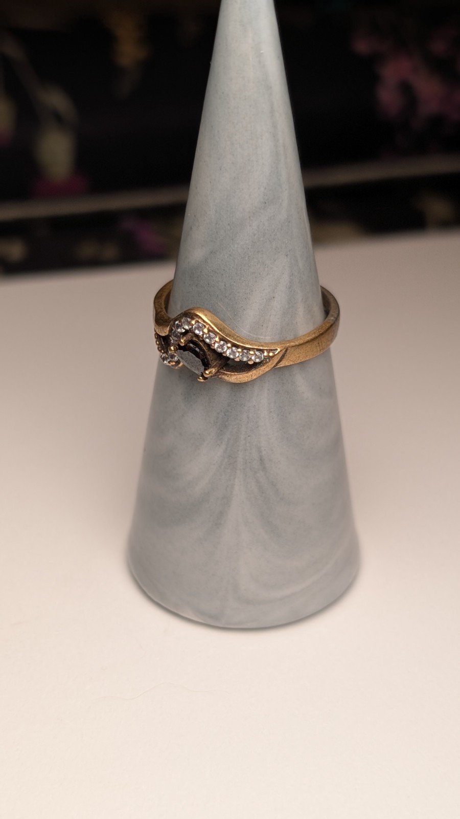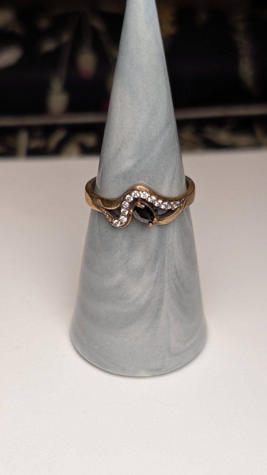 The ring is hallmarked and showcases a classic vintage look.