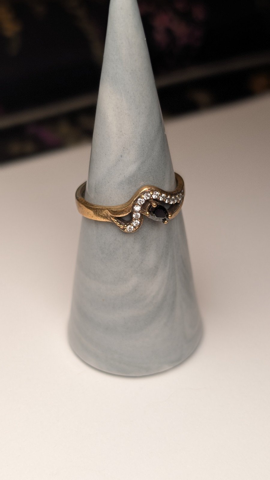 Vintage Sterling Silver Clear Gemstone & Black Onyx Two Tone Ring | Size R | 925