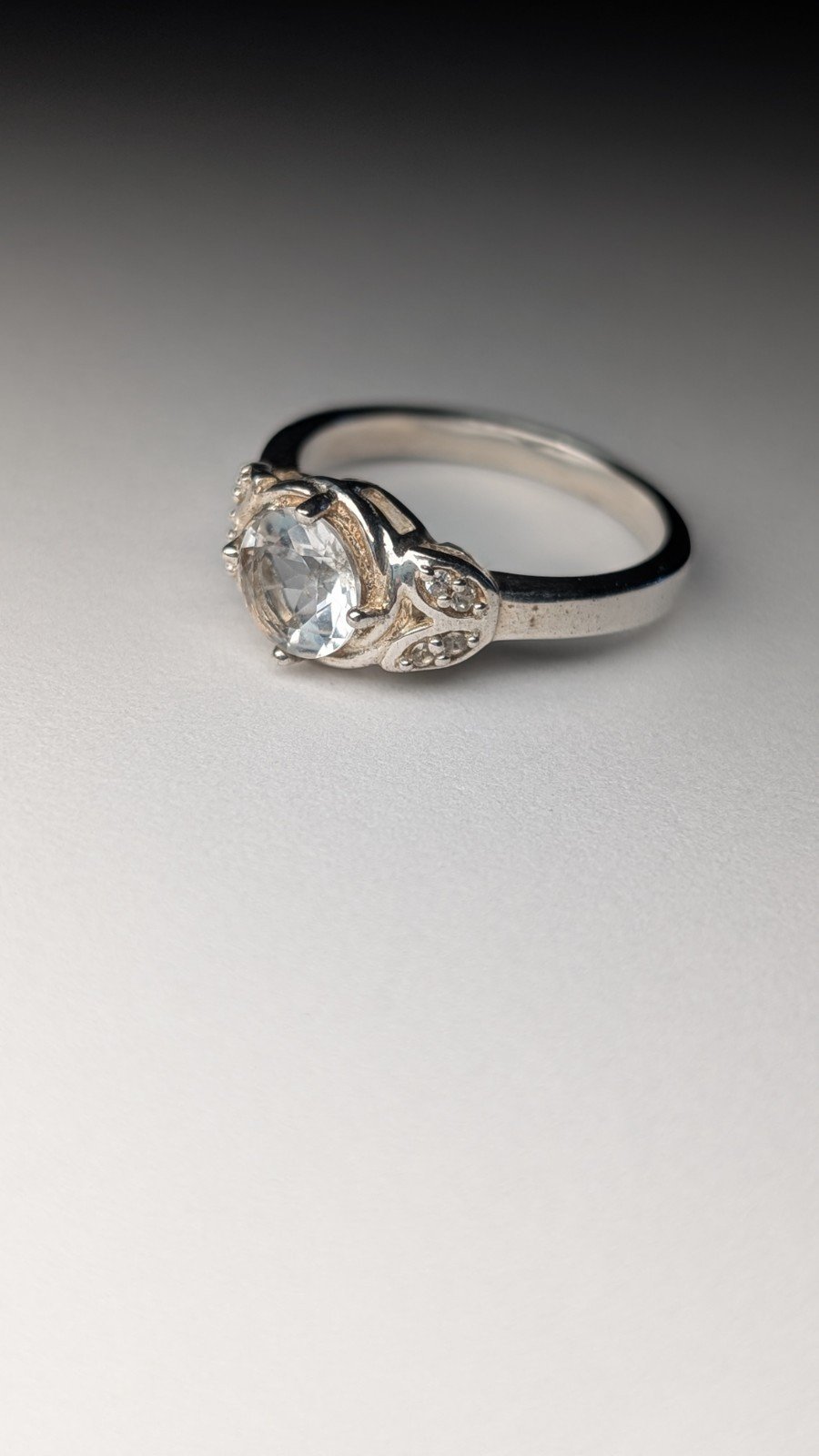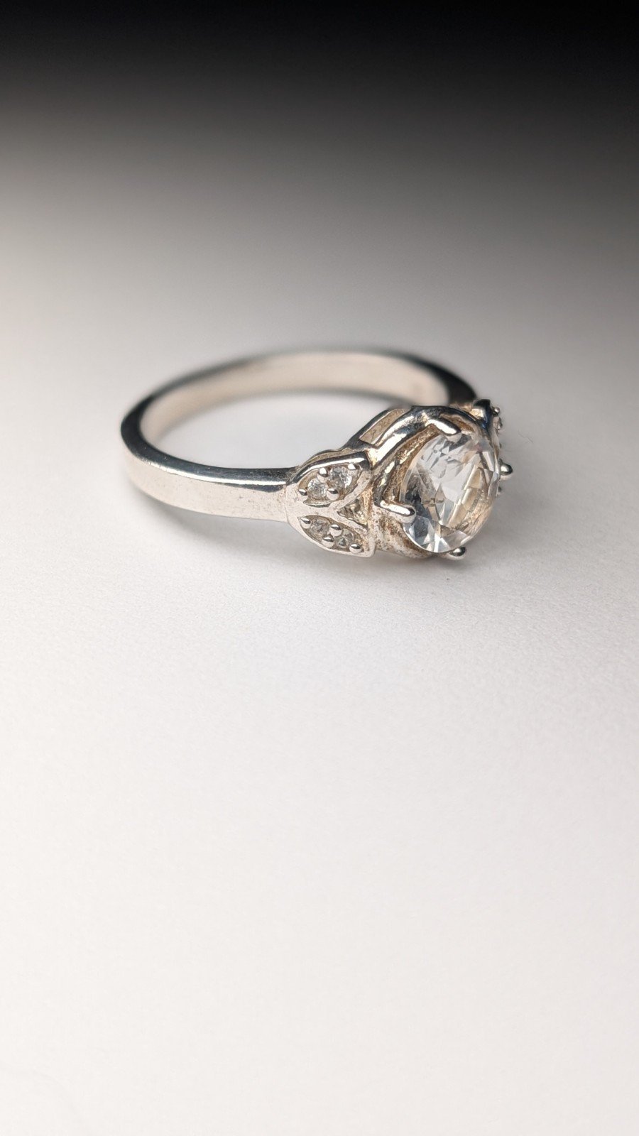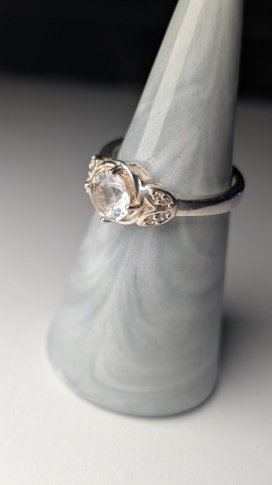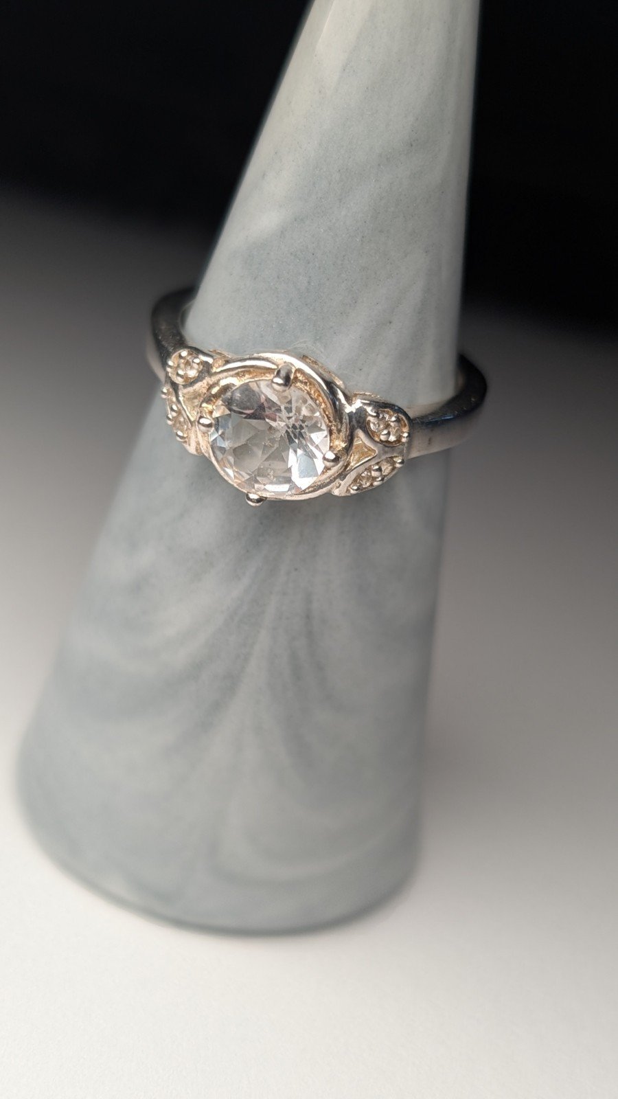 Vintage Sterling Silver Clear Gemstone Ring | Size Q | Size Q | 925 Silver