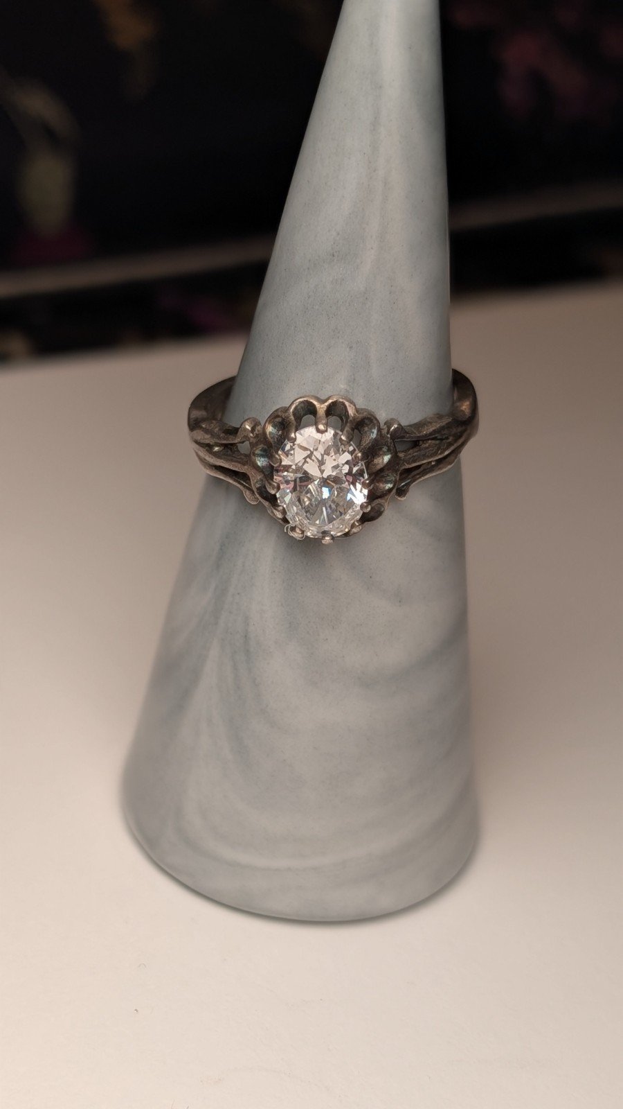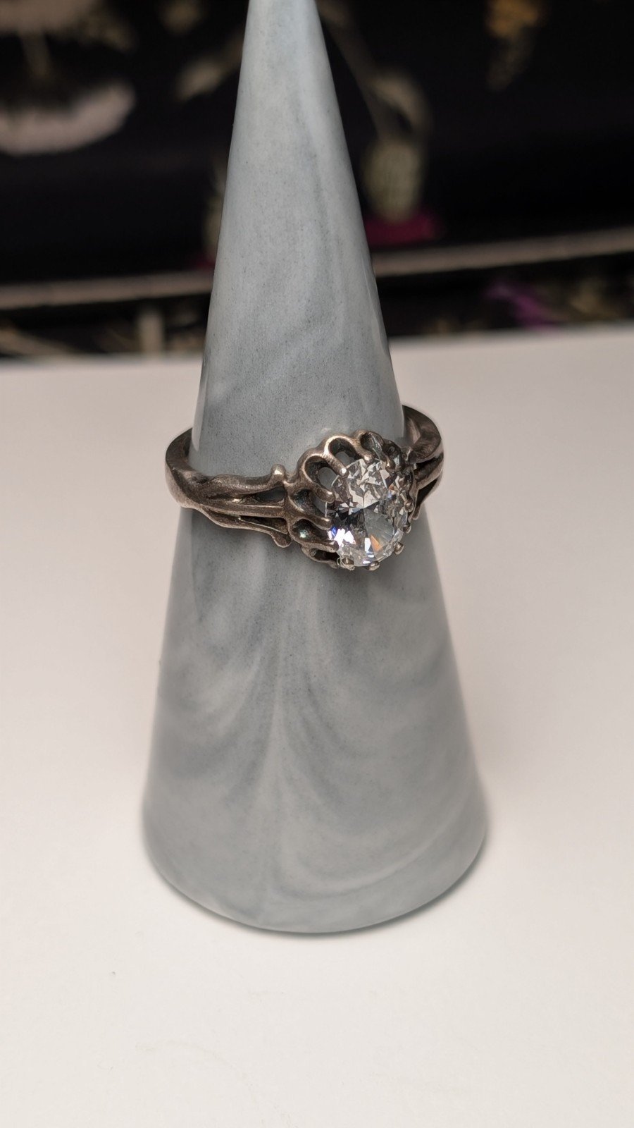 Vintage Sterling Silver Clear Gemstone Solitaire Ring | Size P 1/2 | 925 Silver