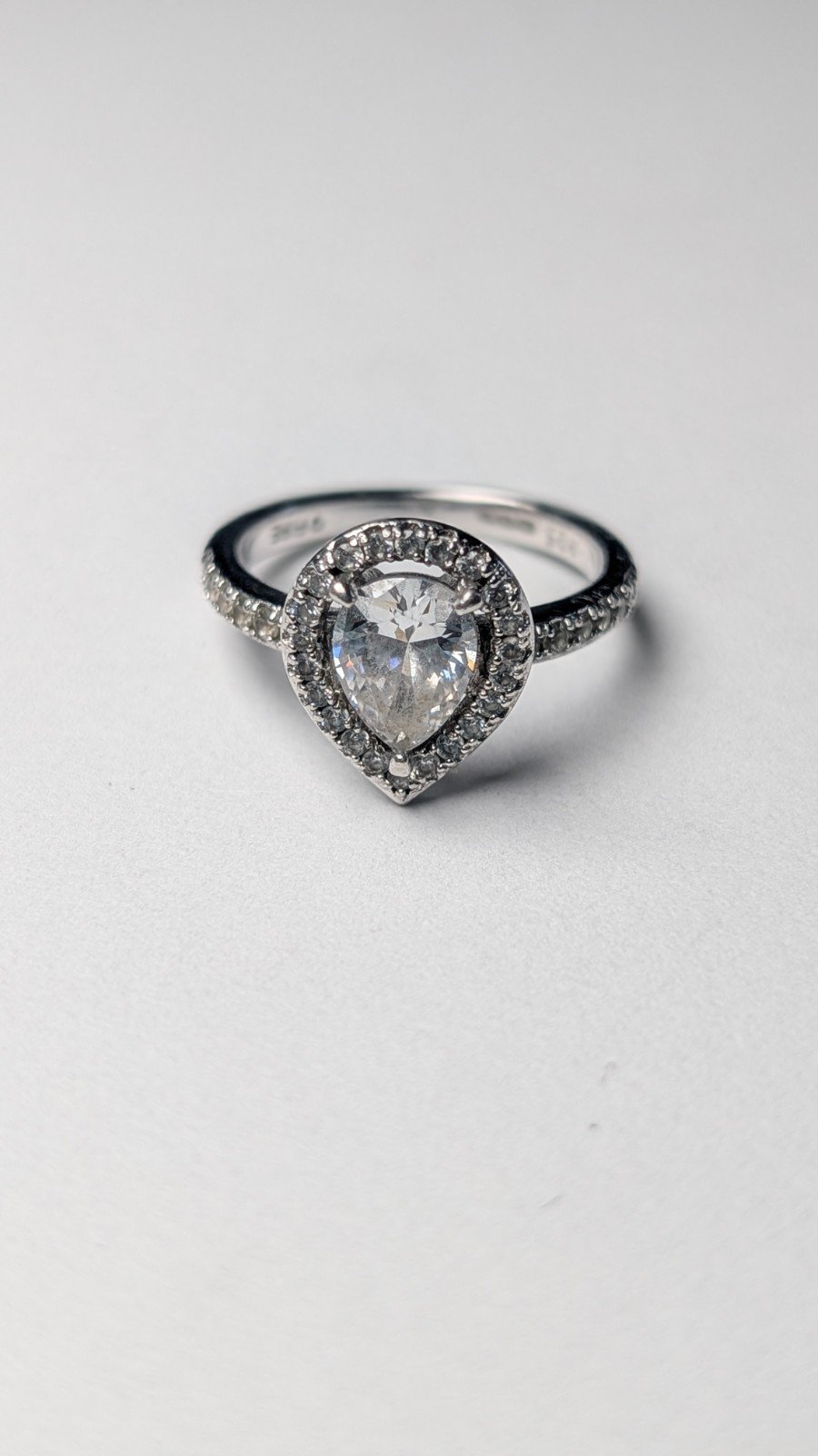 This vintage sterling silver ring features a teardrop-shaped clear gemstone, set in 925 silver with a natural creation.