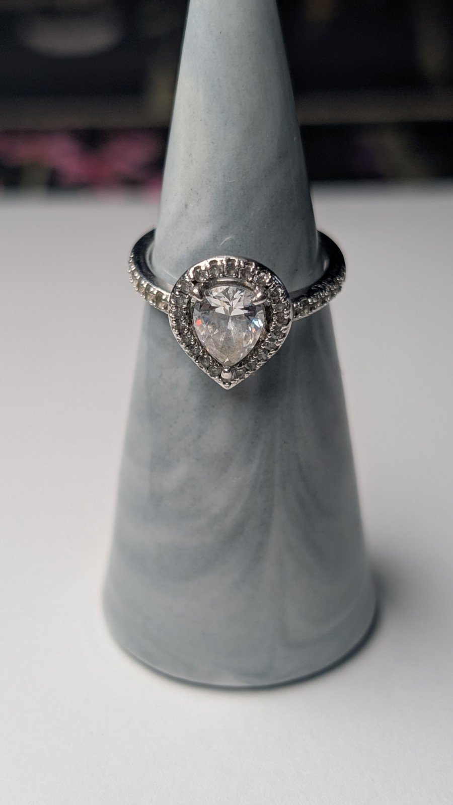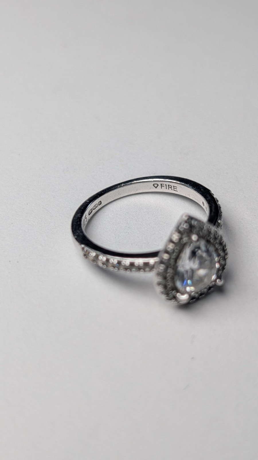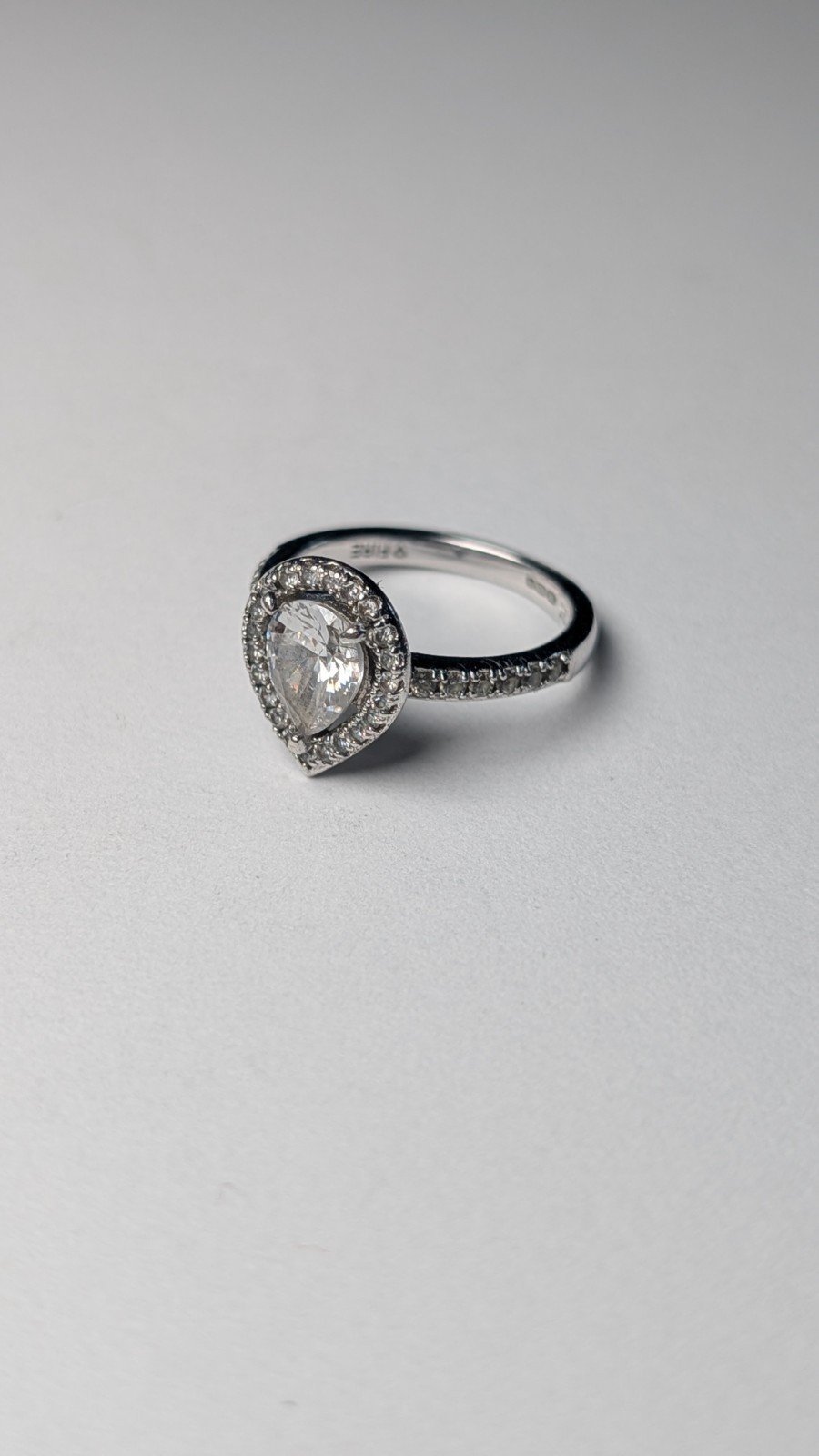 Vintage Sterling Silver Clear Gemstone Teardrop Ring | Size L 1/2 | 925 Silver