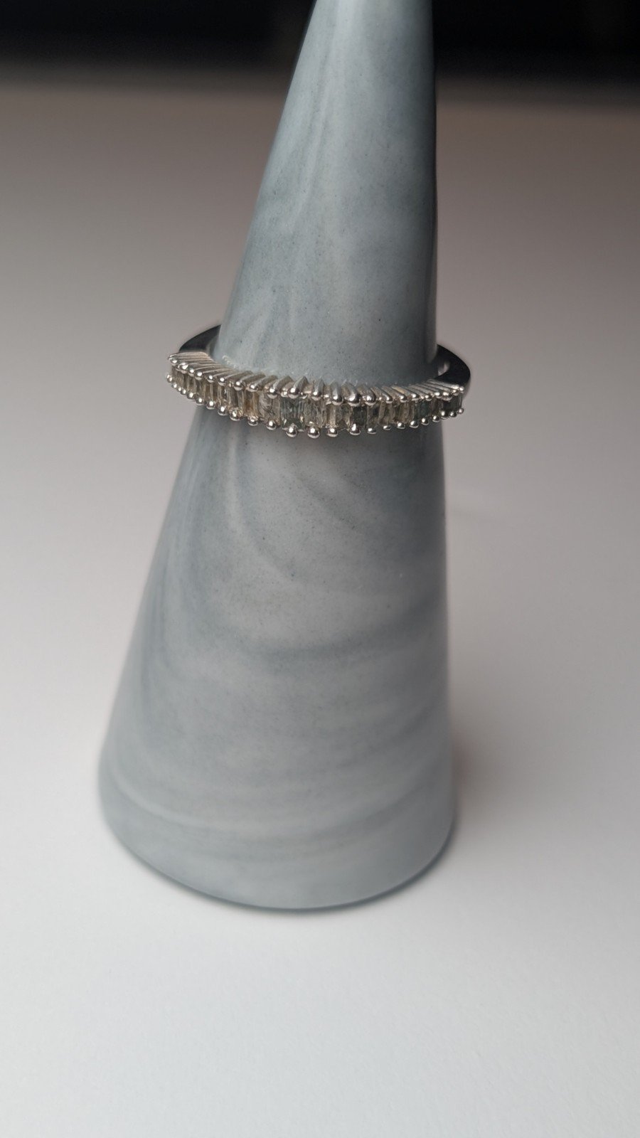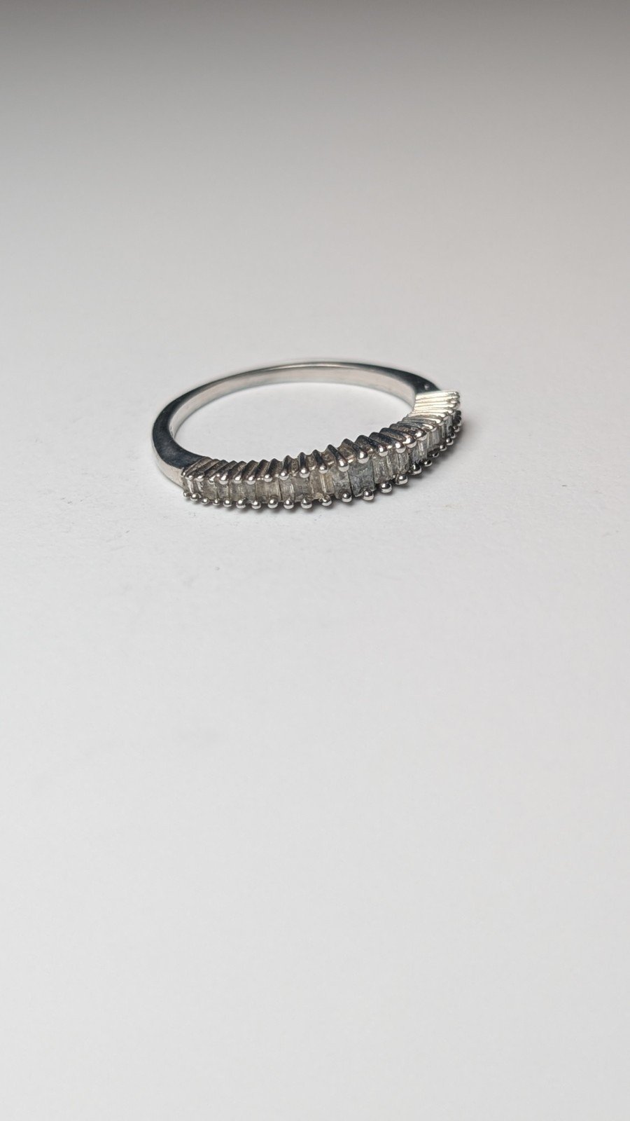 This Vintage Sterling Silver Clear Gemstones Baguette Ring is a stunning piece of jewellery, featuring a classic design with a touch of elegance.