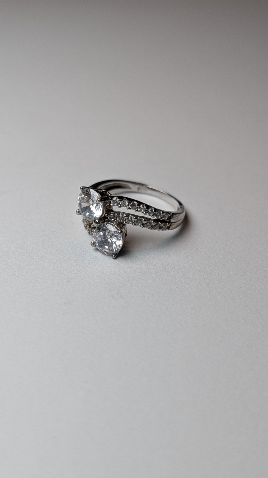 Vintage Sterling Silver Clear Gemstones Wrap Ring | Size M 1/2 | 925 Silver