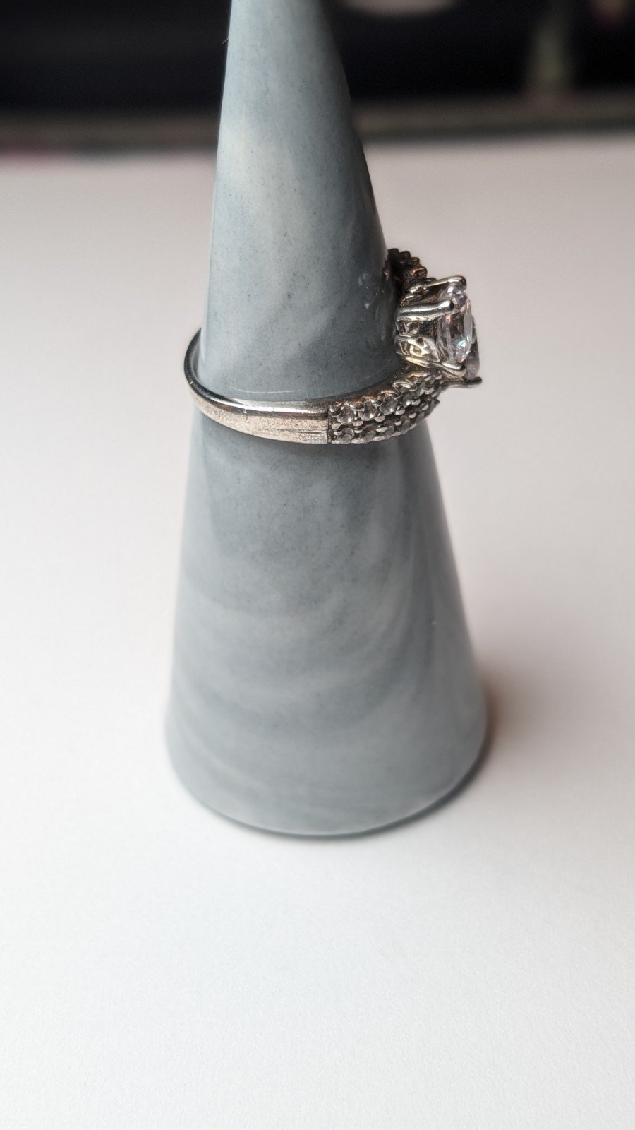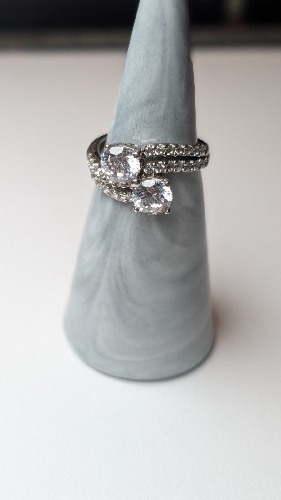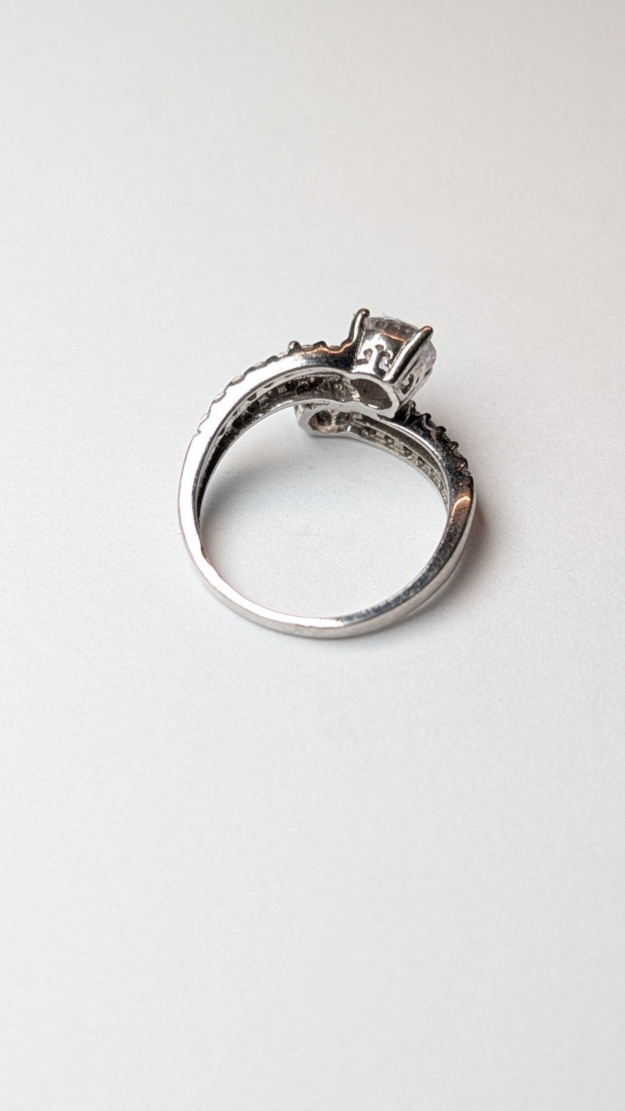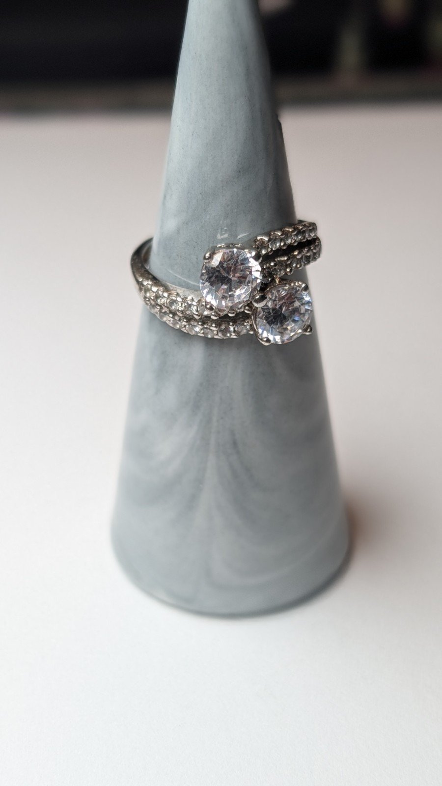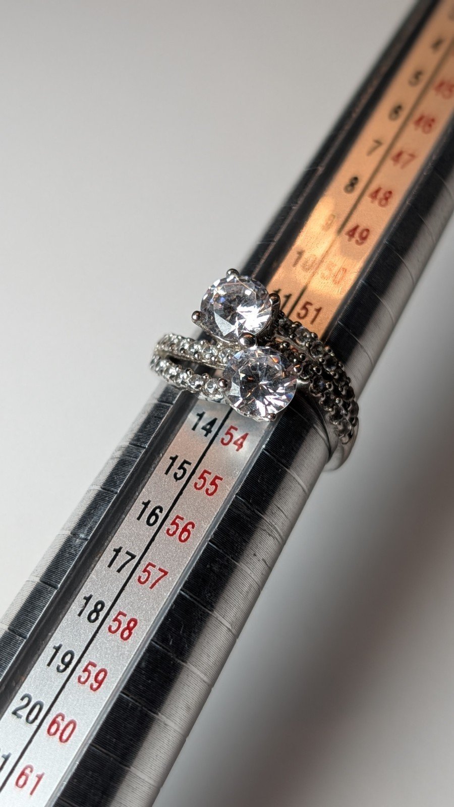 This Vintage Sterling Silver Clear Gemstones Wrap Ring is a size M 1/2 and is made of 925 sterling silver.