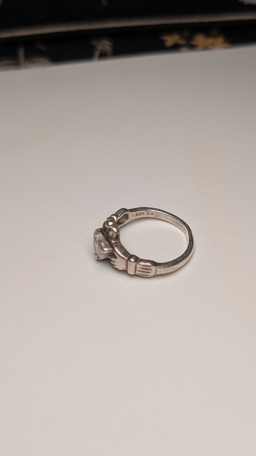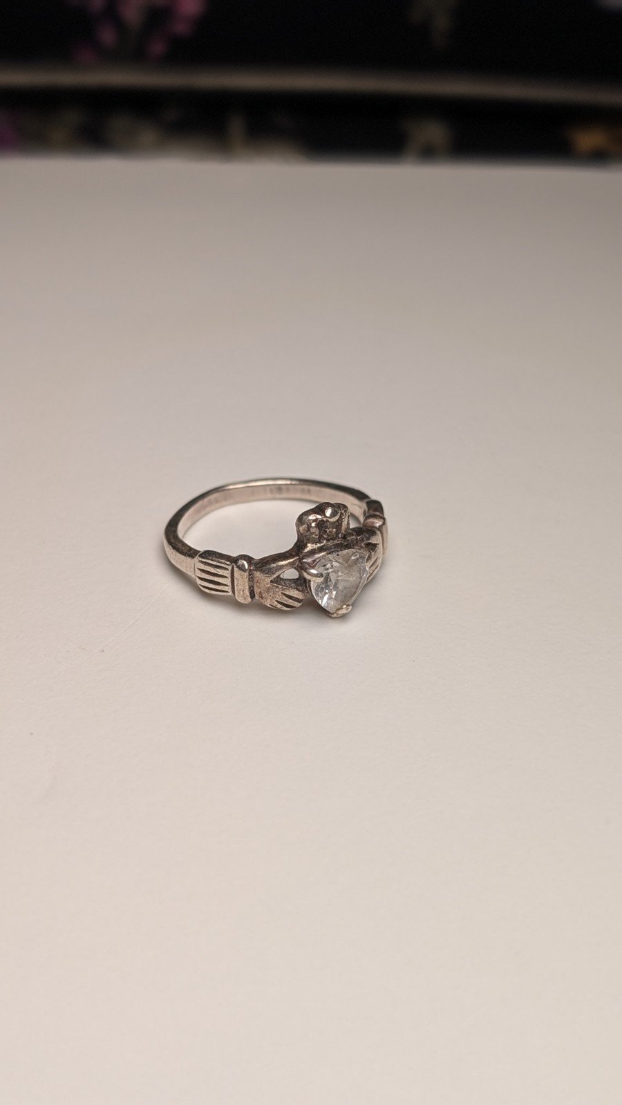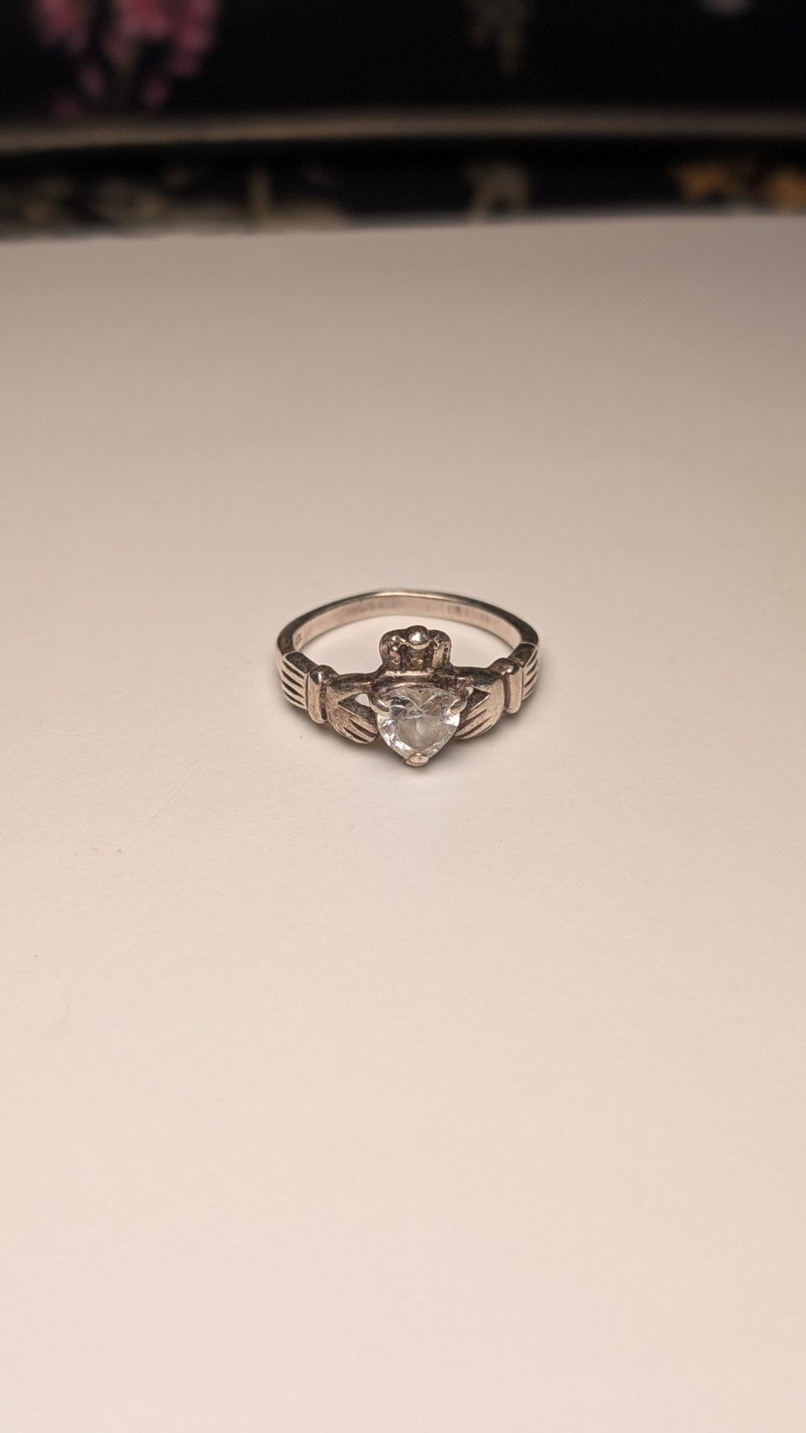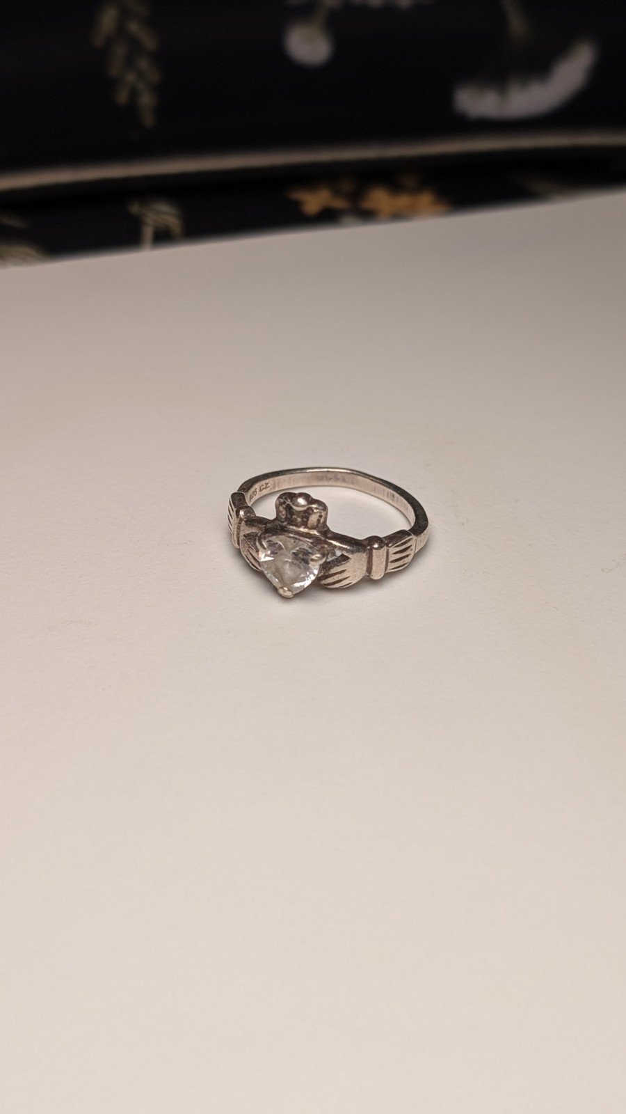 Be the first to review “Vintage Sterling Silver Clear Heart CZ Irish Claddagh Ring | Size L 1/2 | 925”