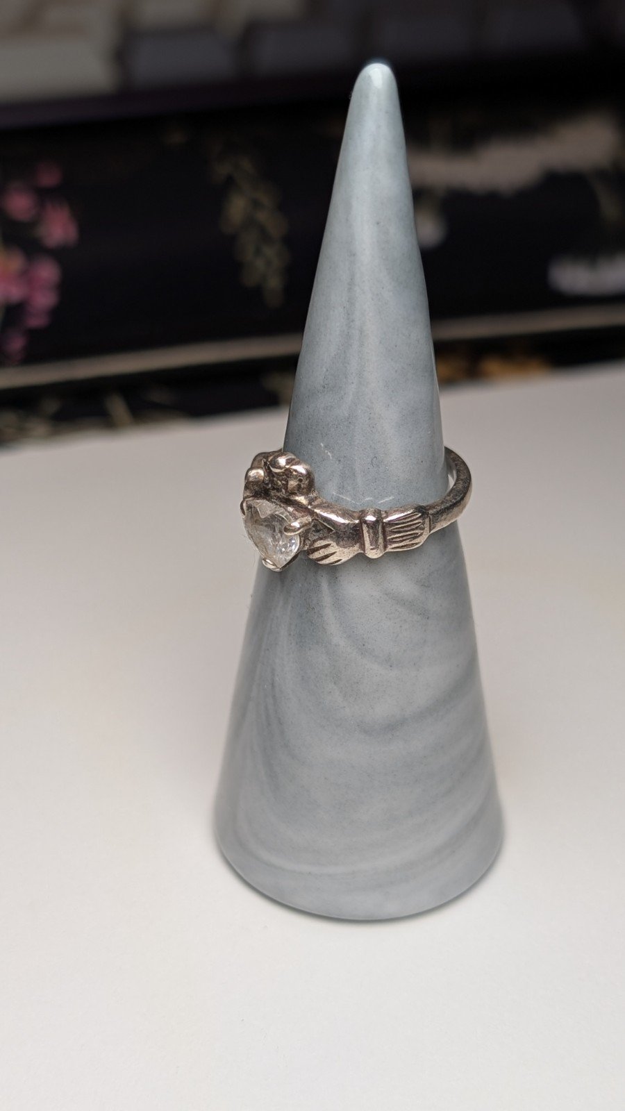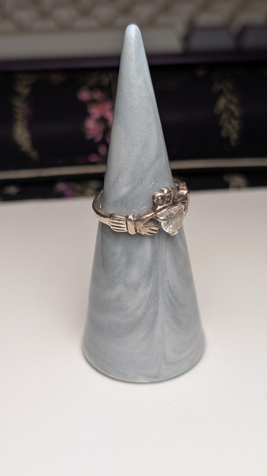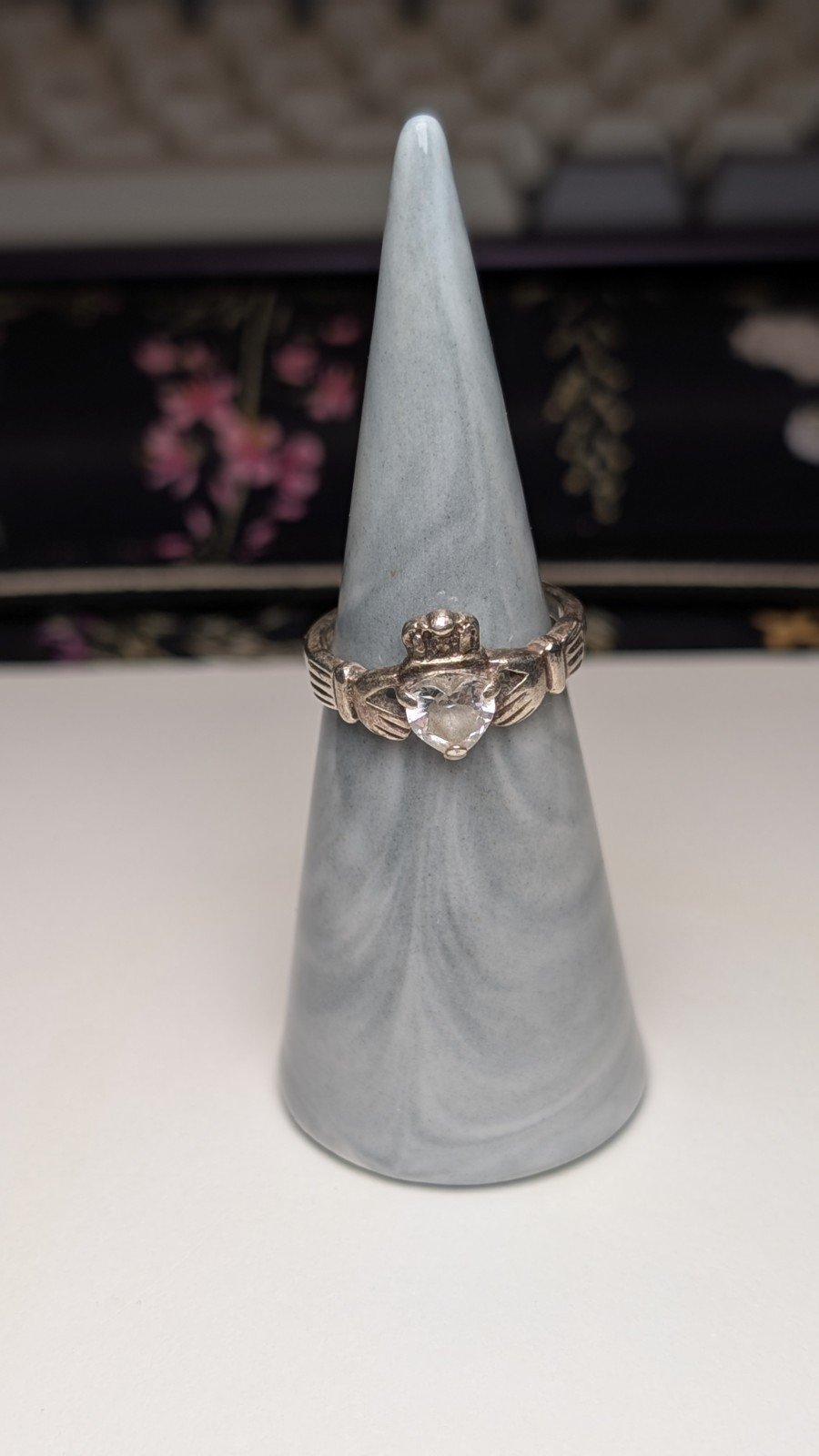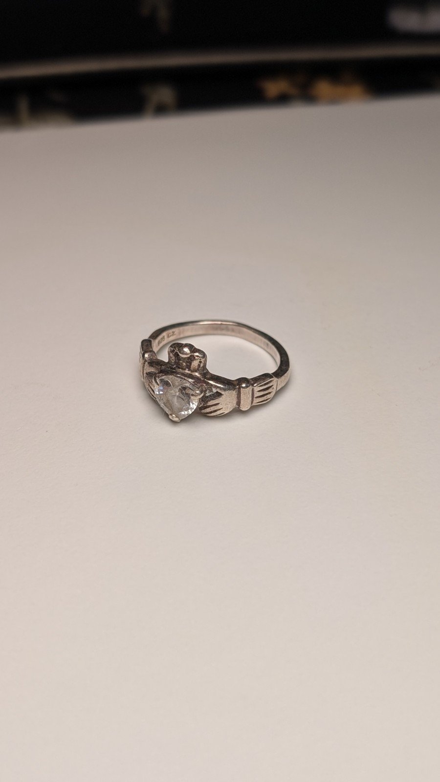 Be the first to review “Vintage Sterling Silver Clear Heart CZ Irish Claddagh Ring | Size L 1/2 | 925”