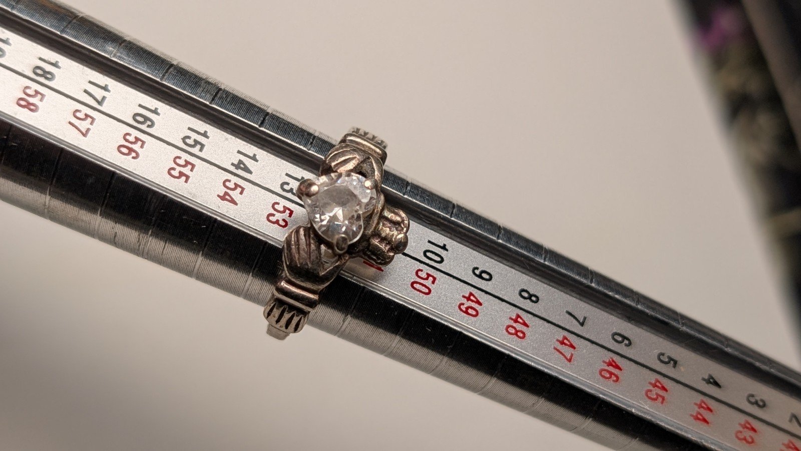 Vintage Sterling Silver Clear Heart CZ Irish Claddagh Ring | Size L 1/2 | 925