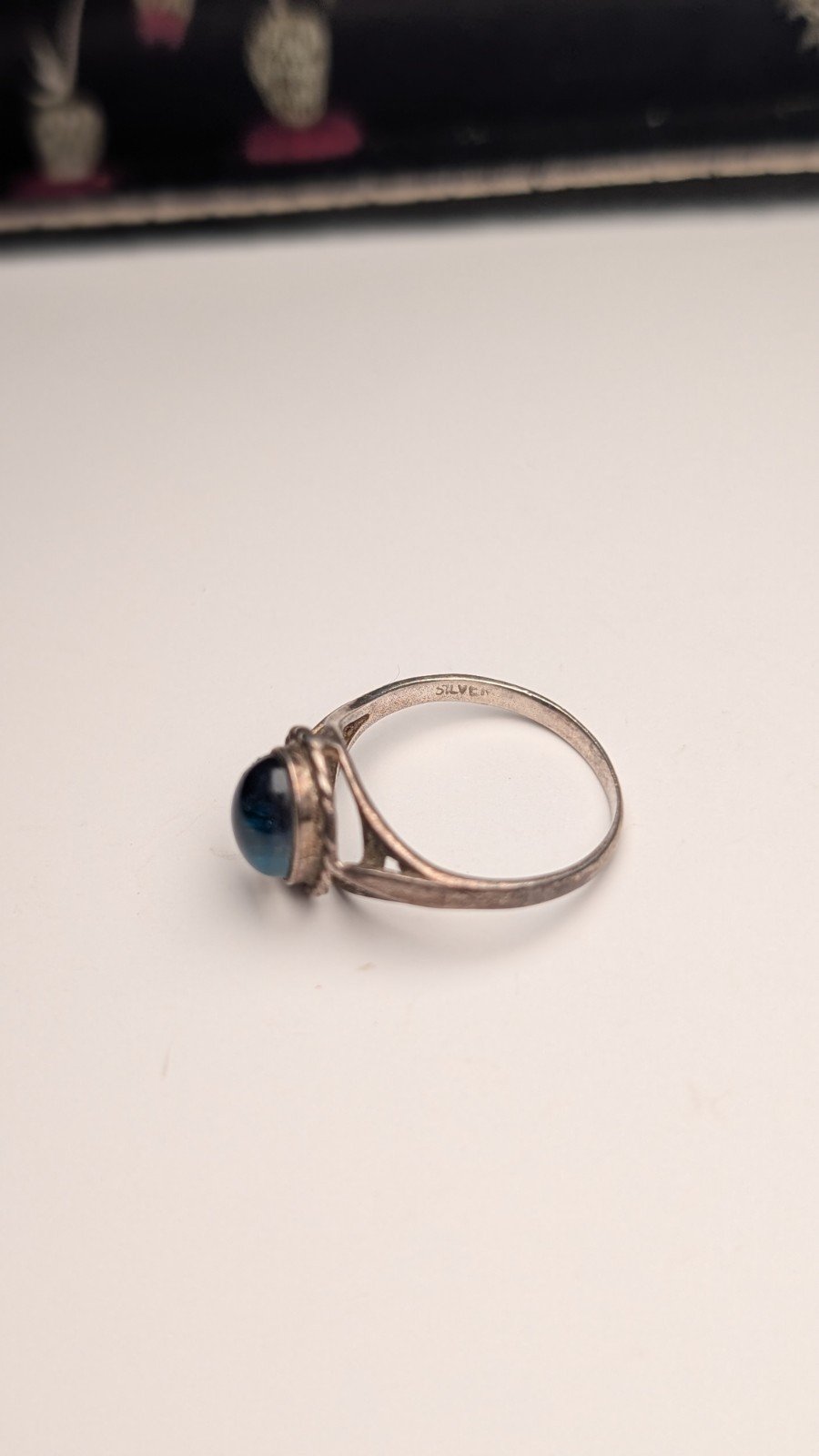 Be the first to review “Vintage Sterling Silver Cloudy Dark Blue/Green Gemstone Ring | Size M | 925”