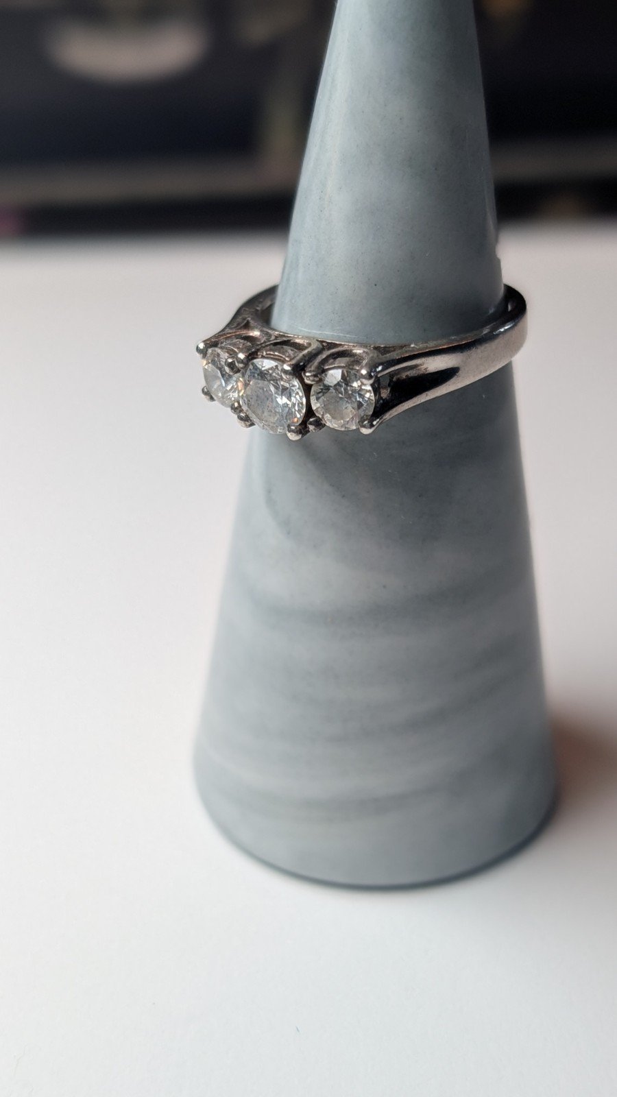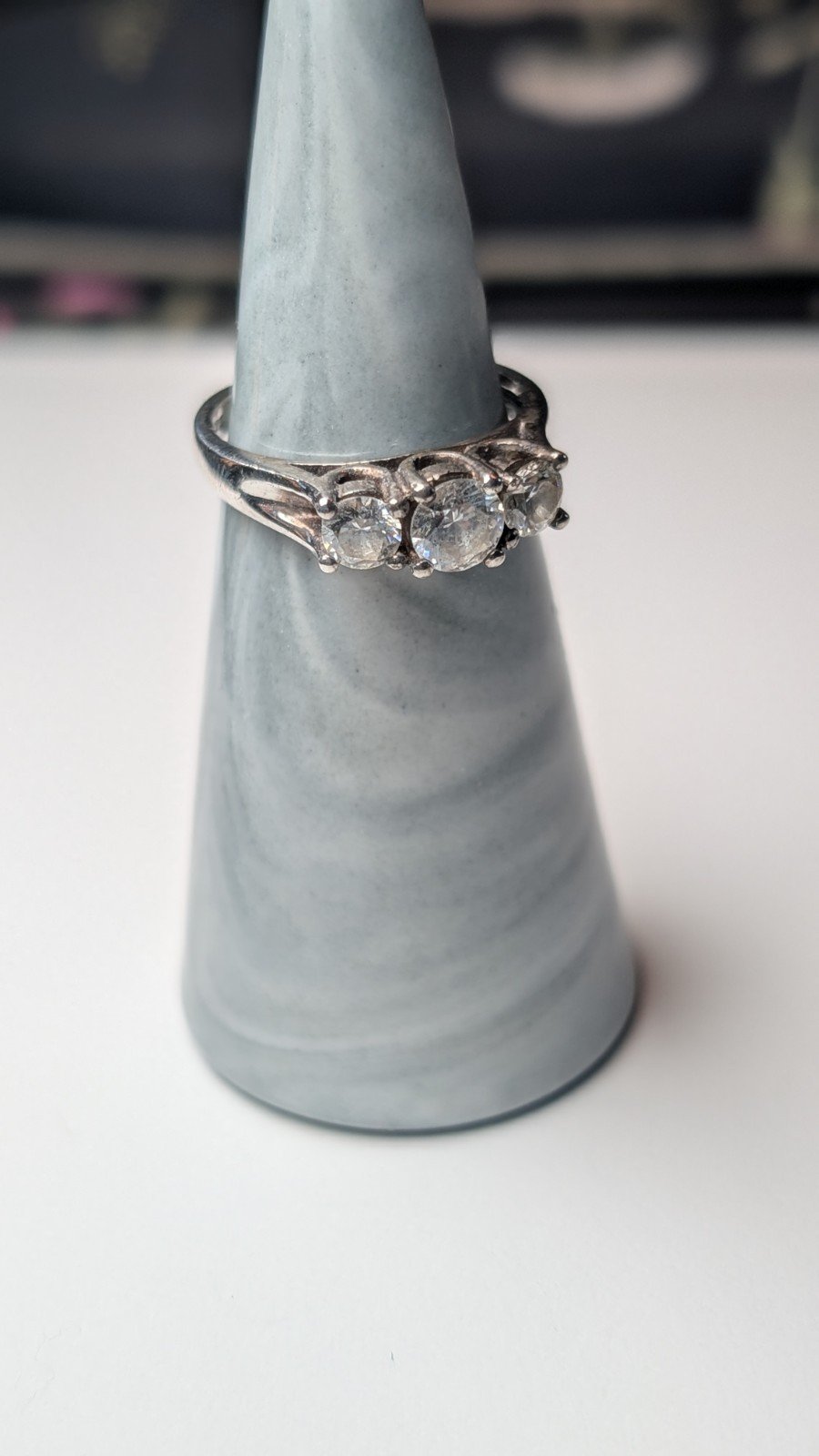 Vintage Sterling Silver CZ 3 Stone Ring | Size N | 925 Silver