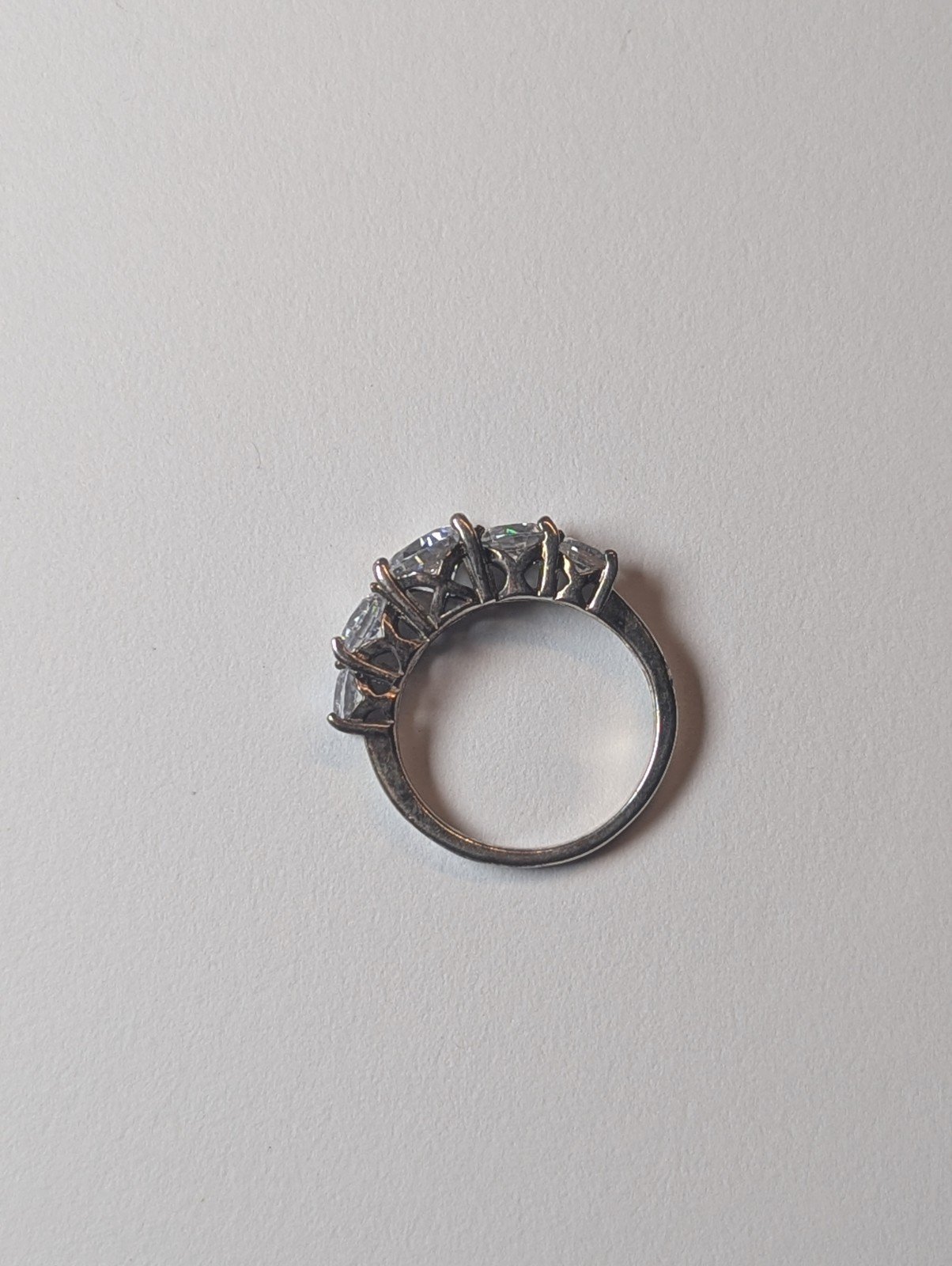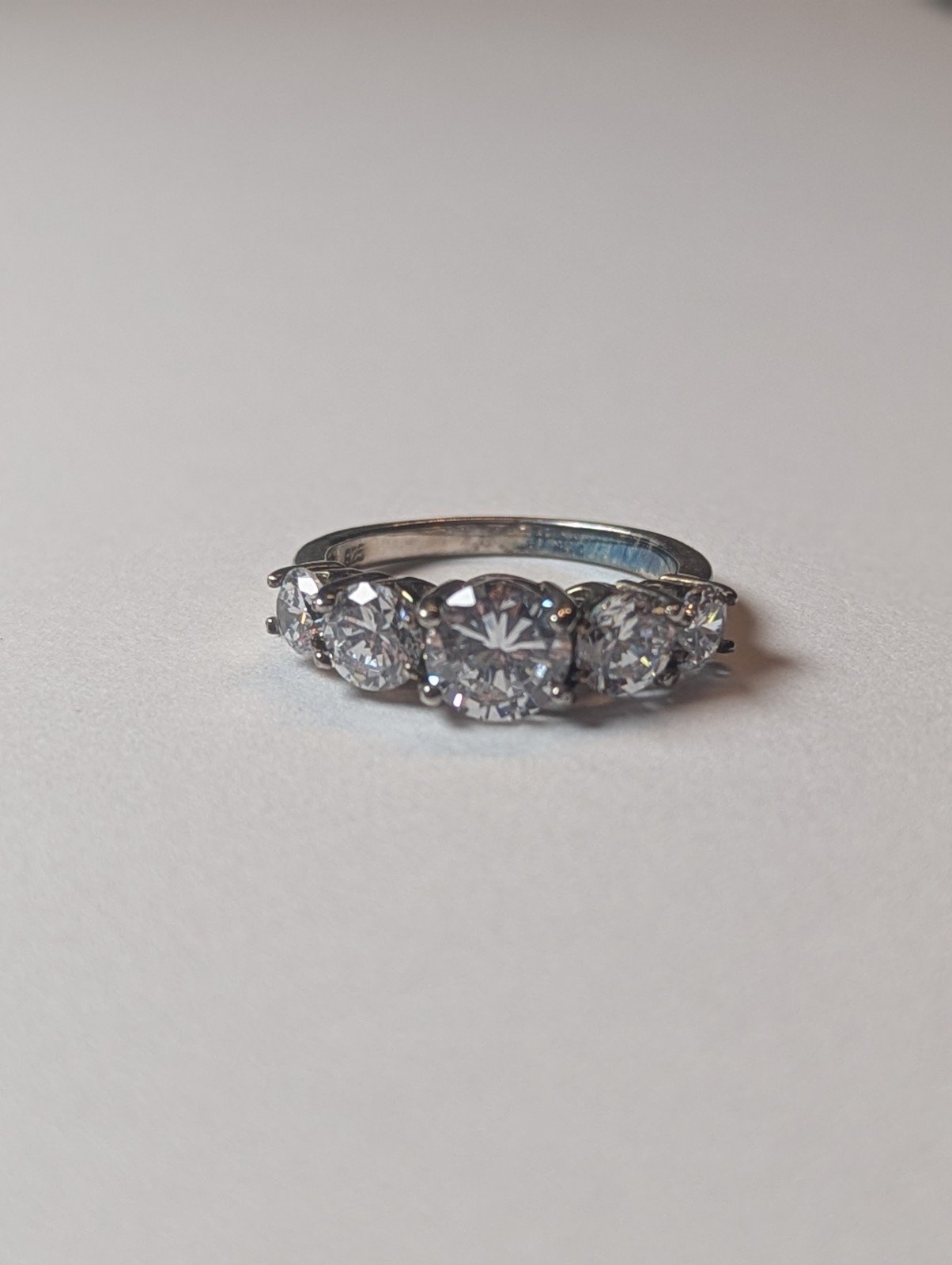 Vintage Sterling Silver CZ 5 Stone Clear Gemstone Ring | Size L | 925