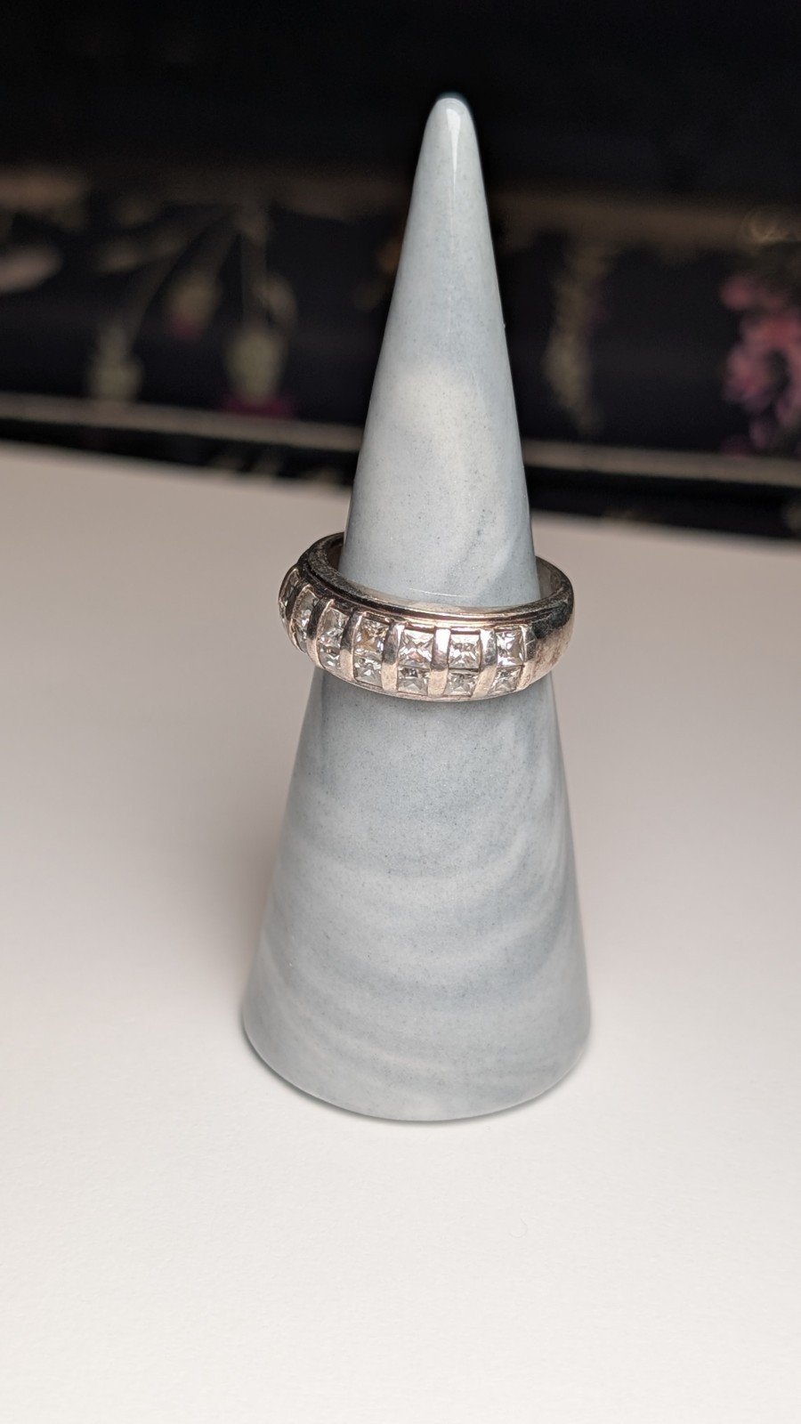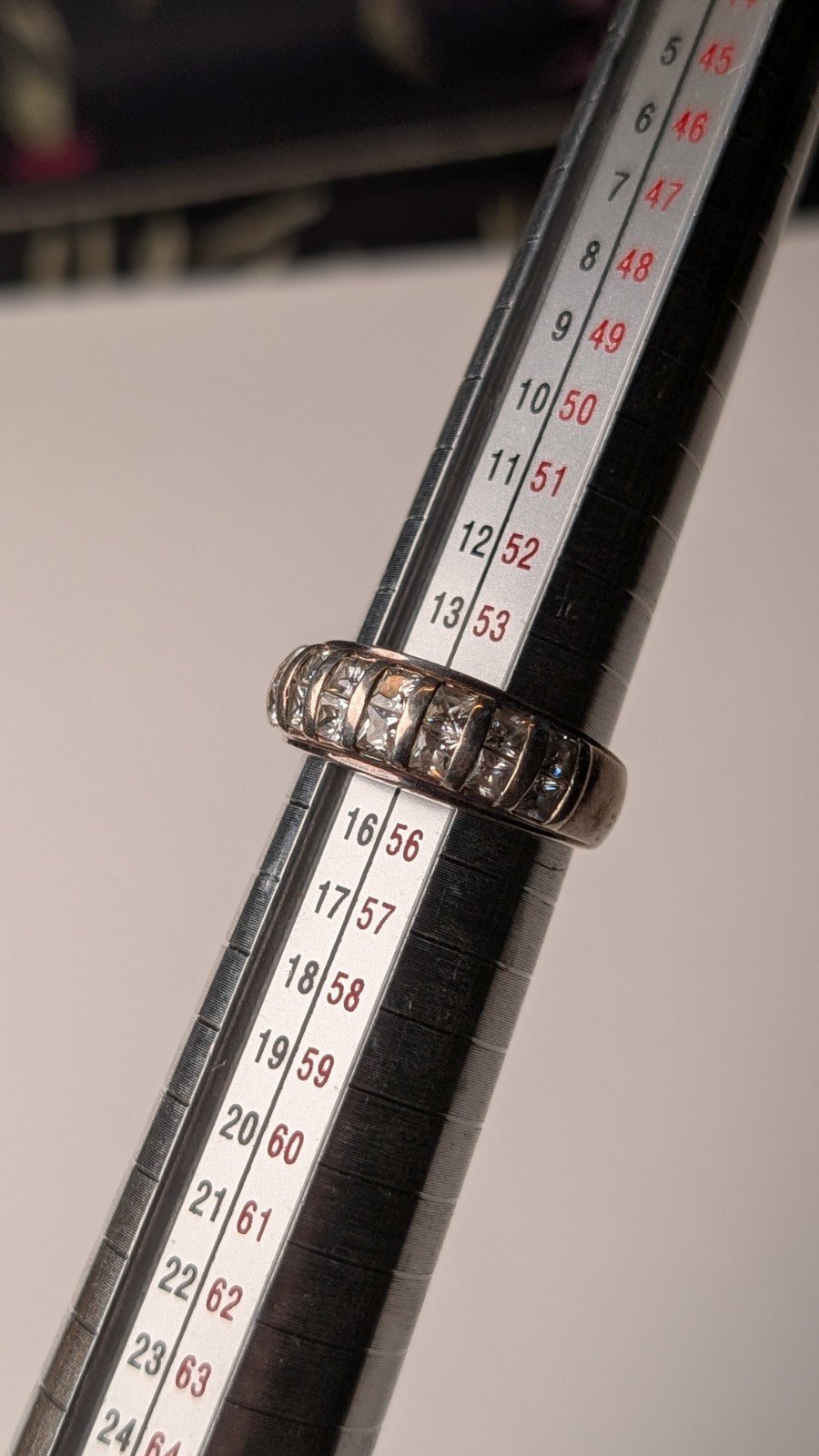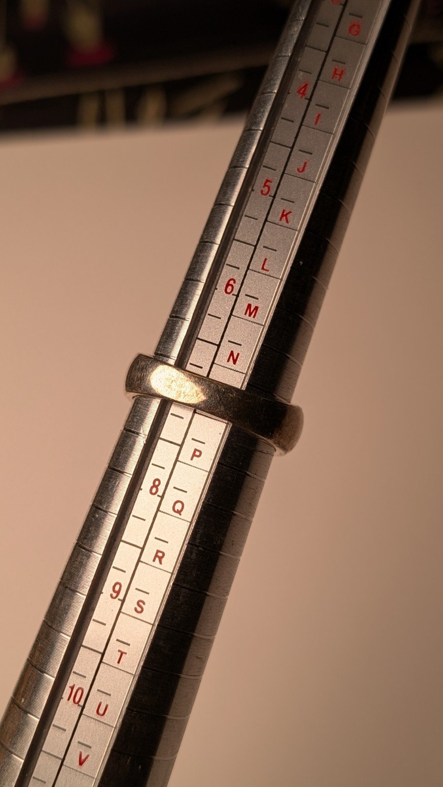 The band style ring is a size N 1/2, making it a perfect option for women who appreciate timeless and elegant jewellery pieces.