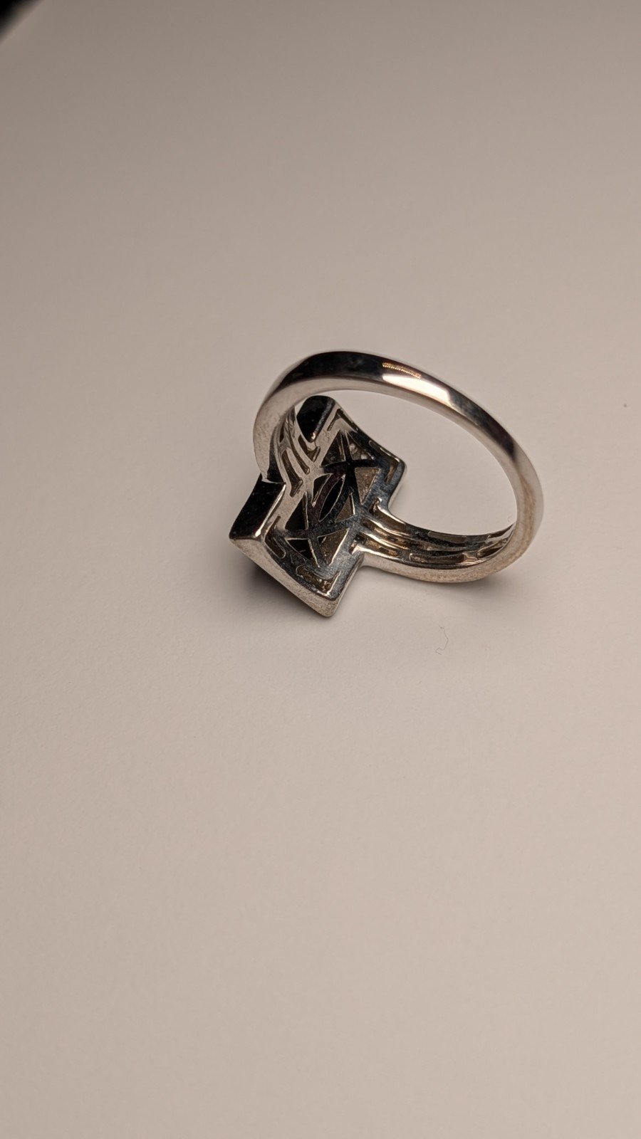 With a band style design and a size T, this ring is a versatile and eye-catching piece for any jewellery lover looking to add a unique and classic piece to their collection.