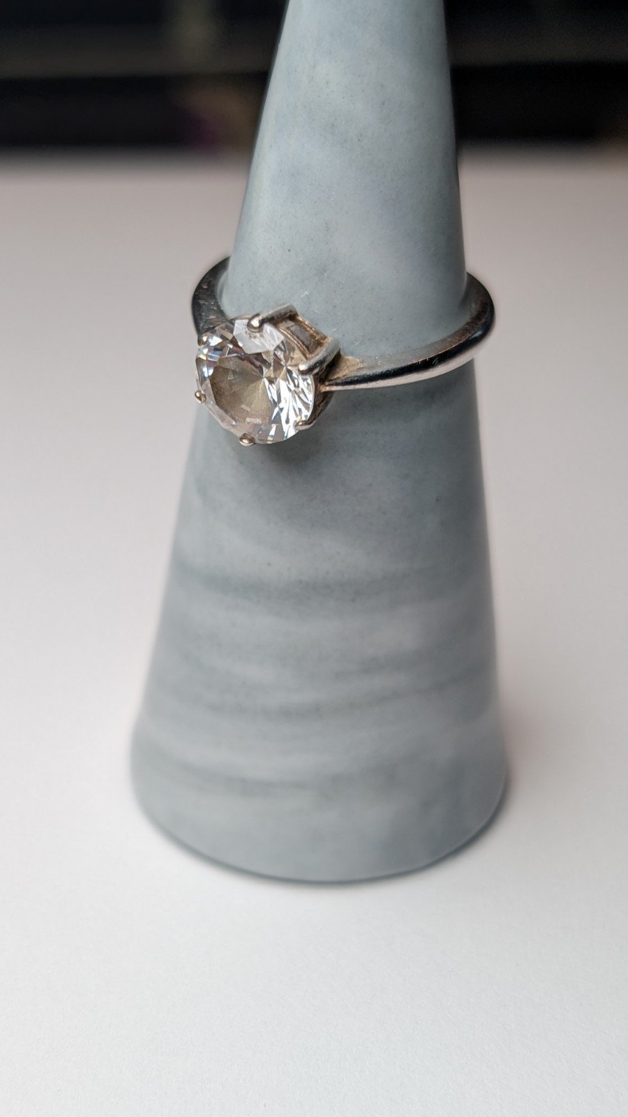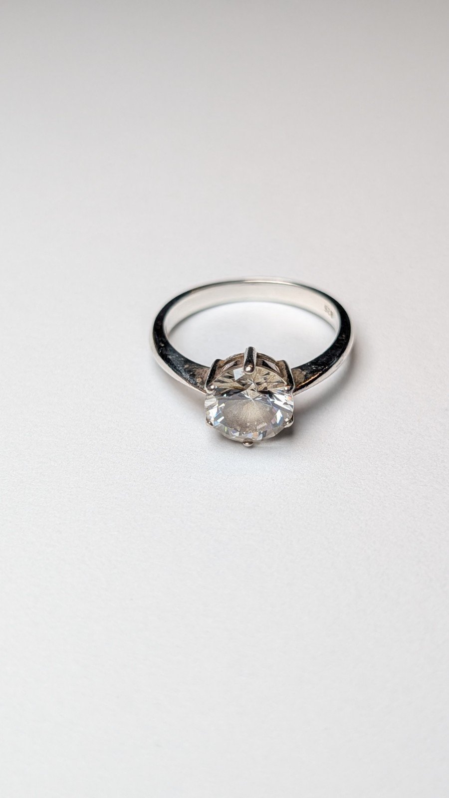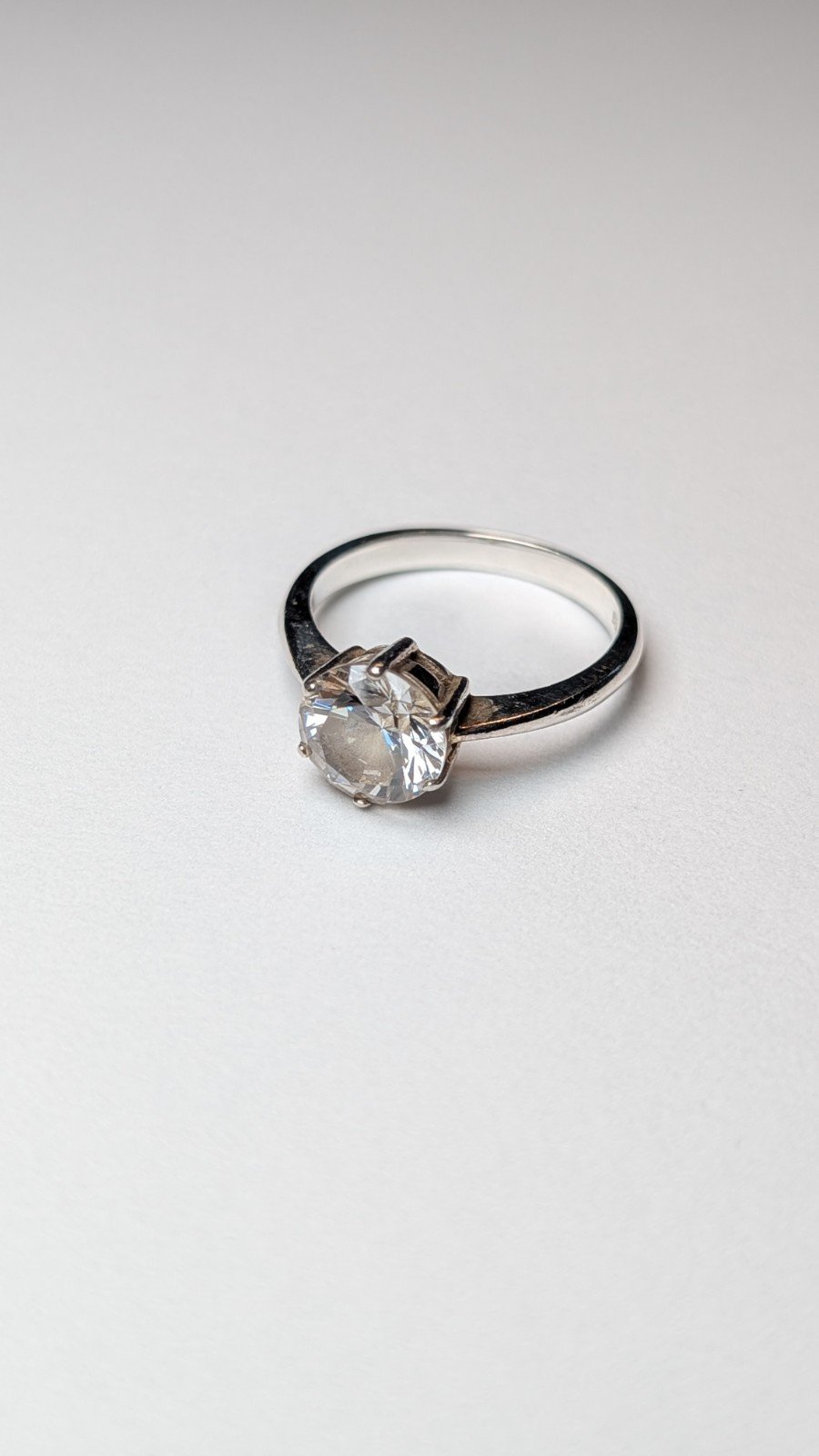 Be the first to review “Vintage Sterling Silver CZ Solitaire Clear Gemstone Ring | Size M 1/2 | 925”