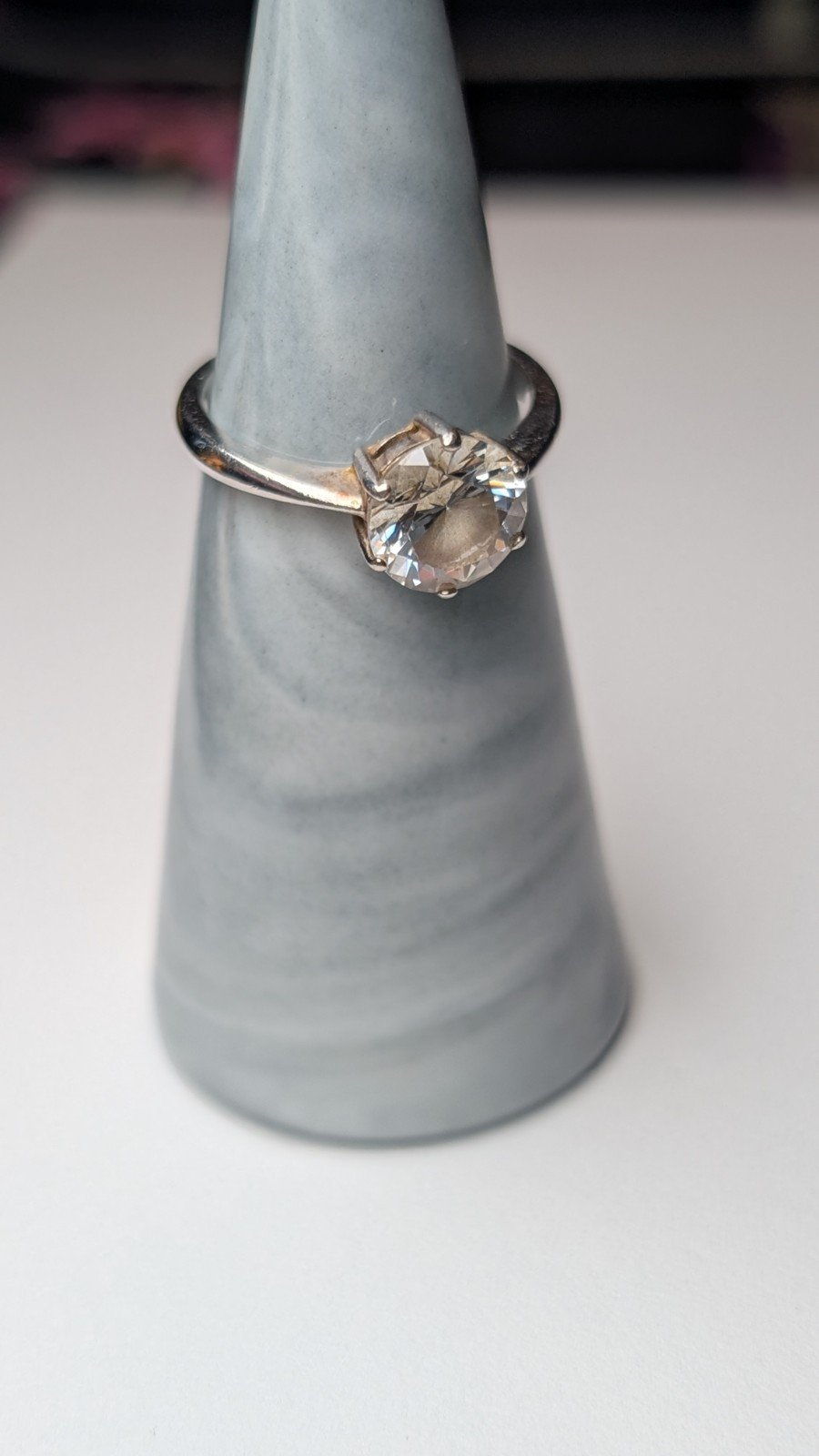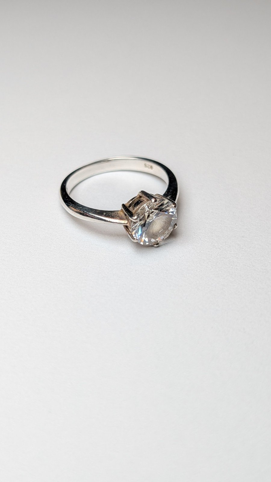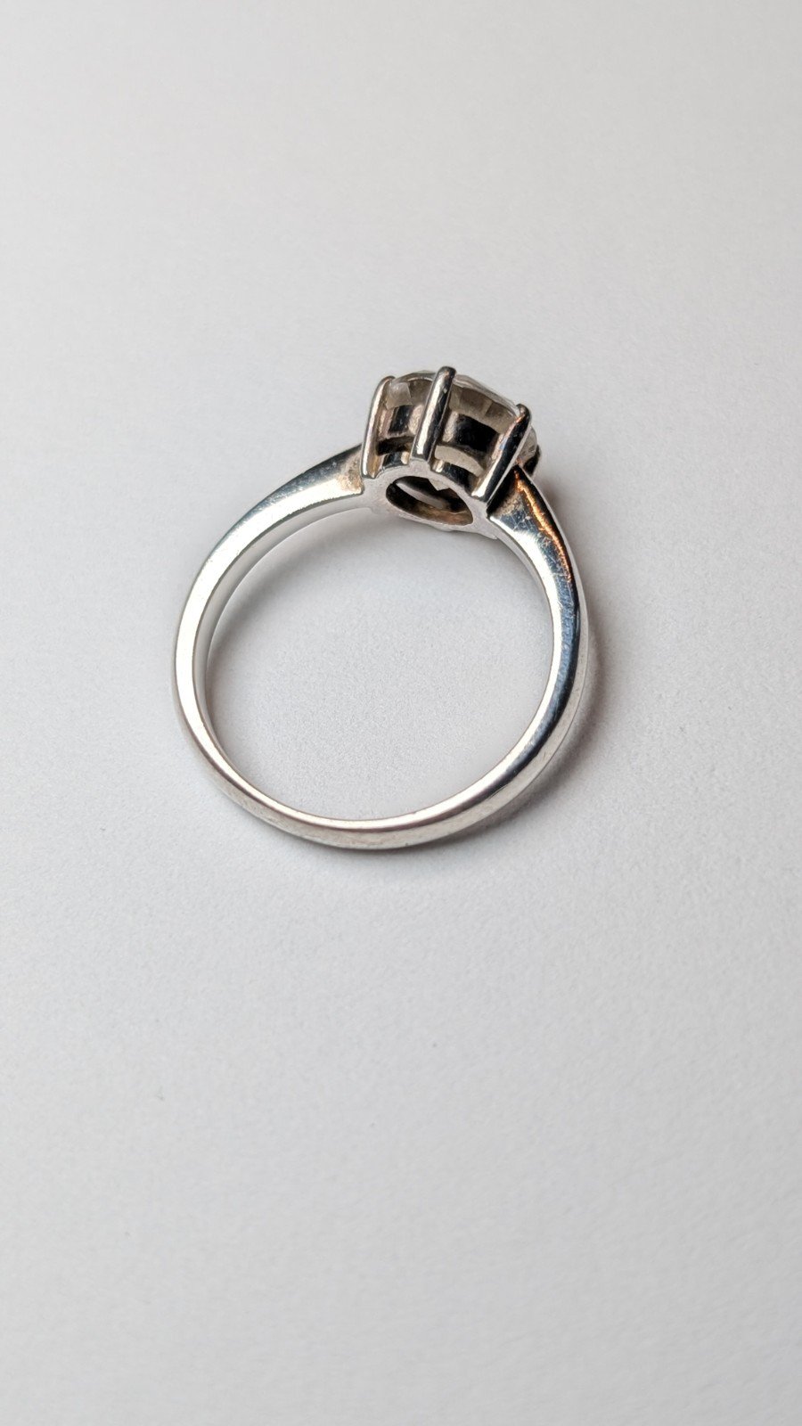 This Vintage Sterling Silver CZ Solitaire Clear Gemstone Ring in size M 1/2 is a timeless piece of jewellery for women.