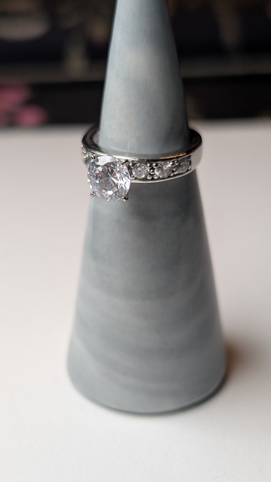 This Vintage Sterling Silver CZ Stone Ring in size J is a beautifully crafted piece of fine jewellery.