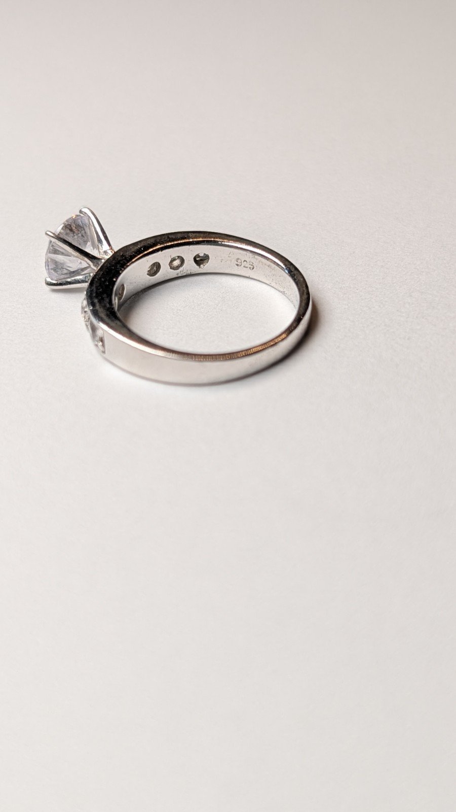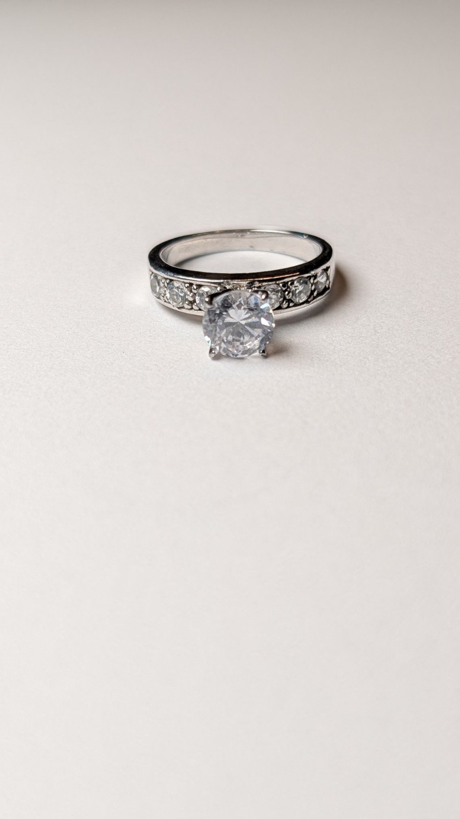 The round cubic zirconia stone set in 925 sterling silver creates a classic and elegant look.