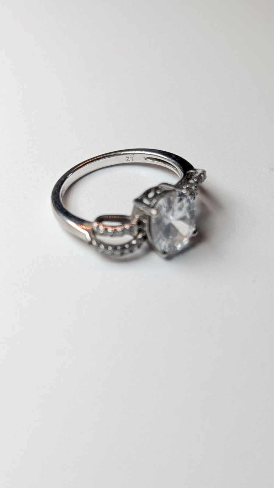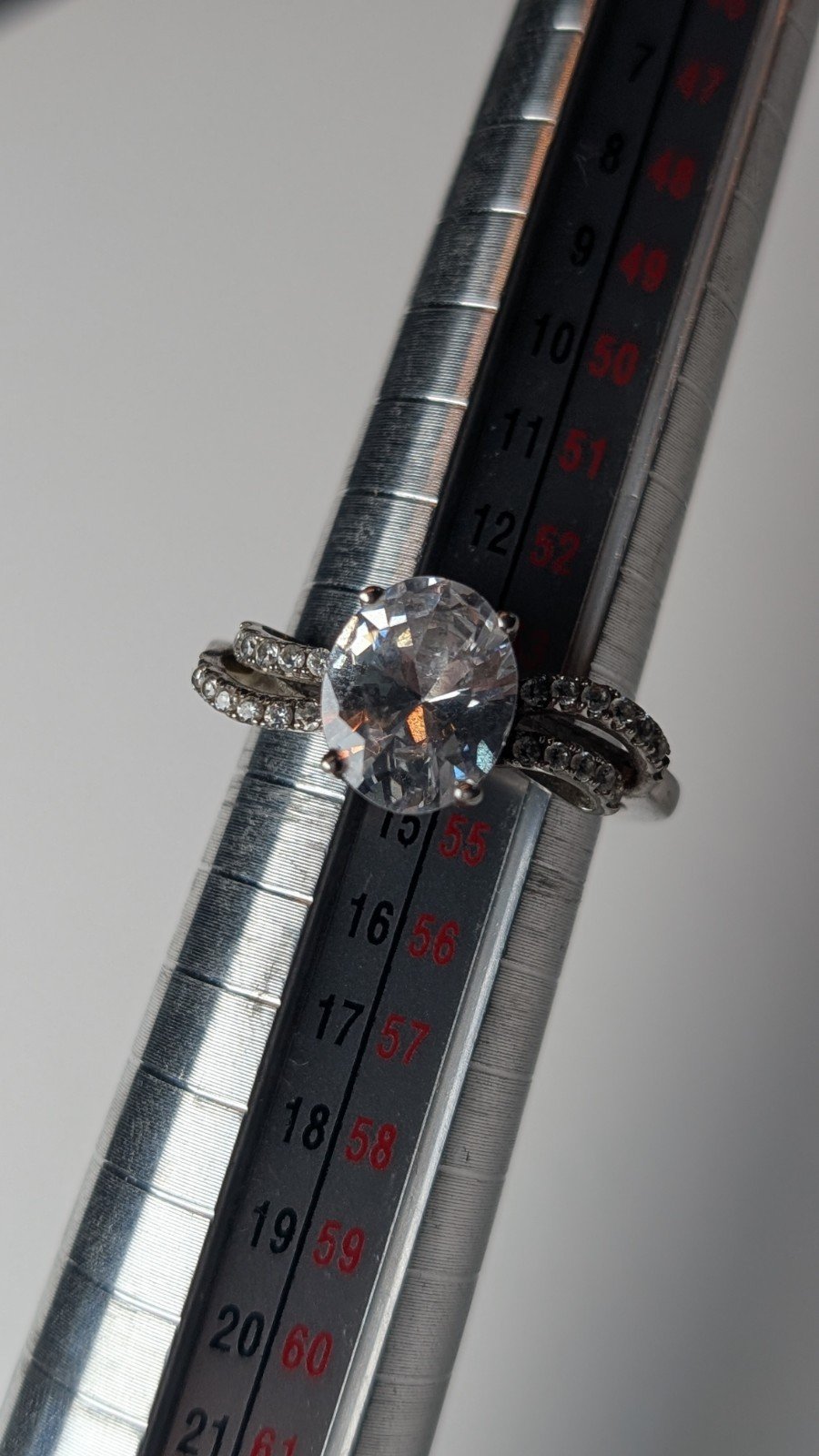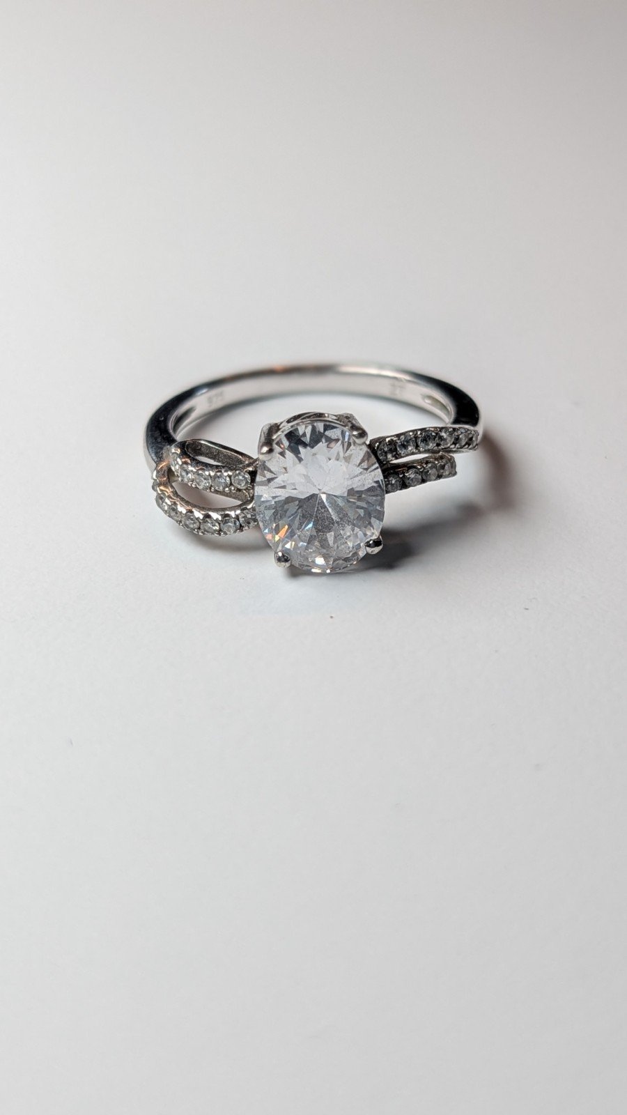 The round cubic zirconia stone set in 925 sterling silver creates a classic and elegant look. There is one small cz stone missing on the outter edge, please see pictures.