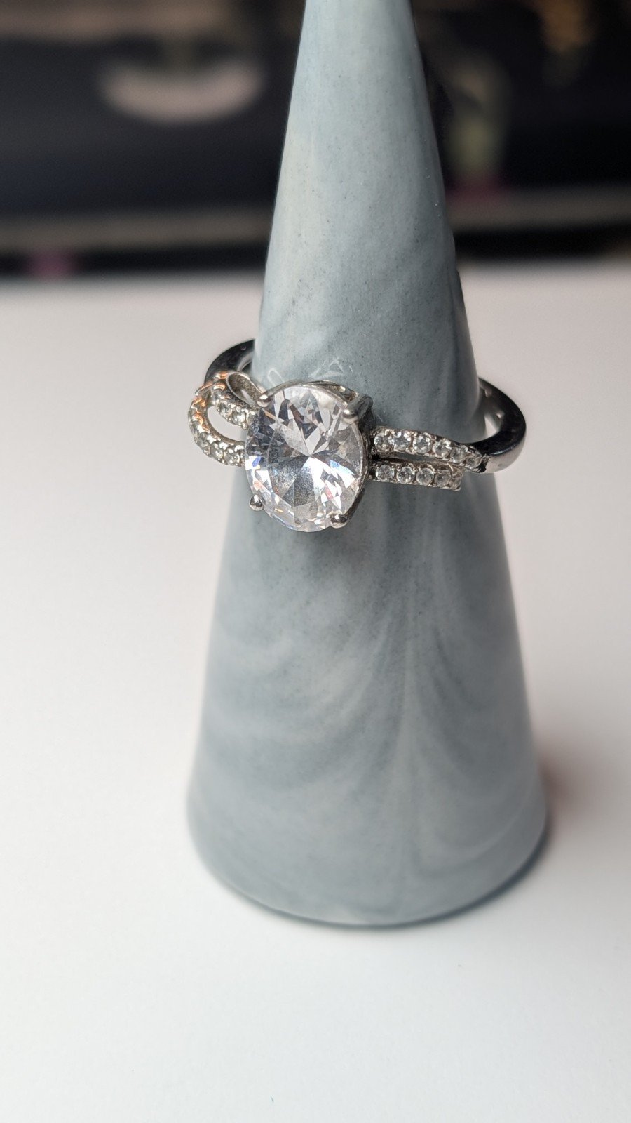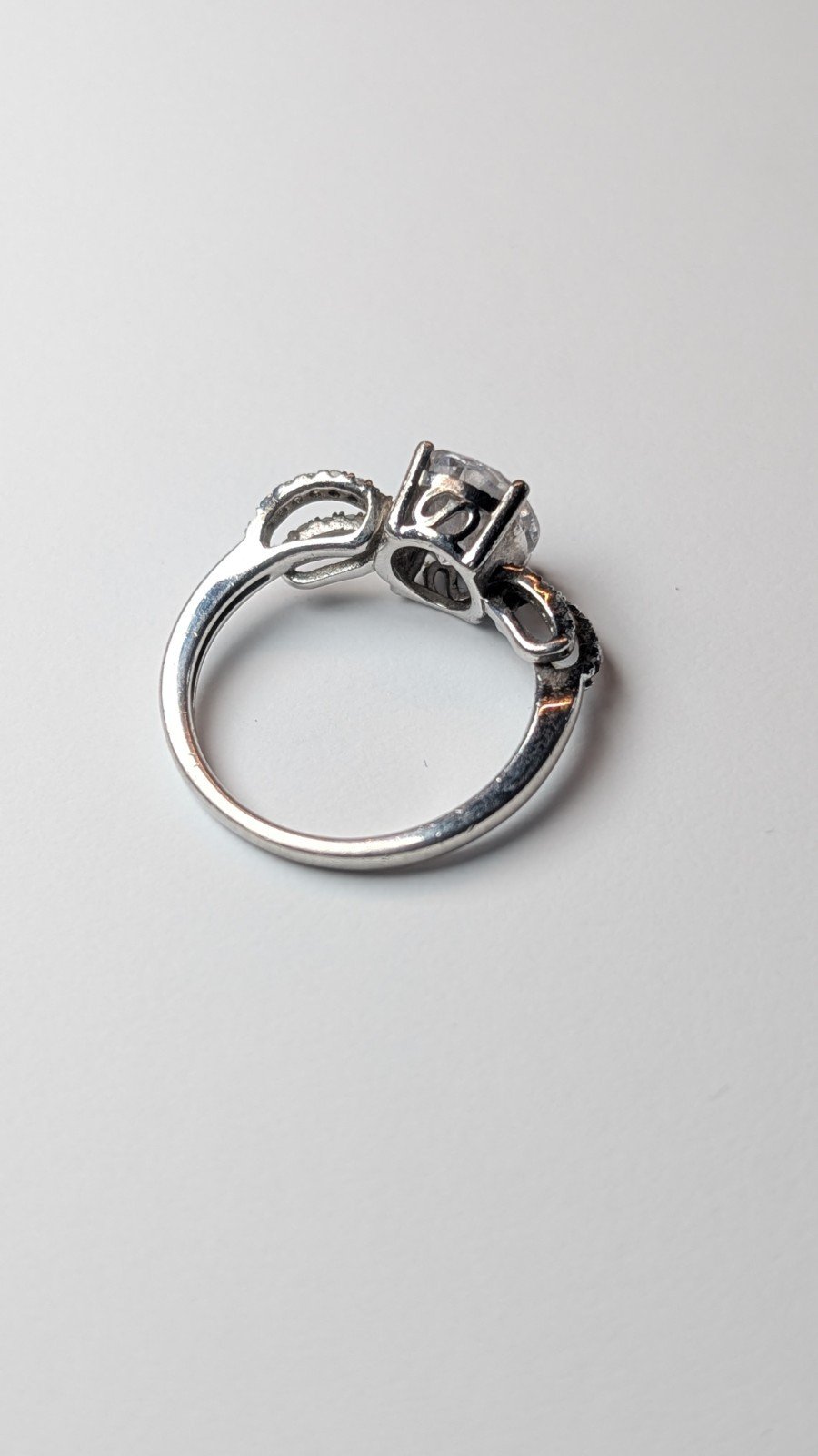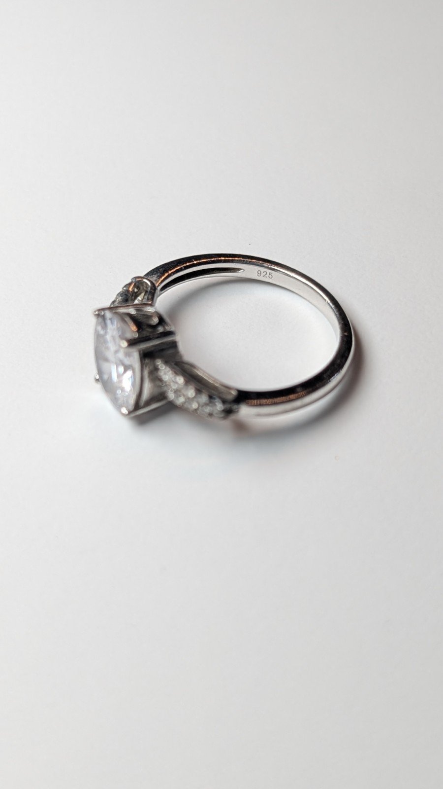 The round cubic zirconia stone set in 925 sterling silver creates a classic and elegant look. There is one small cz stone missing on the outter edge, please see pictures.