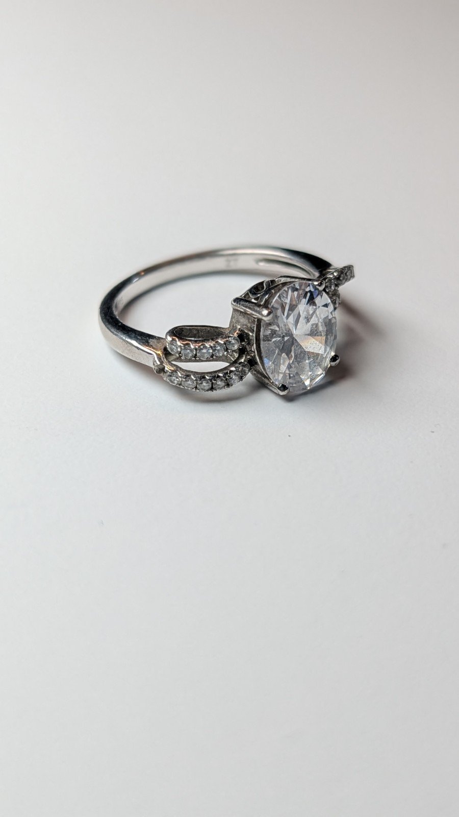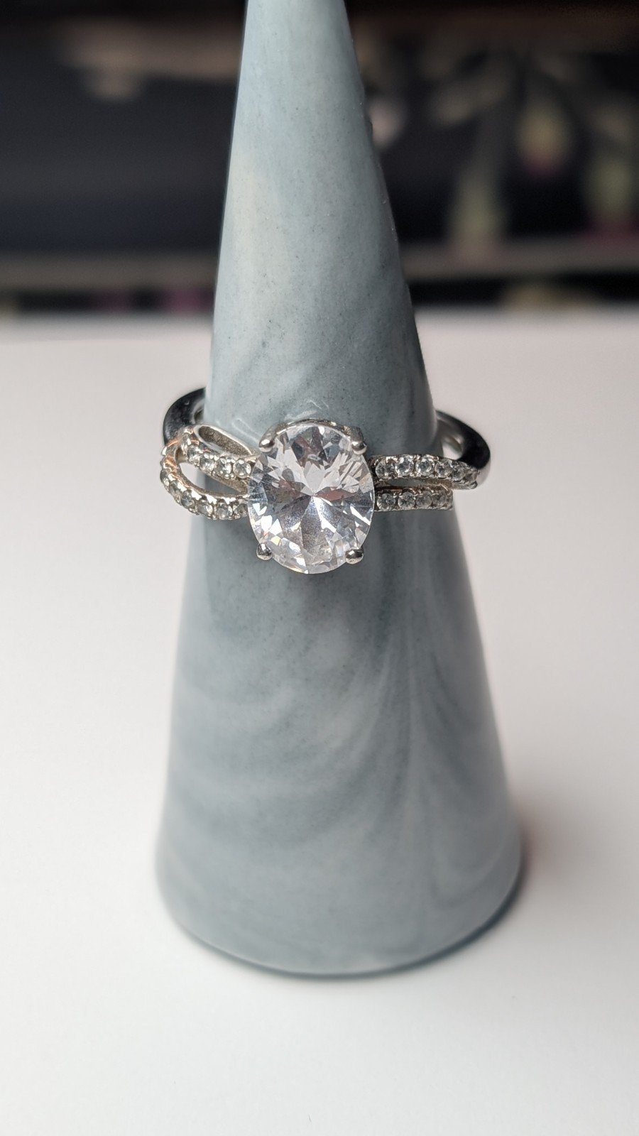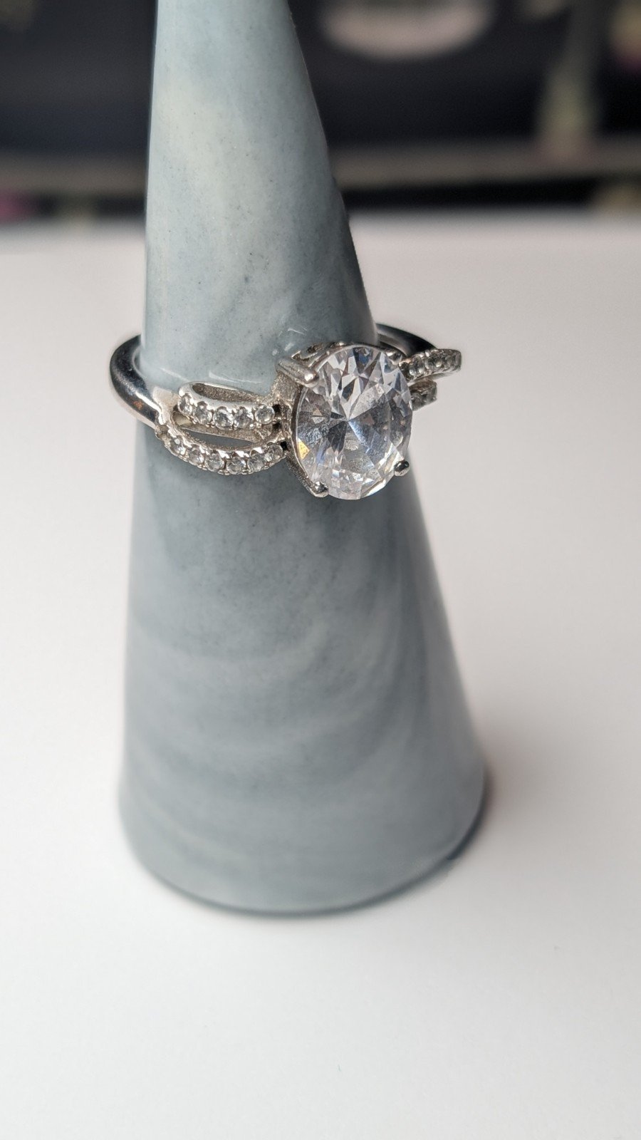 This Vintage Sterling Silver CZ Stone Ring in size N is a beautifully crafted piece of fine jewellery.