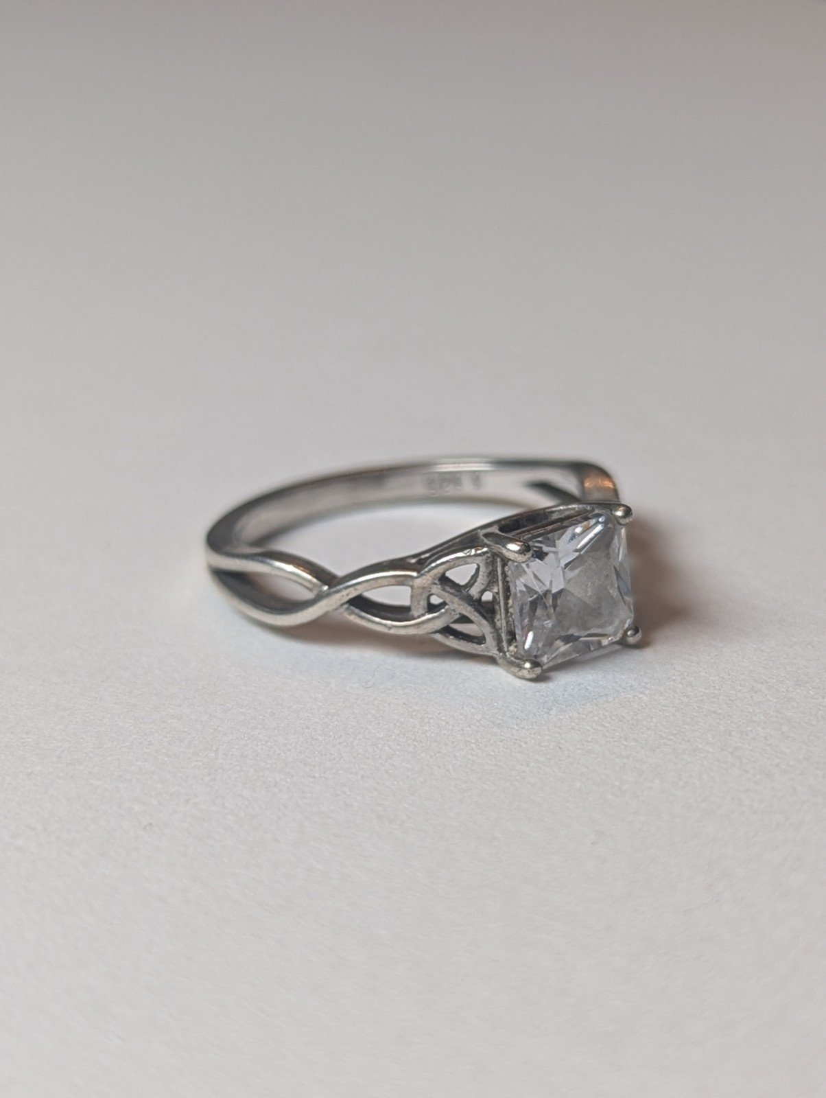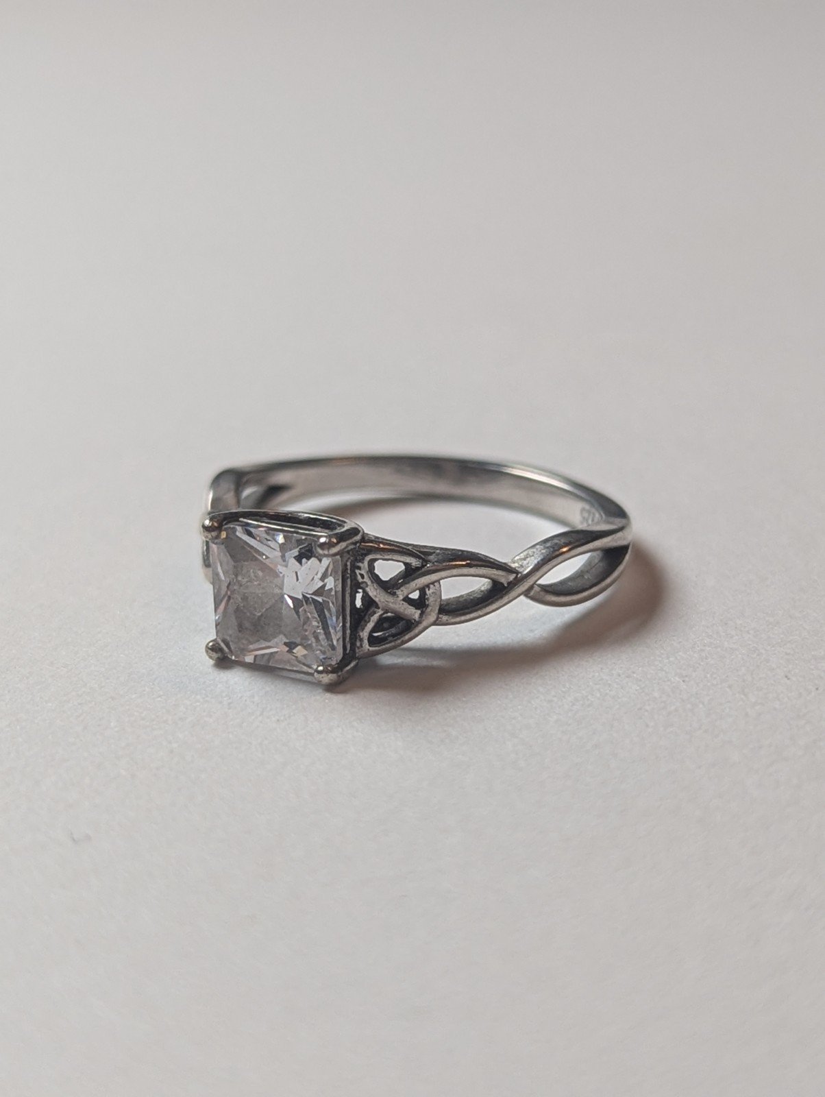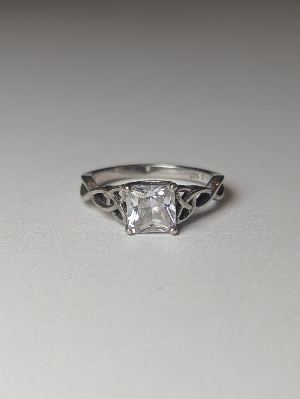 This vintage Sterling Silver CZ Stone Clear Gemstone Ring in size L 1/2 is a beautiful piece of jewellery that exudes elegance and sophistication.
