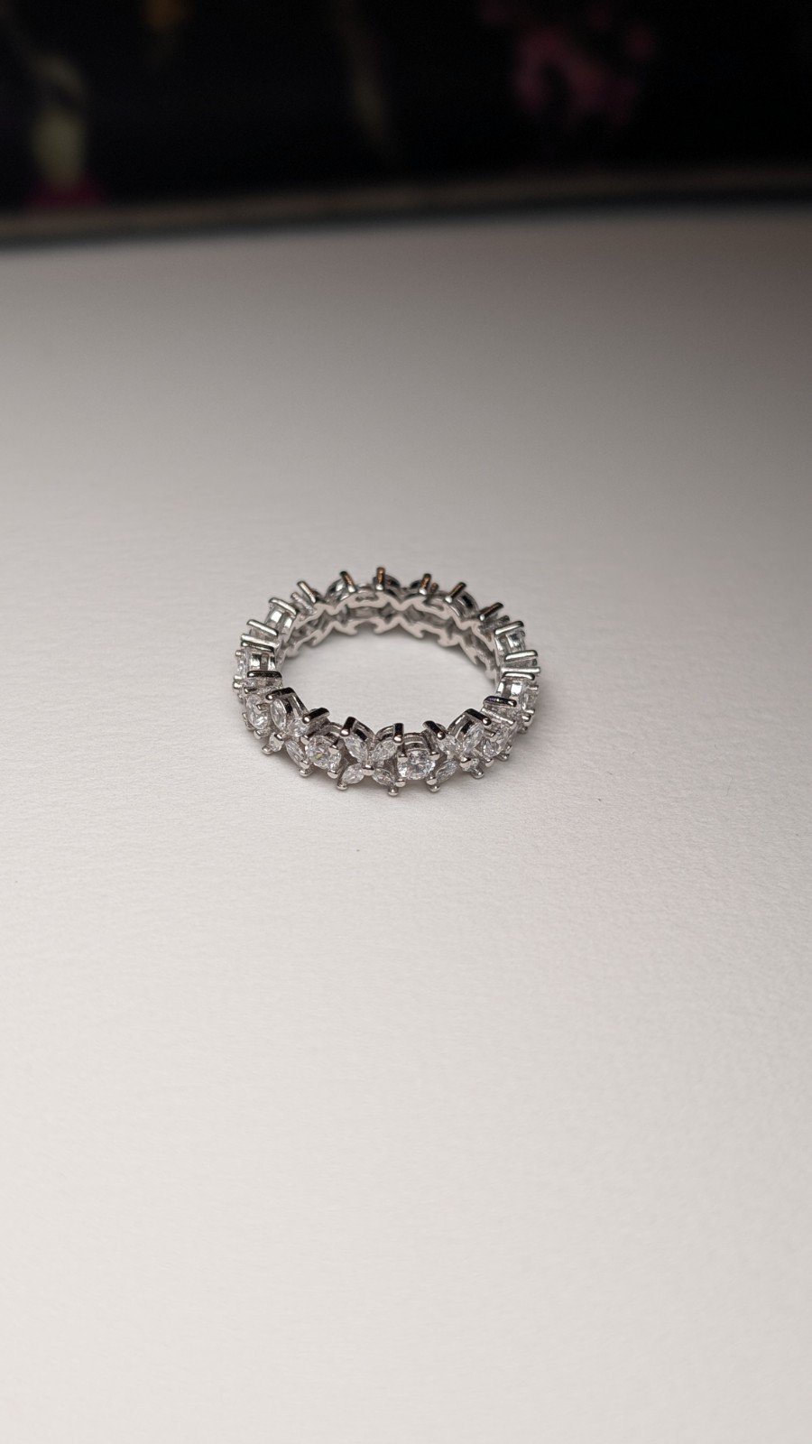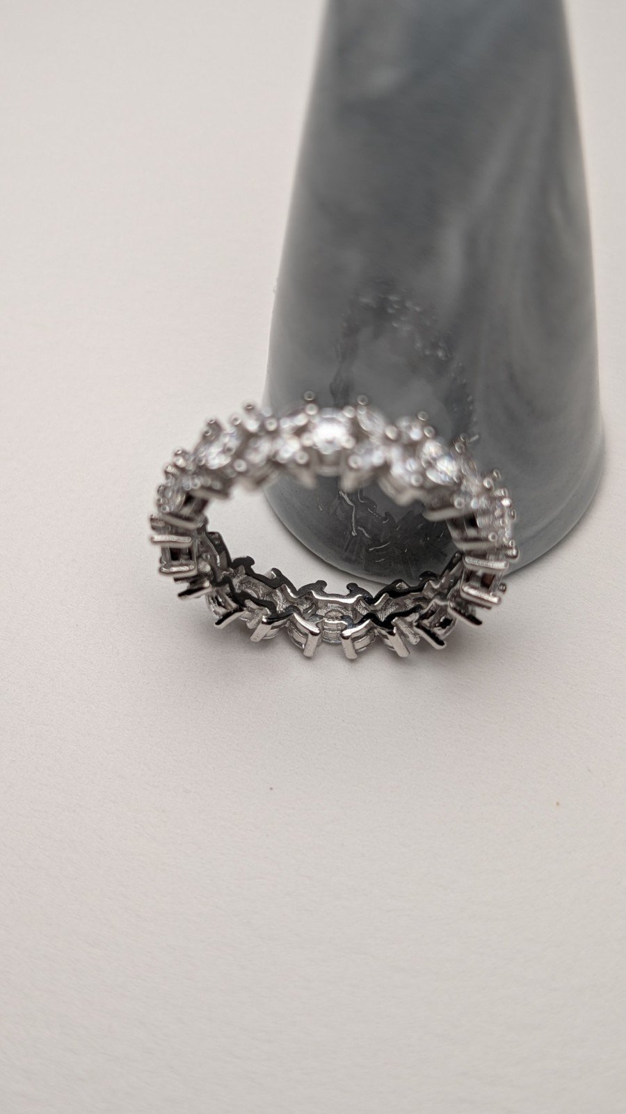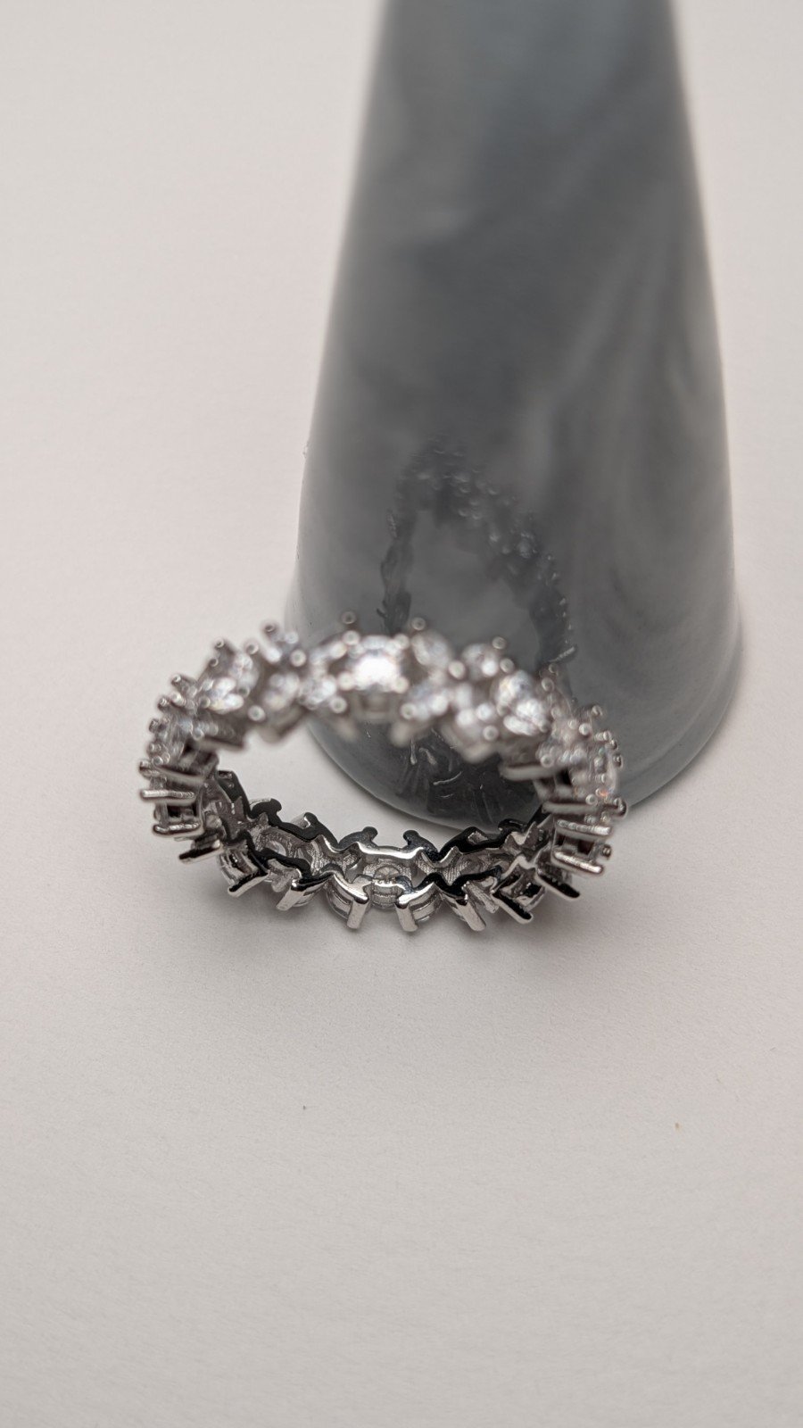 Vintage Sterling Silver CZ Stones Flower Eternity Ring | S 1/2 | 925 Silver