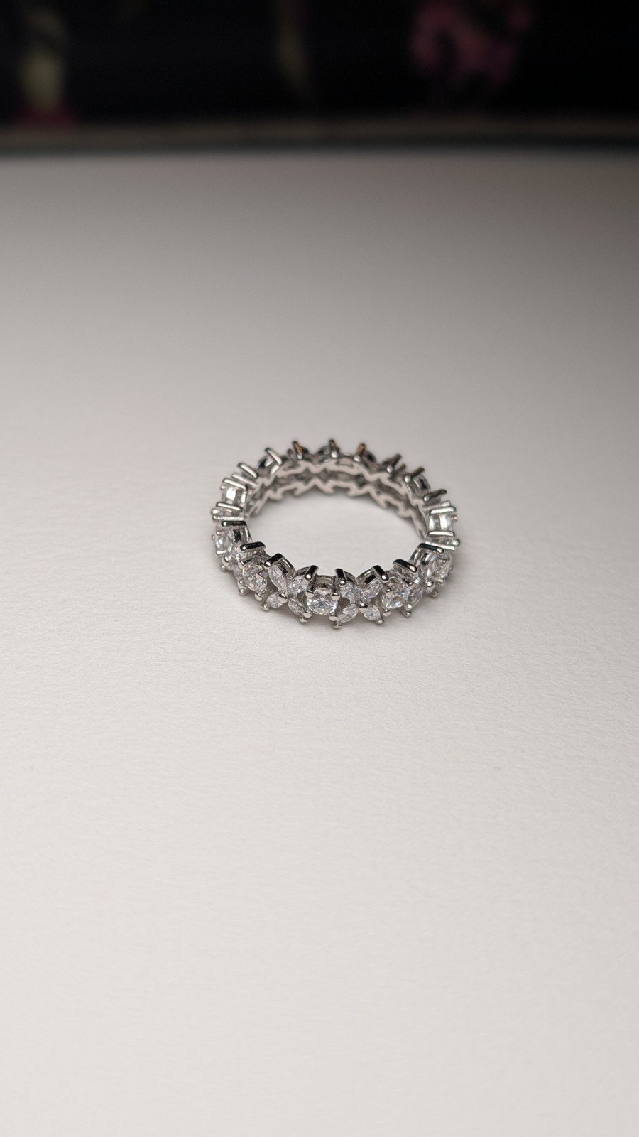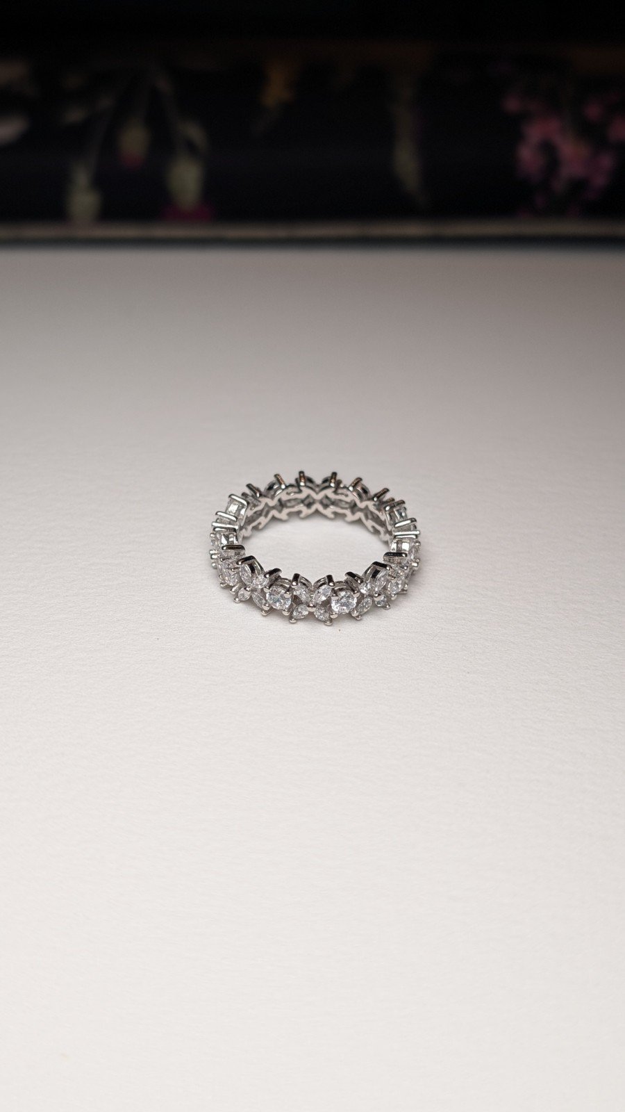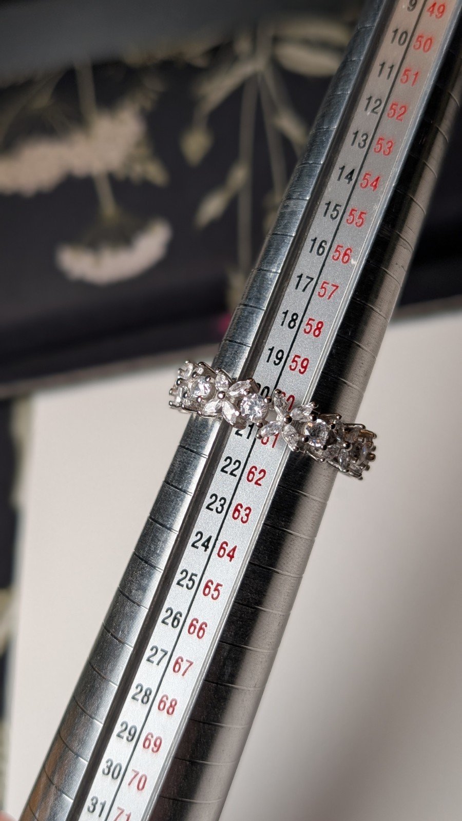 Vintage Sterling Silver CZ Stones Flower Eternity Ring | S 1/2 | 925 Silver
