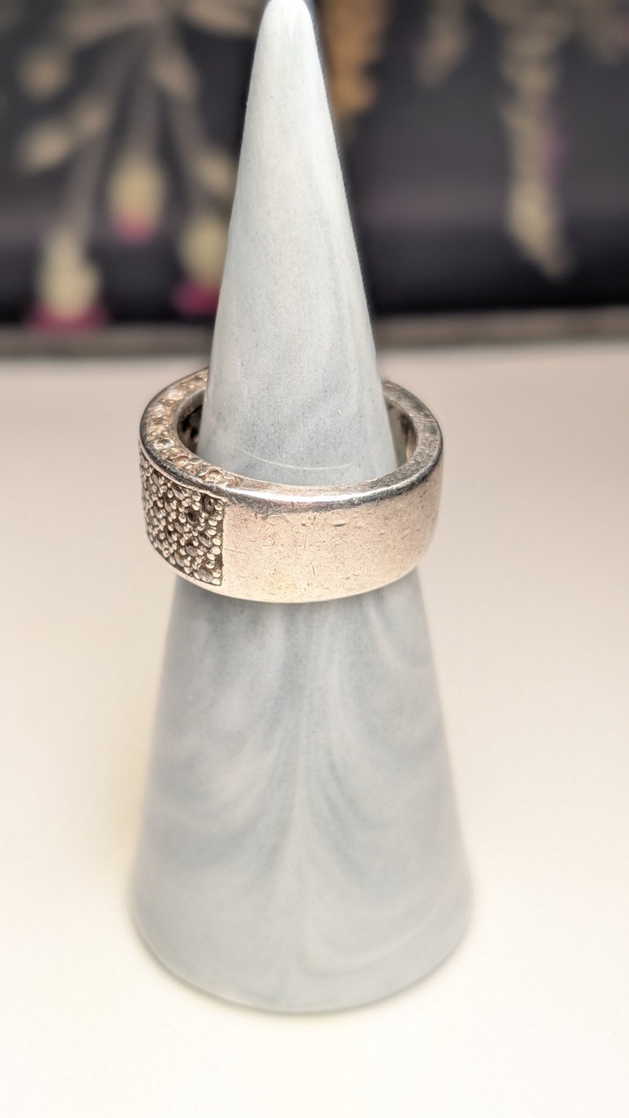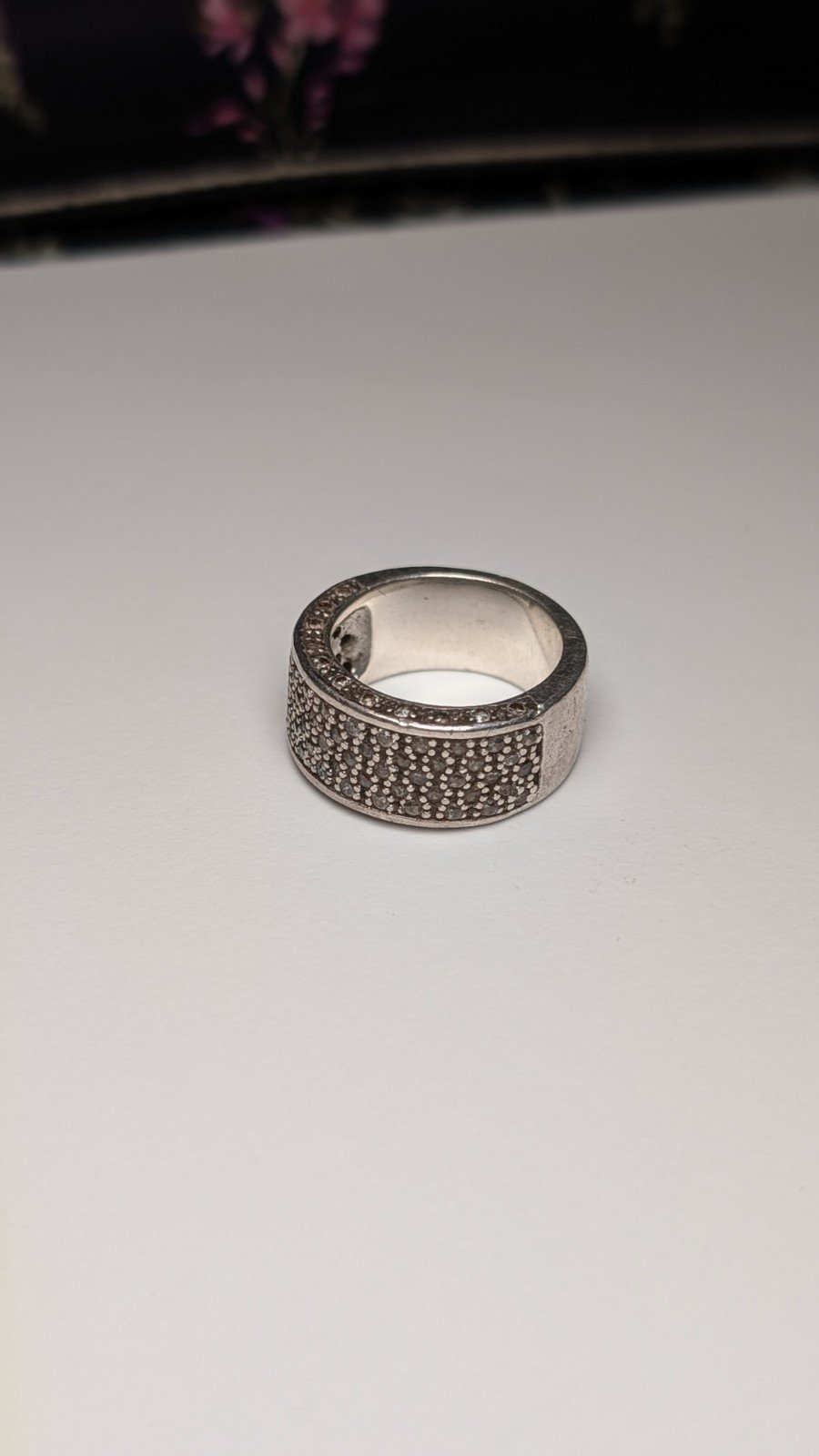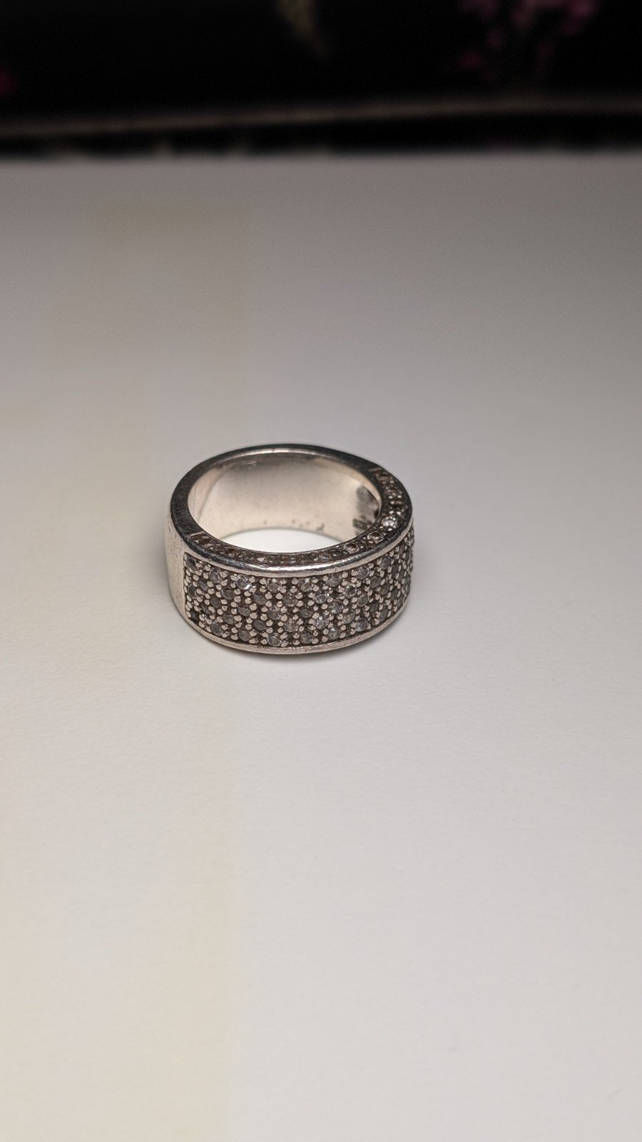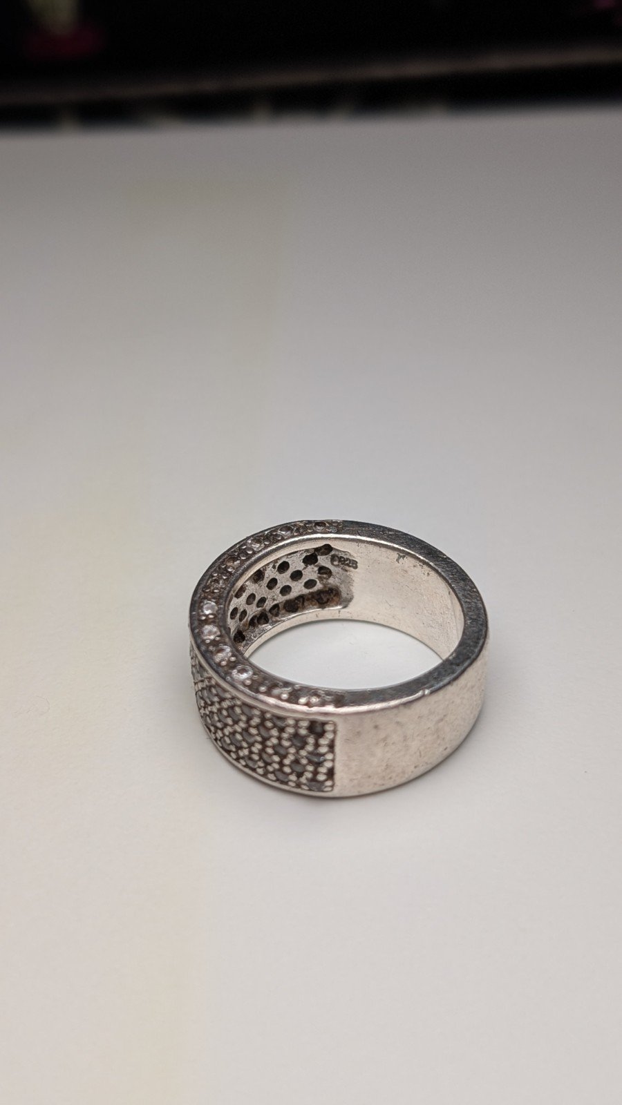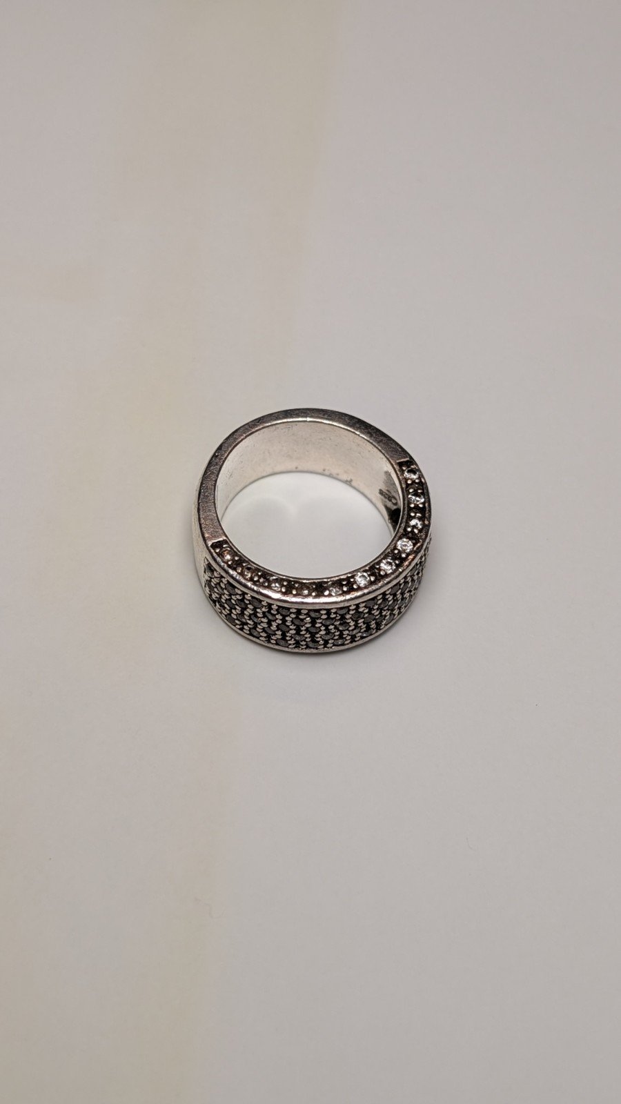 Vintage Sterling Silver CZ Thick Band Ring | Size M | 10.6g | 925 Silver