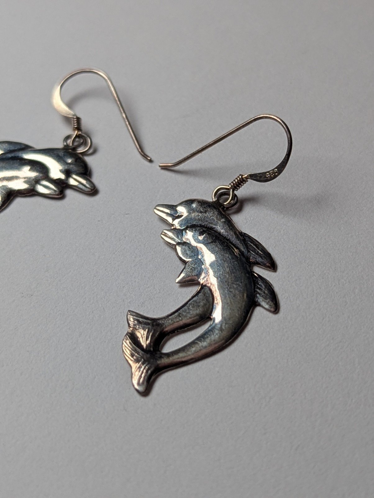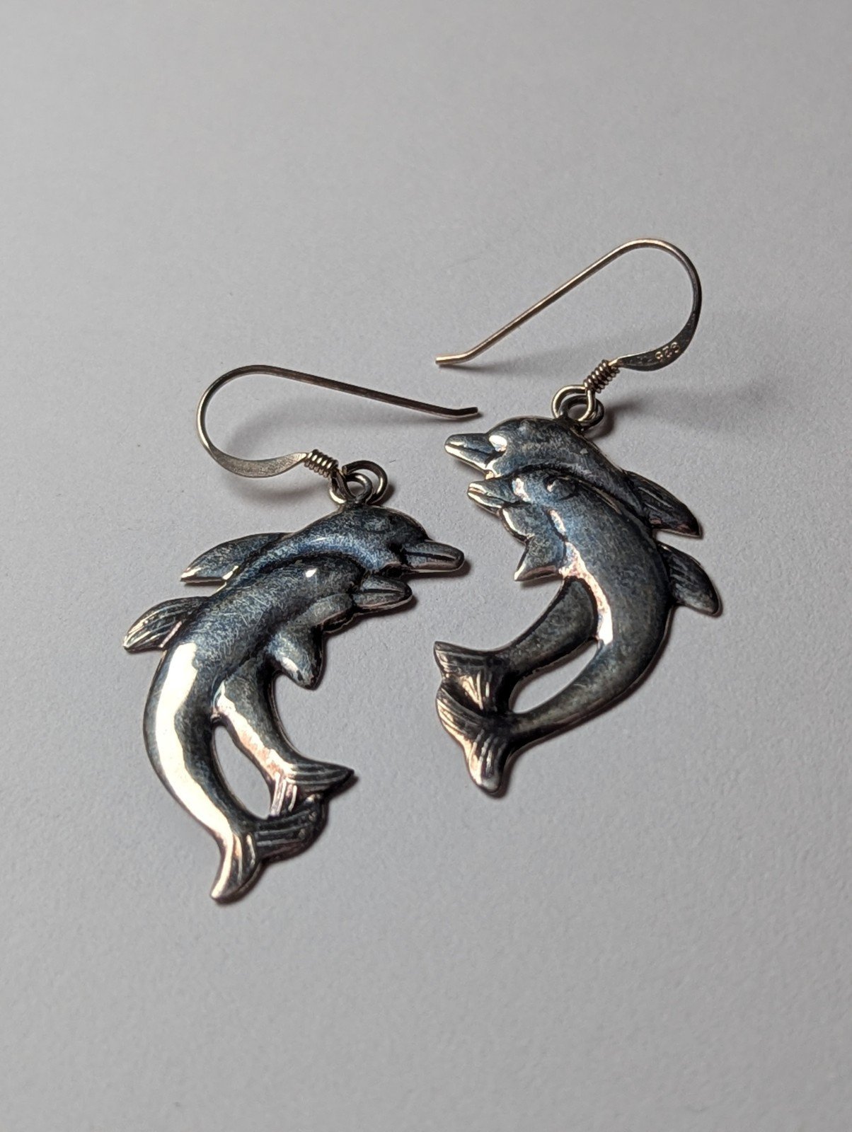 Vintage Sterling Silver Dolphins Earrings | 925 Silver Earrings