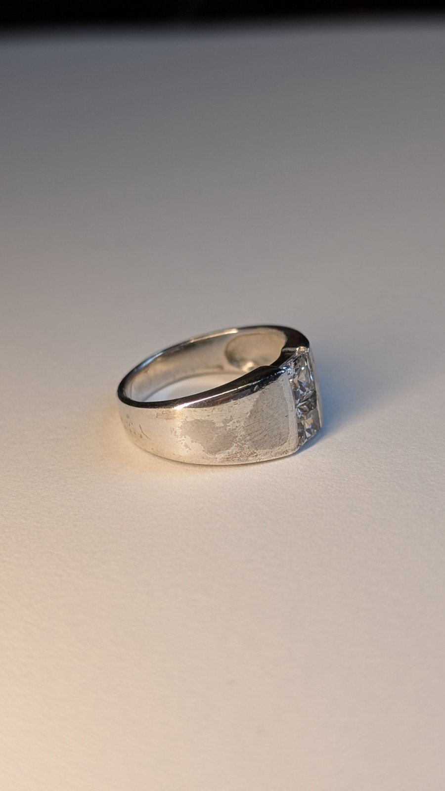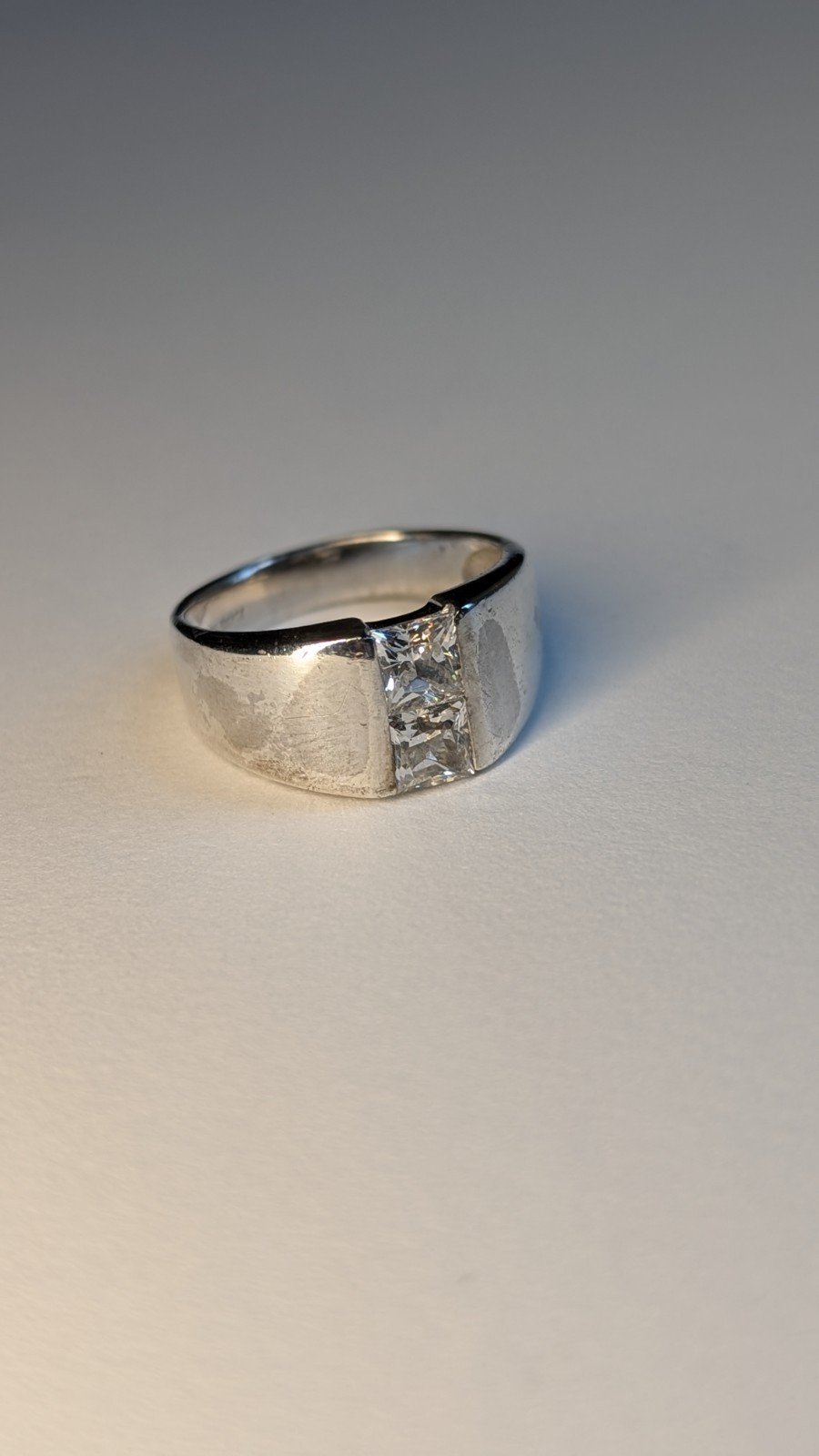 This vintage sterling silver ring features a unique tension style setting, making it a stylish and elegant choice for any jewellery lover.