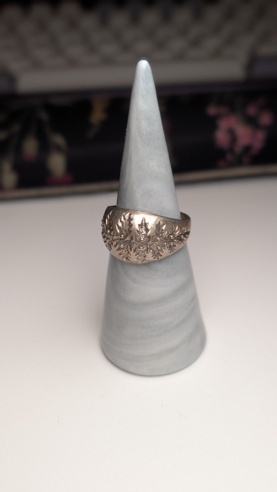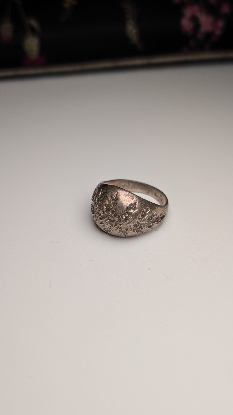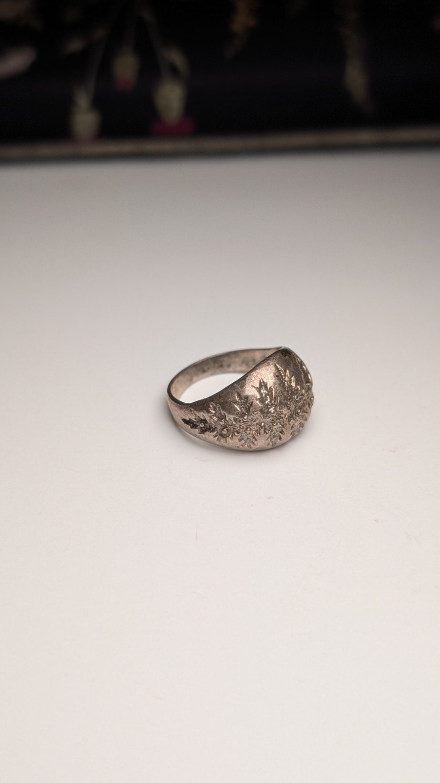 Vintage Sterling Silver Etched Floral Design Ring | Size Q | 925 Silver