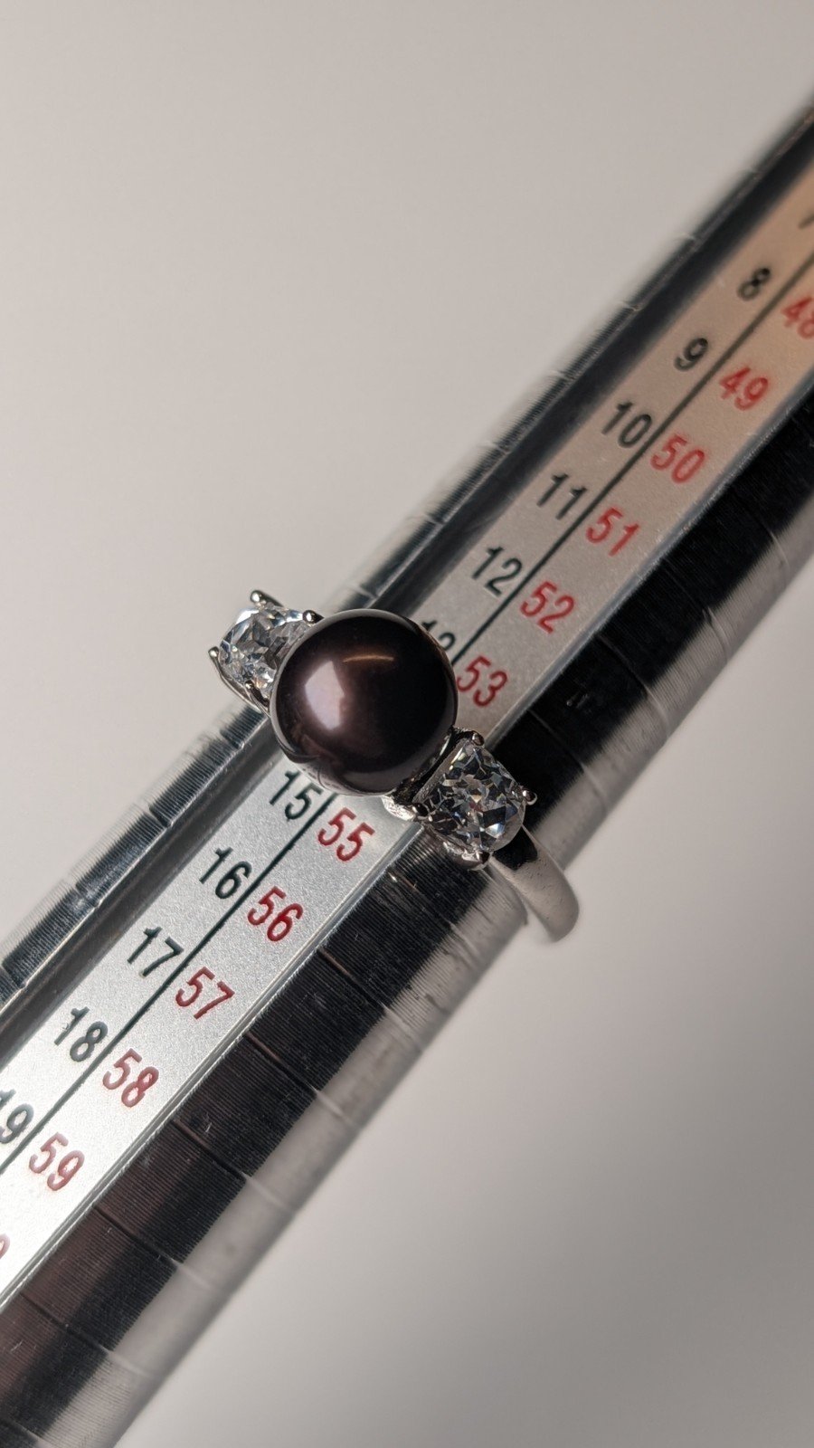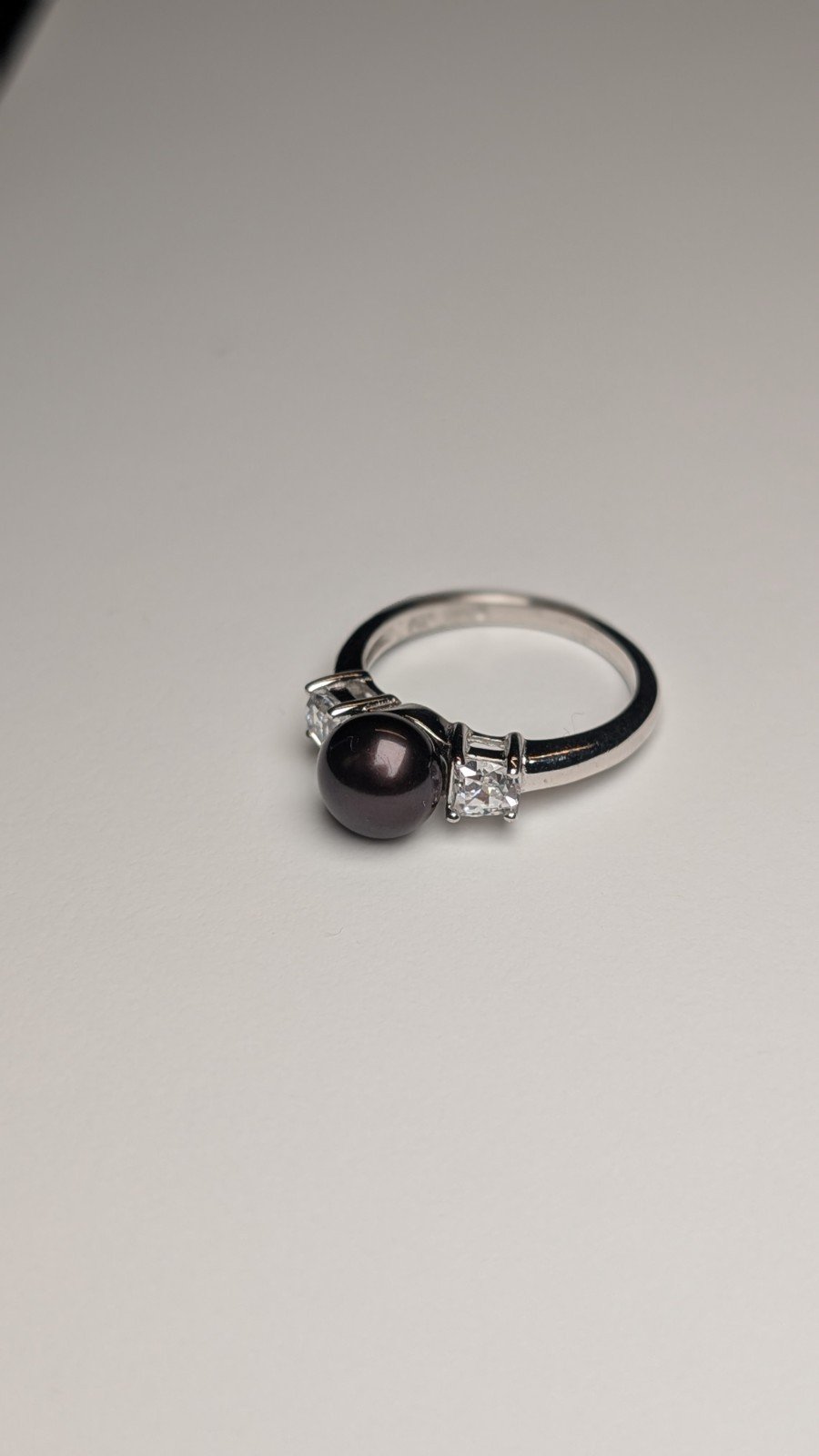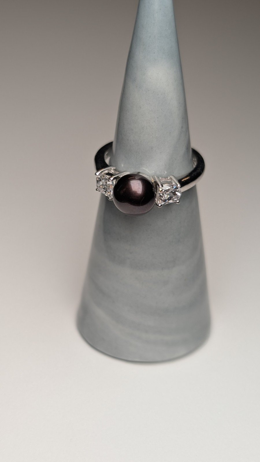 This vintage sterling silver ring is a stunning piece of women’s jewellery, featuring a faux pearl and gemstone design set in 925 silver.