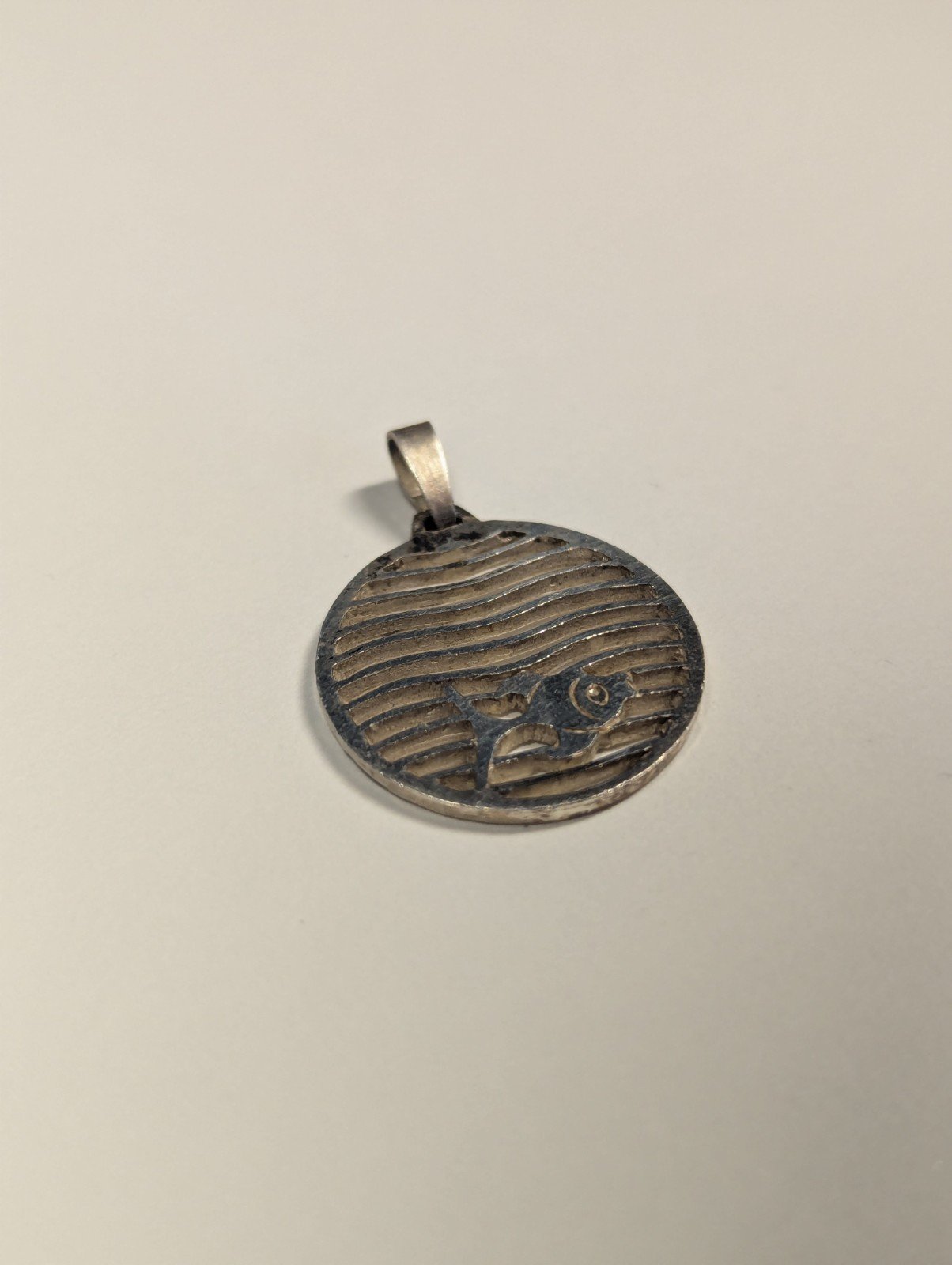 Vintage Sterling Silver Fish And Ocean Pendant | 925 Silver