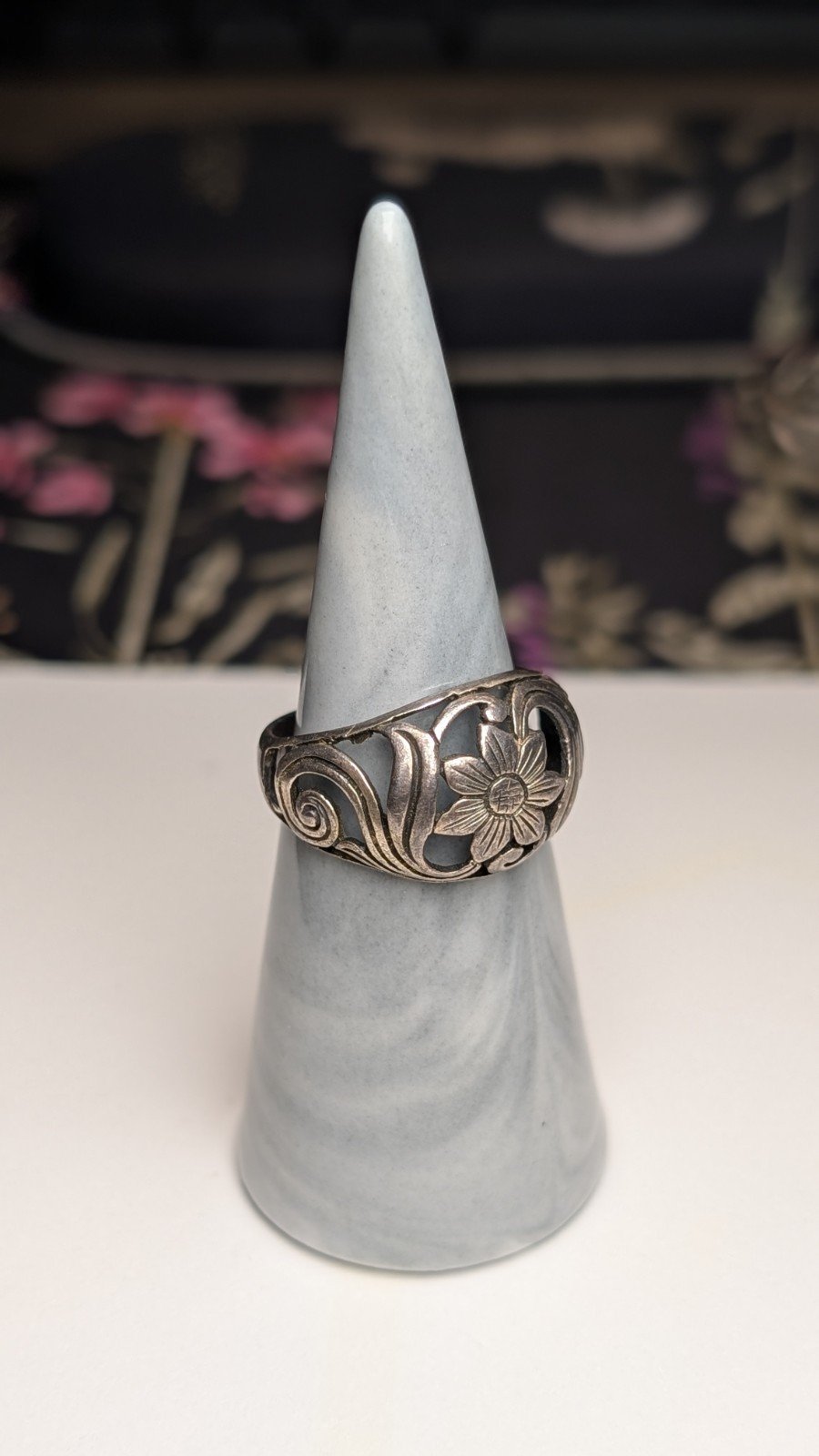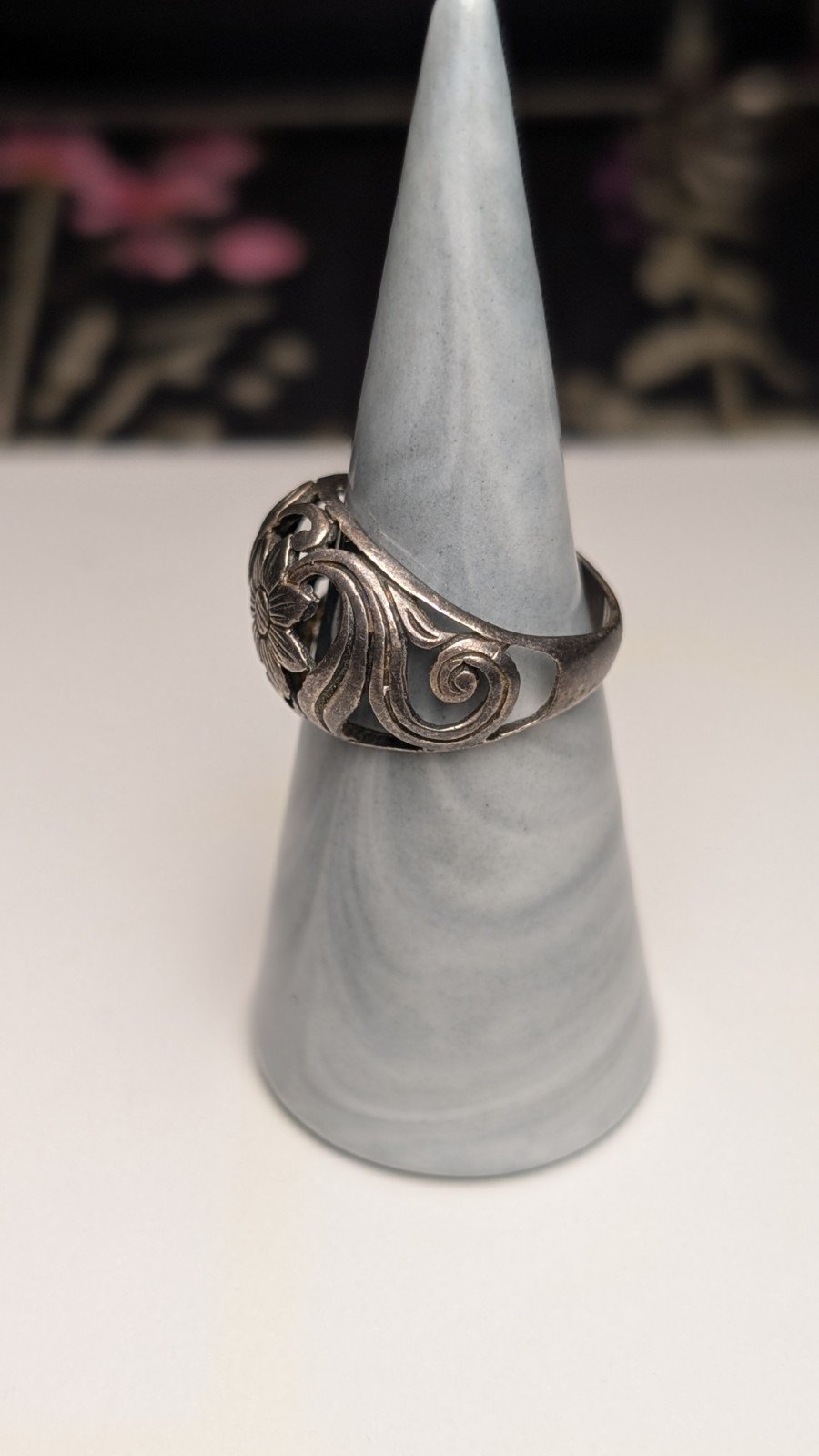 Be the first to review “Vintage Sterling Silver Flower Floral Swirl Dome Ring | P 1/2 | 925 Silver”