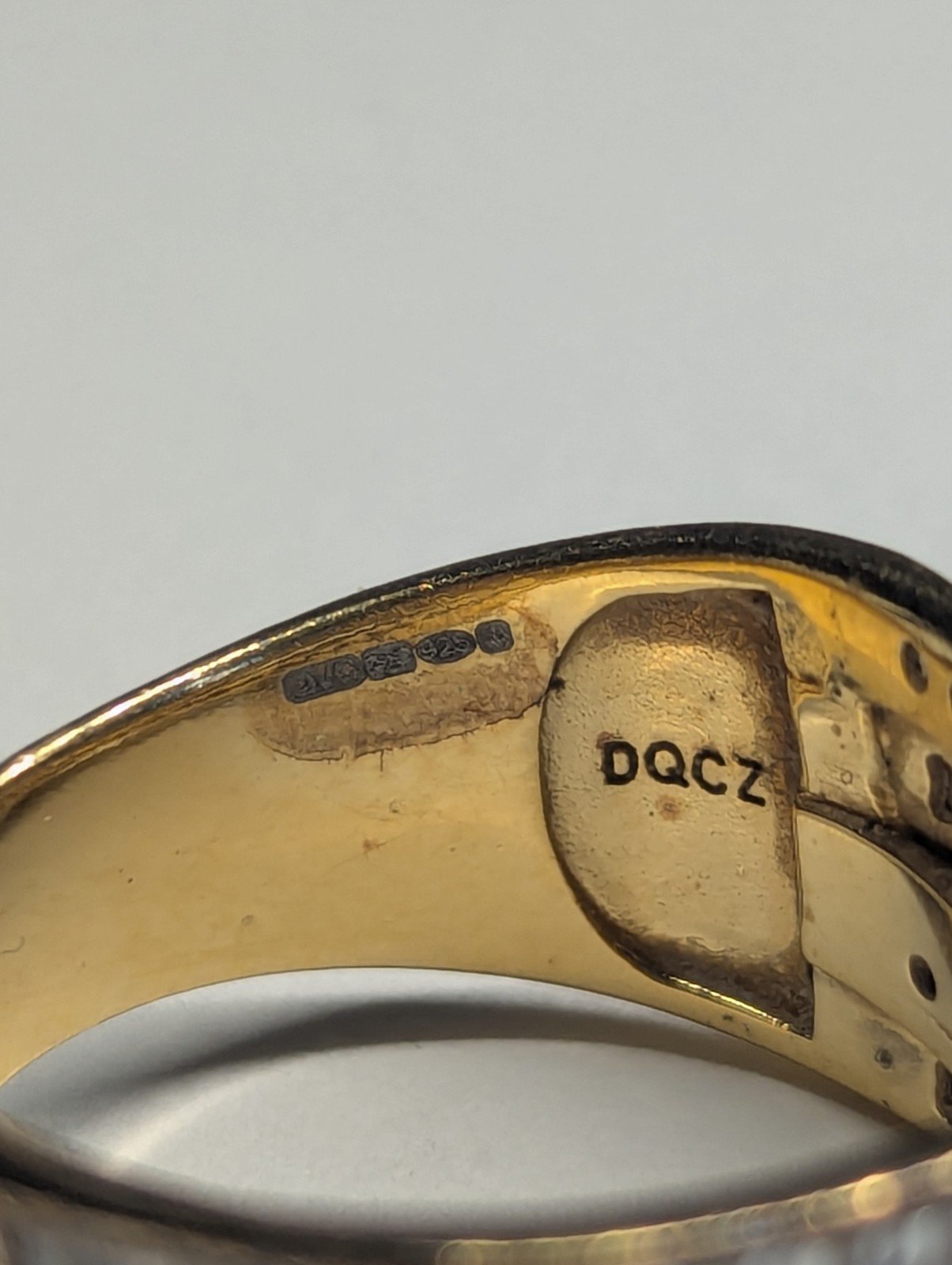 Vintage Sterling Silver Gold Tone DQCZ Ring | Size P | 925 Silver