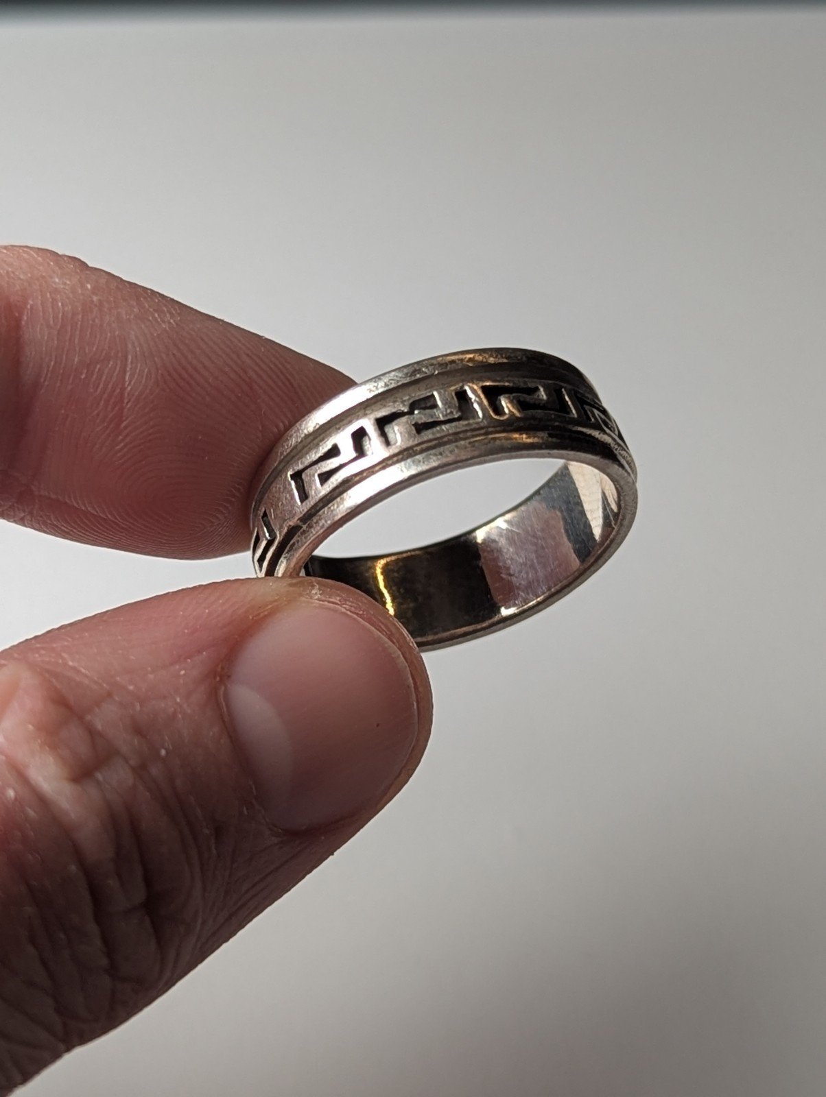 Vintage Sterling Silver Greek Key Spinner Ring | Size V | 925 Silver