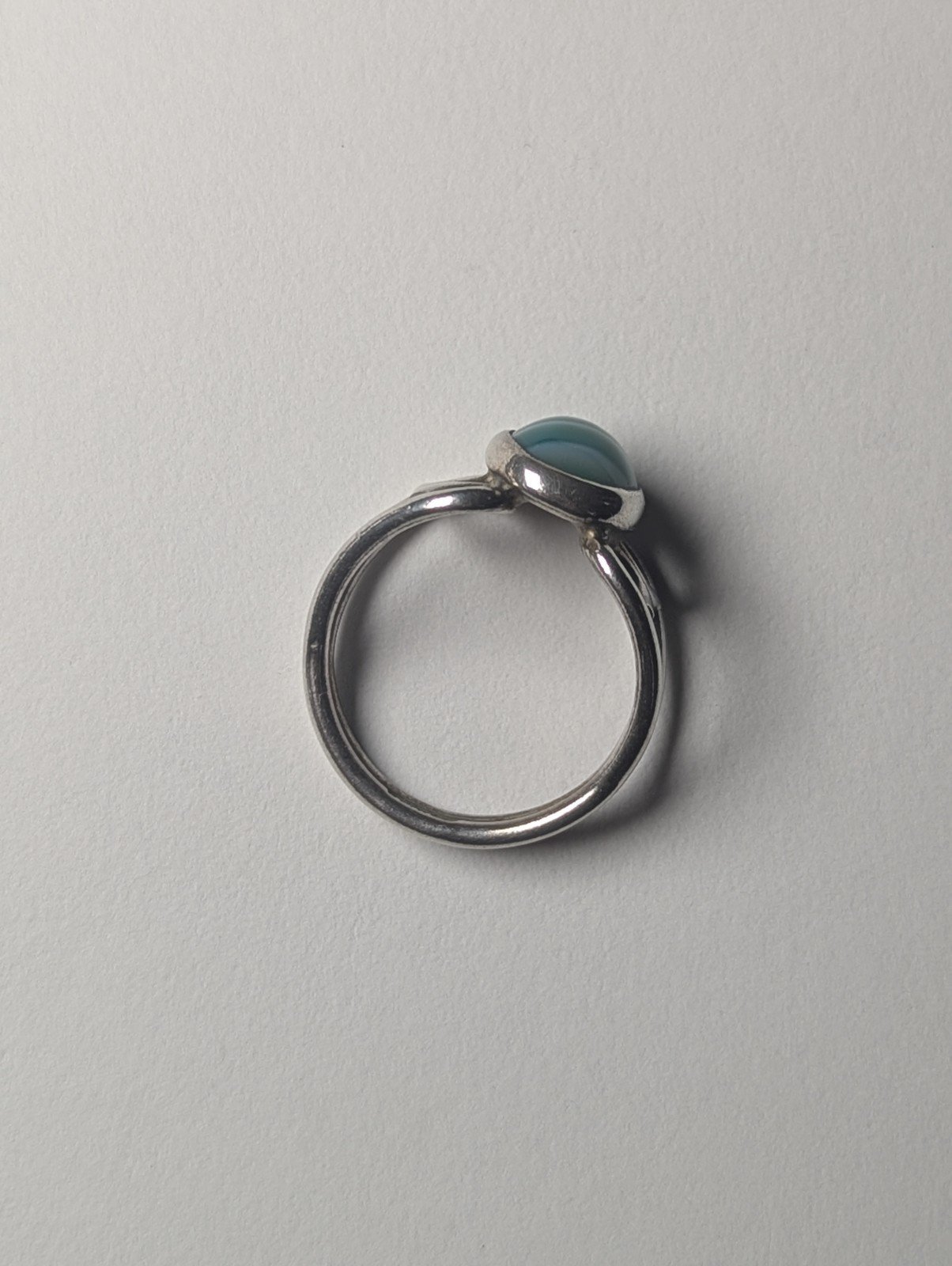 Vintage Sterling Silver Green Banded Agate Ring | Size K | 925 Silver