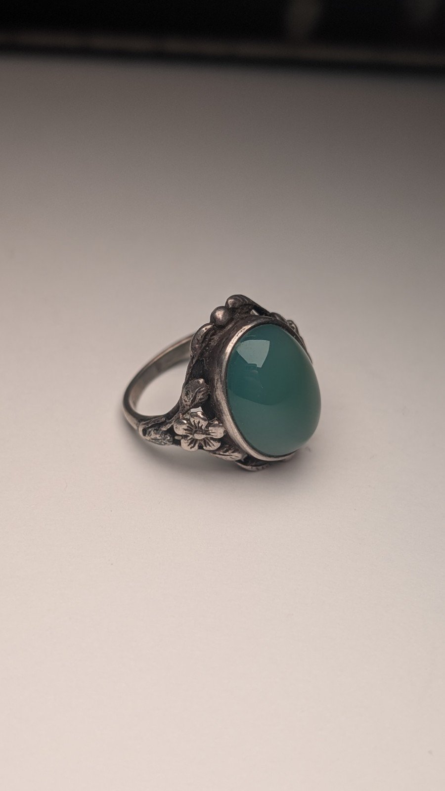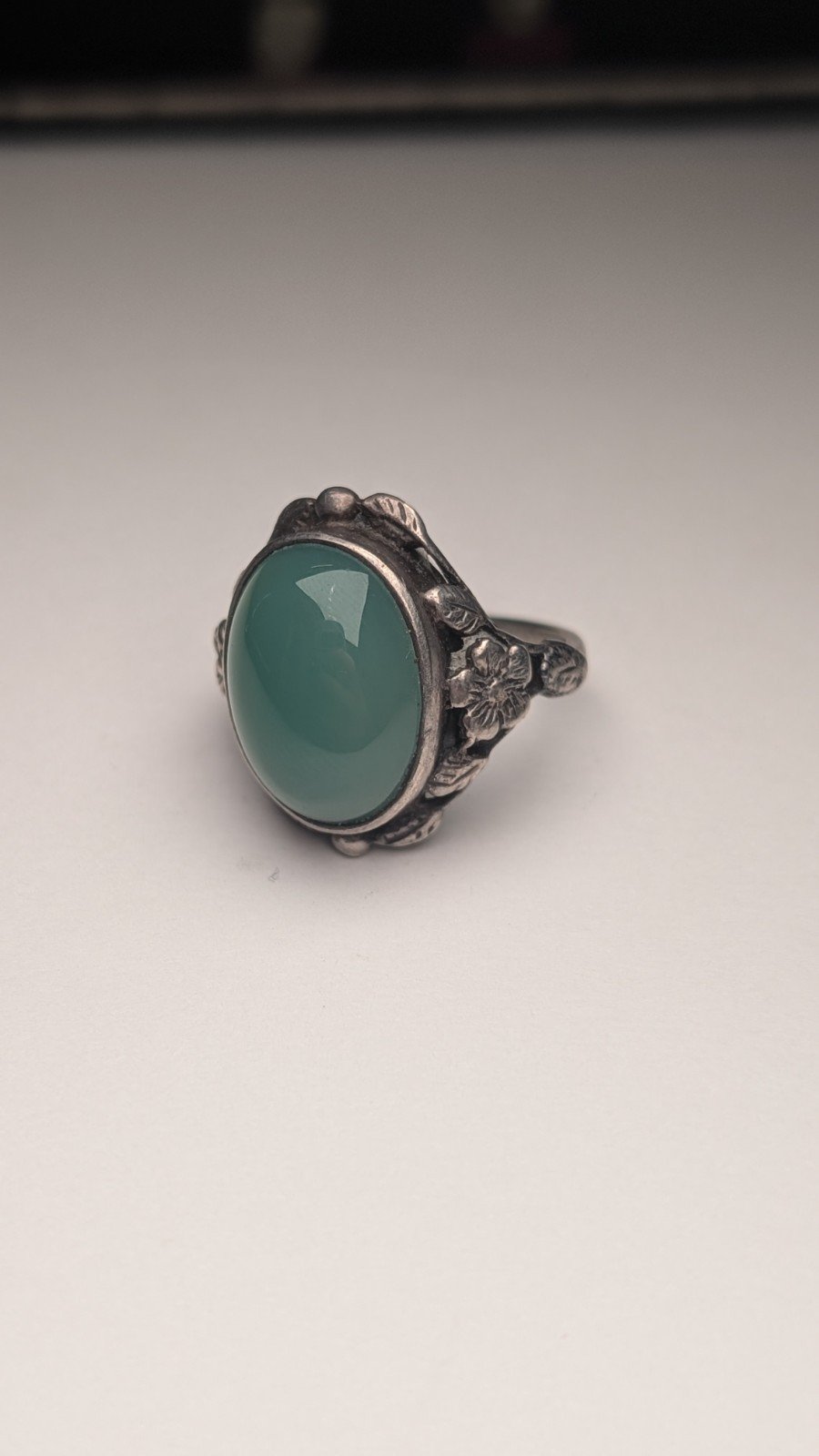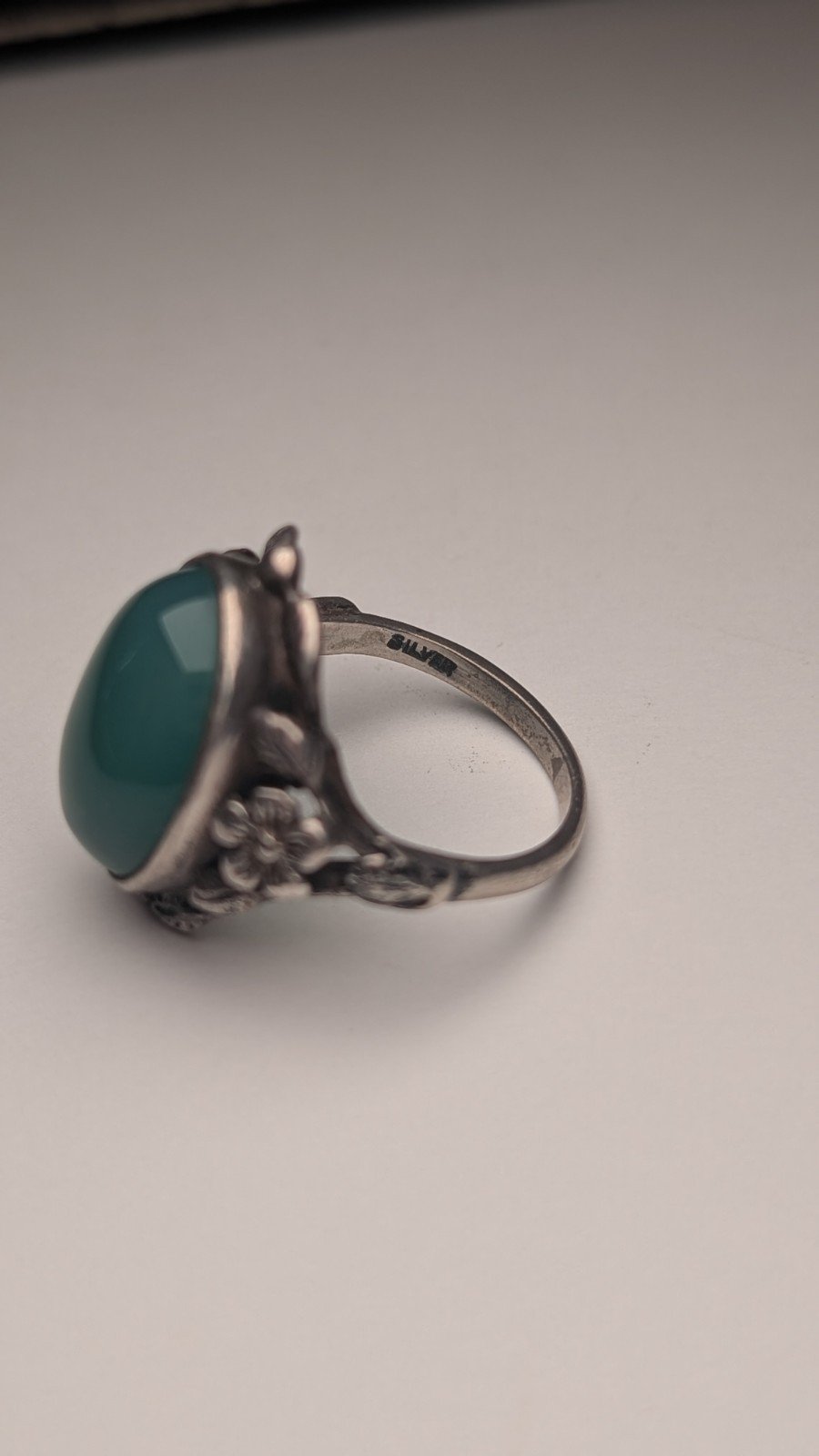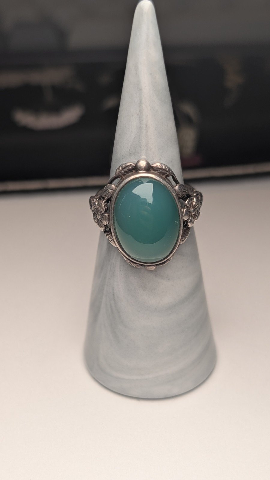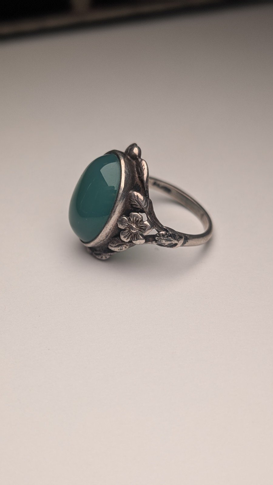 Vintage Sterling Silver Green Chalcedony Floral Flowers Ring | Size N | 925