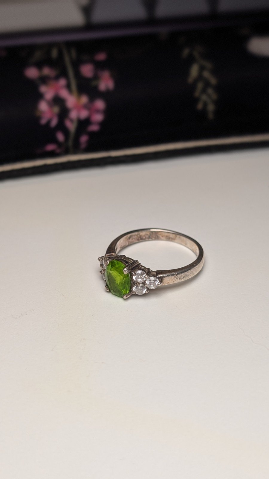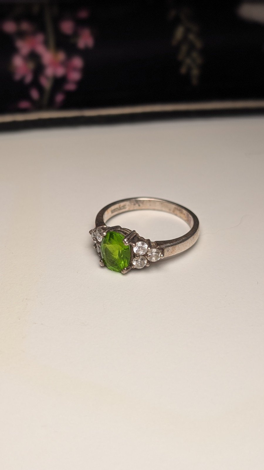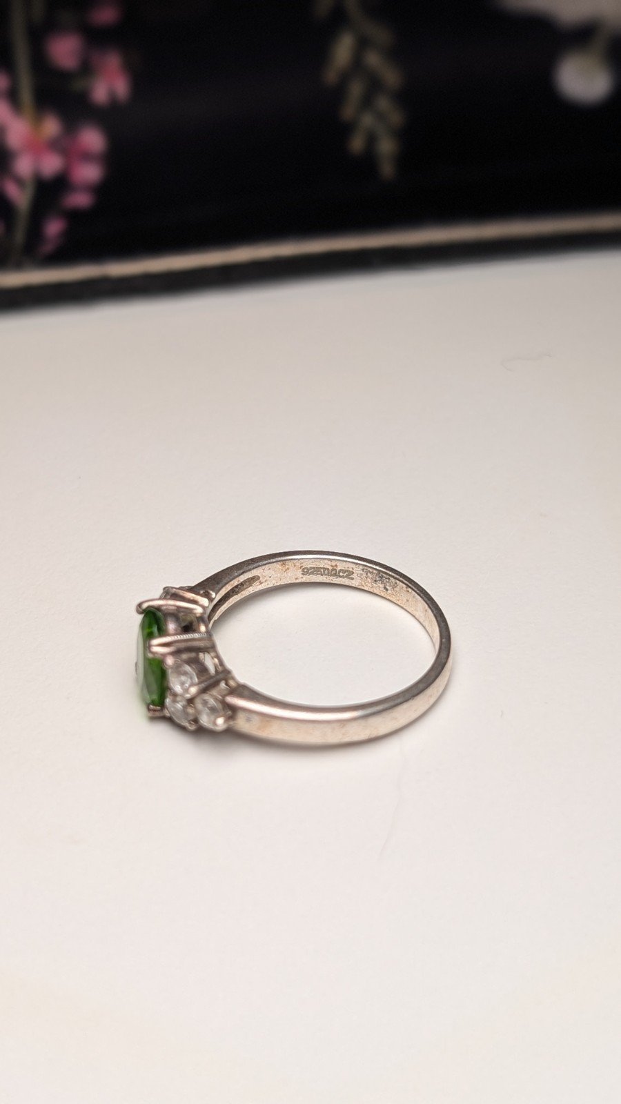 Vintage Sterling Silver Green DQCZ Ring | Size T 1/2 | 925 Silver