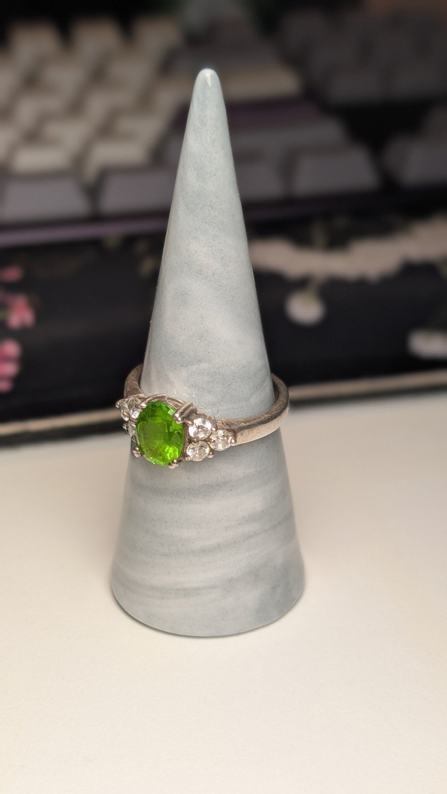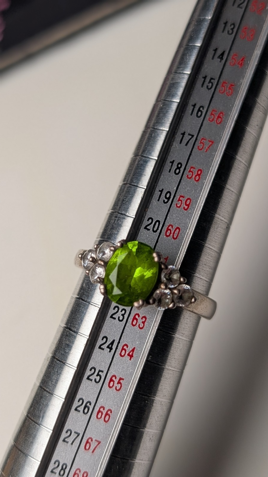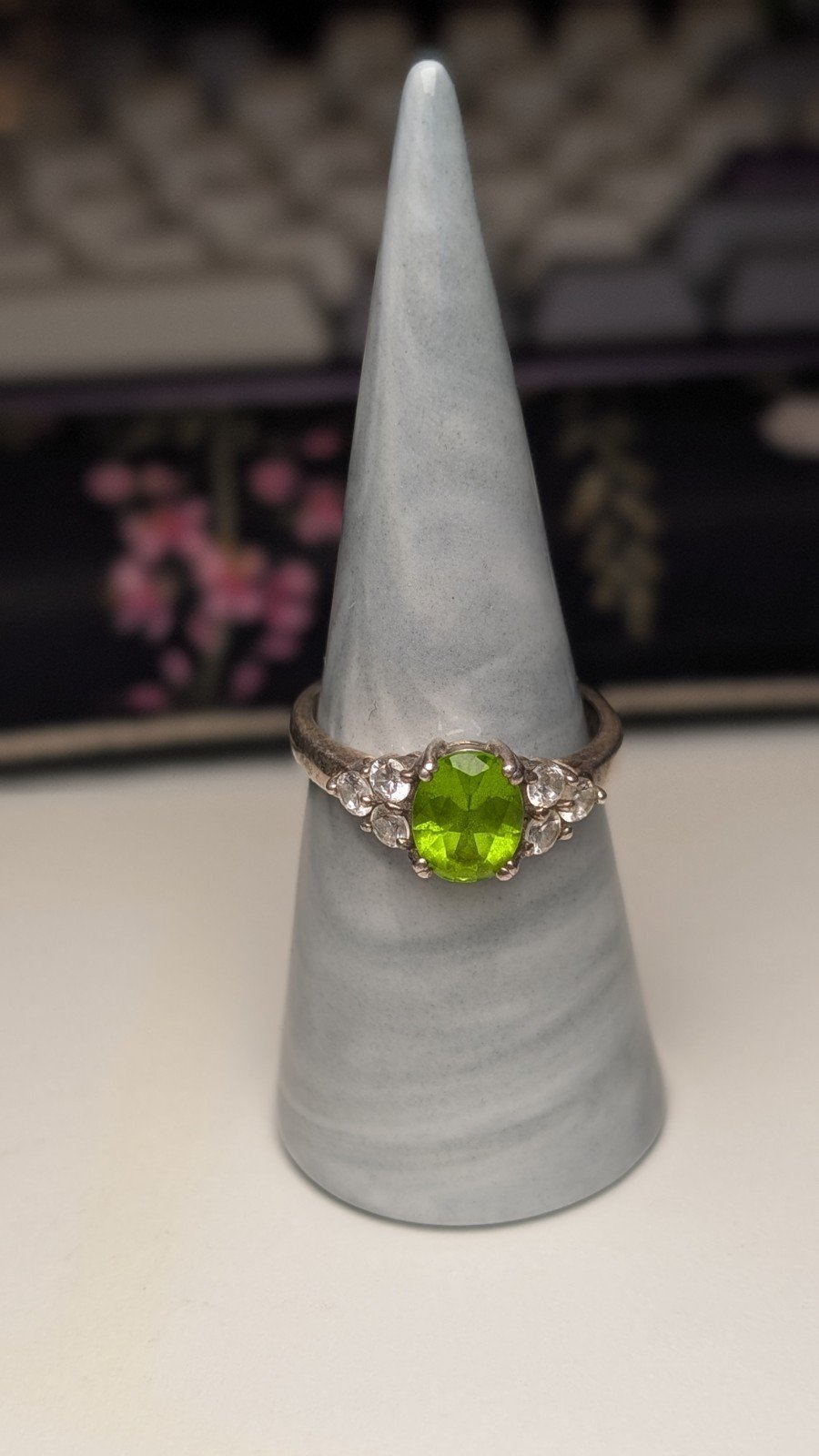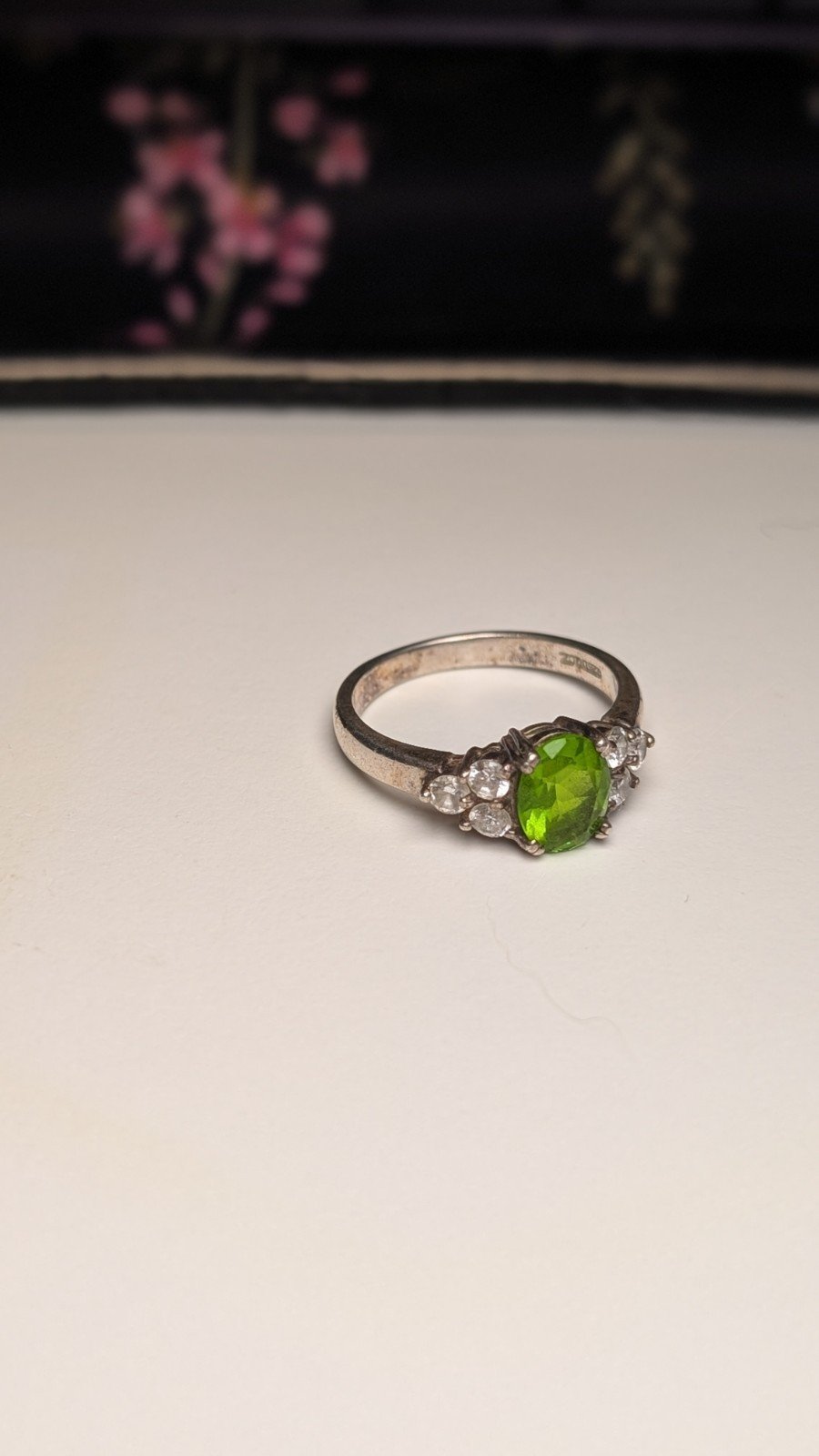 Vintage Sterling Silver Green DQCZ Ring | Size T 1/2 | 925 Silver