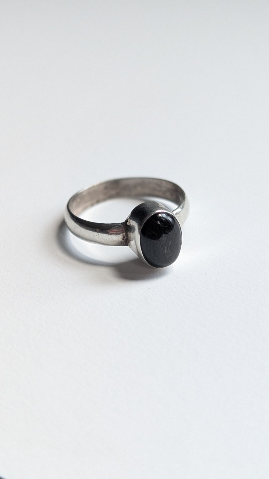 This Vintage Sterling Silver Grey Cats Eye Ring in size P is a charming piece of fine jewellery.