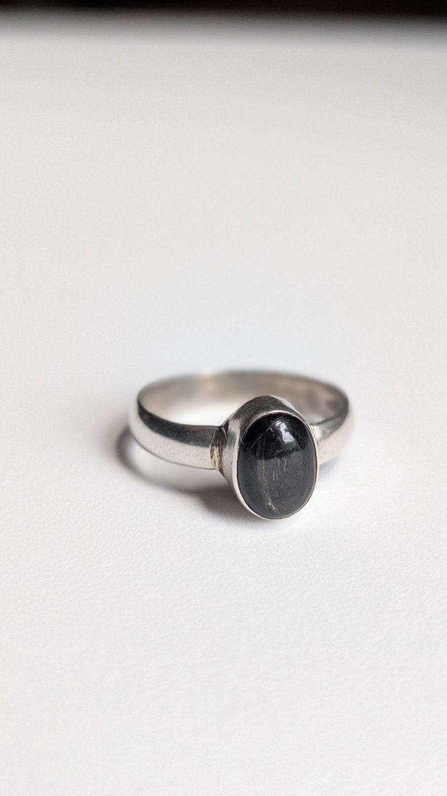 Vintage Sterling Silver Grey Cats Eye Ring | Size P | 925 Silver