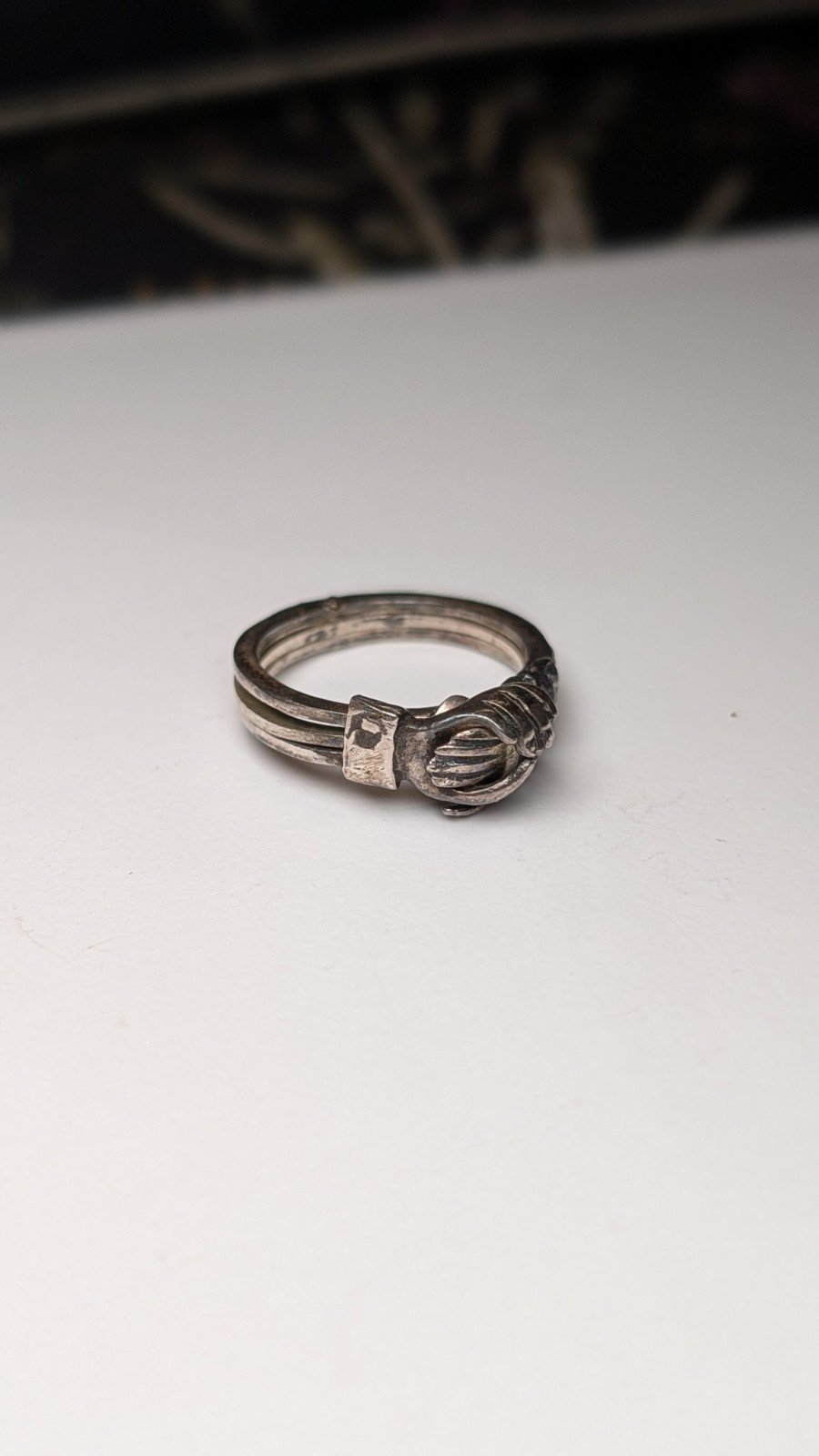 Vintage Sterling Silver Holding Hands Puzzle Ring | O 1/2 | 925 Silver