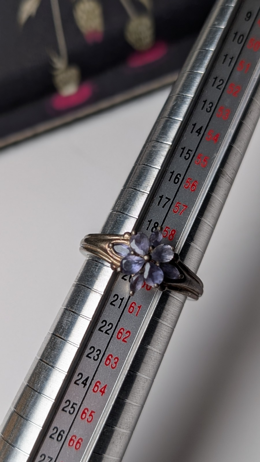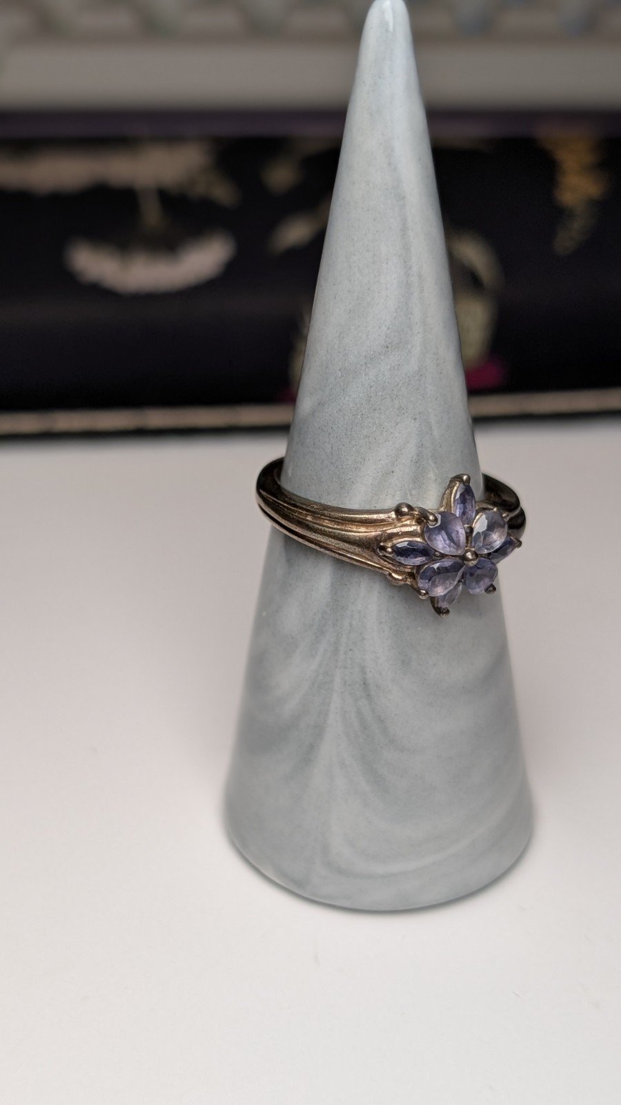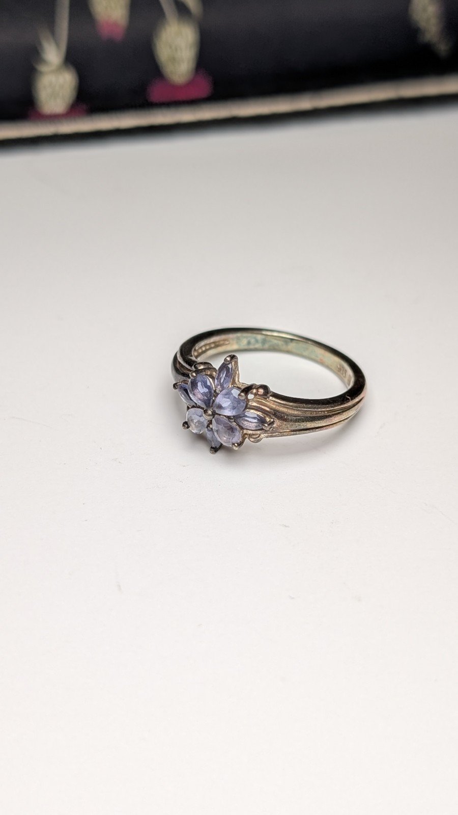 Vintage Sterling Silver Iolite Gemstone Flower Ring | Size R 1/2 | 925 Silver